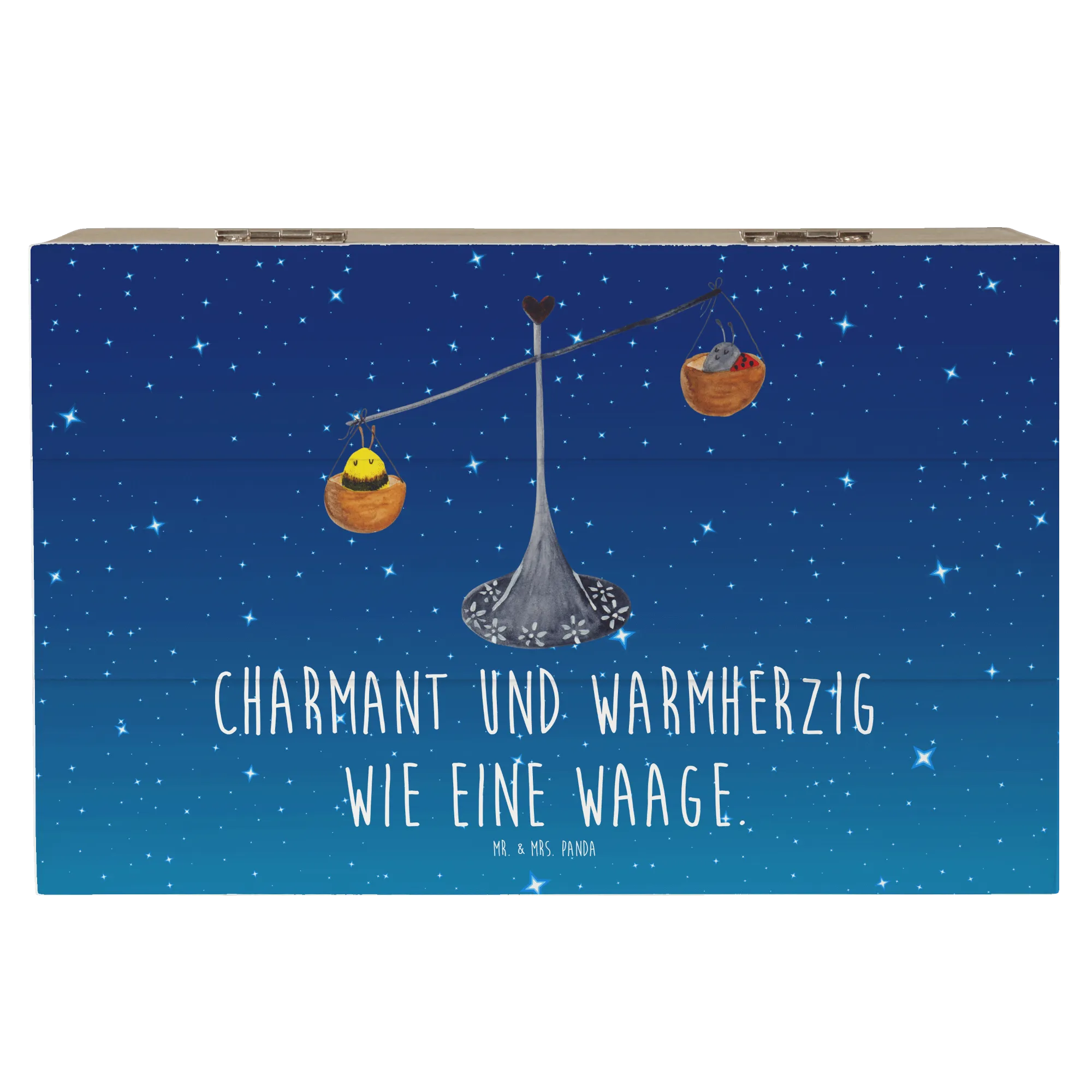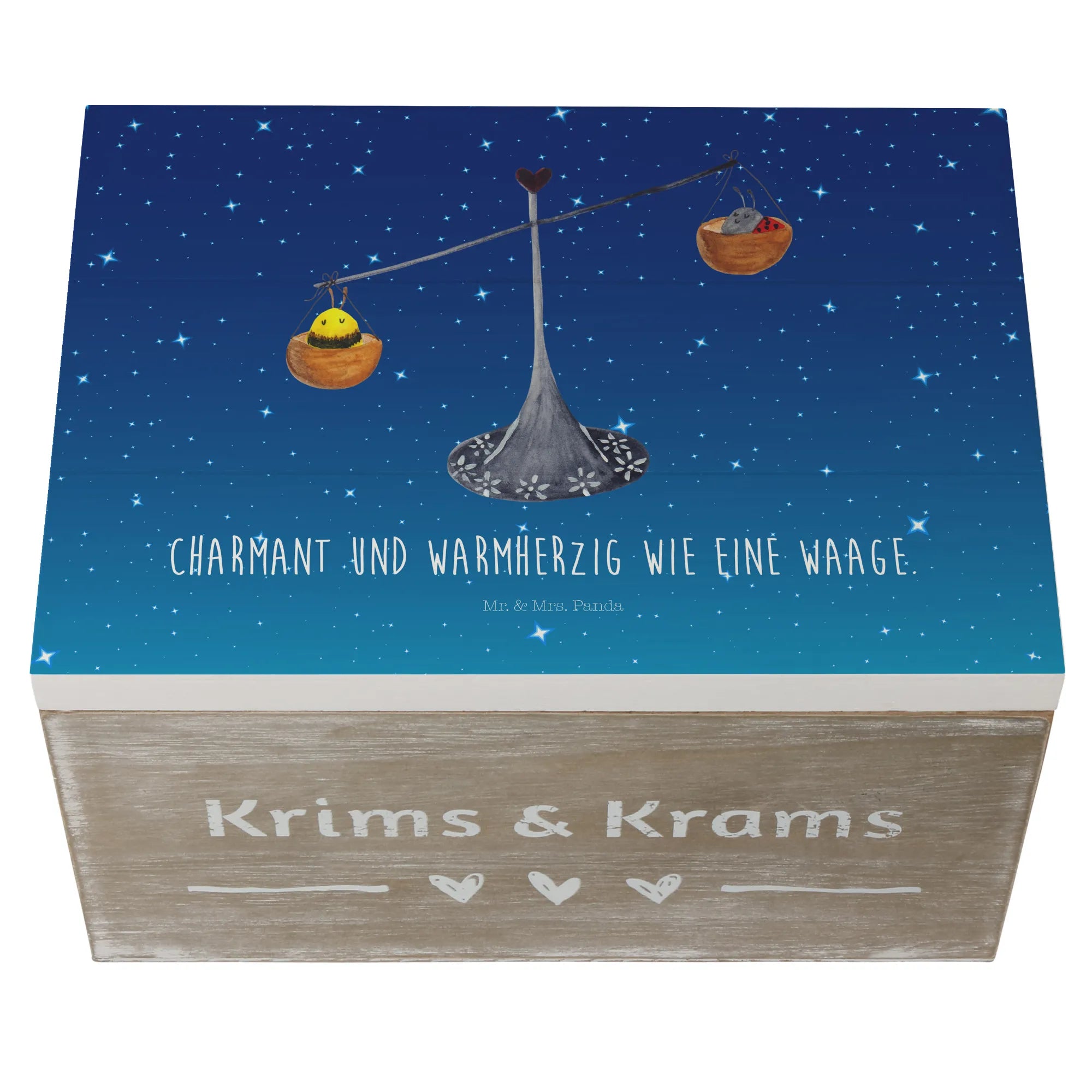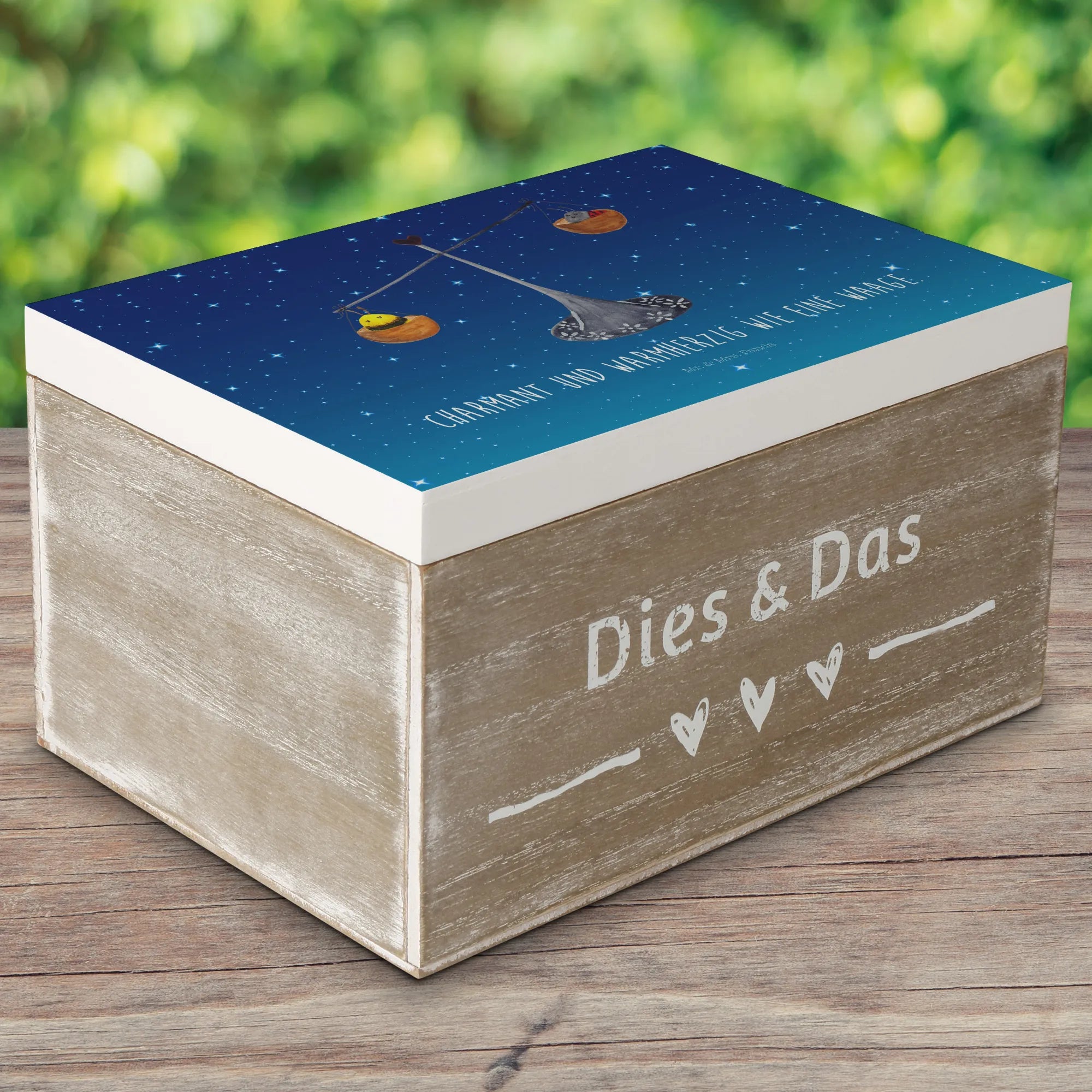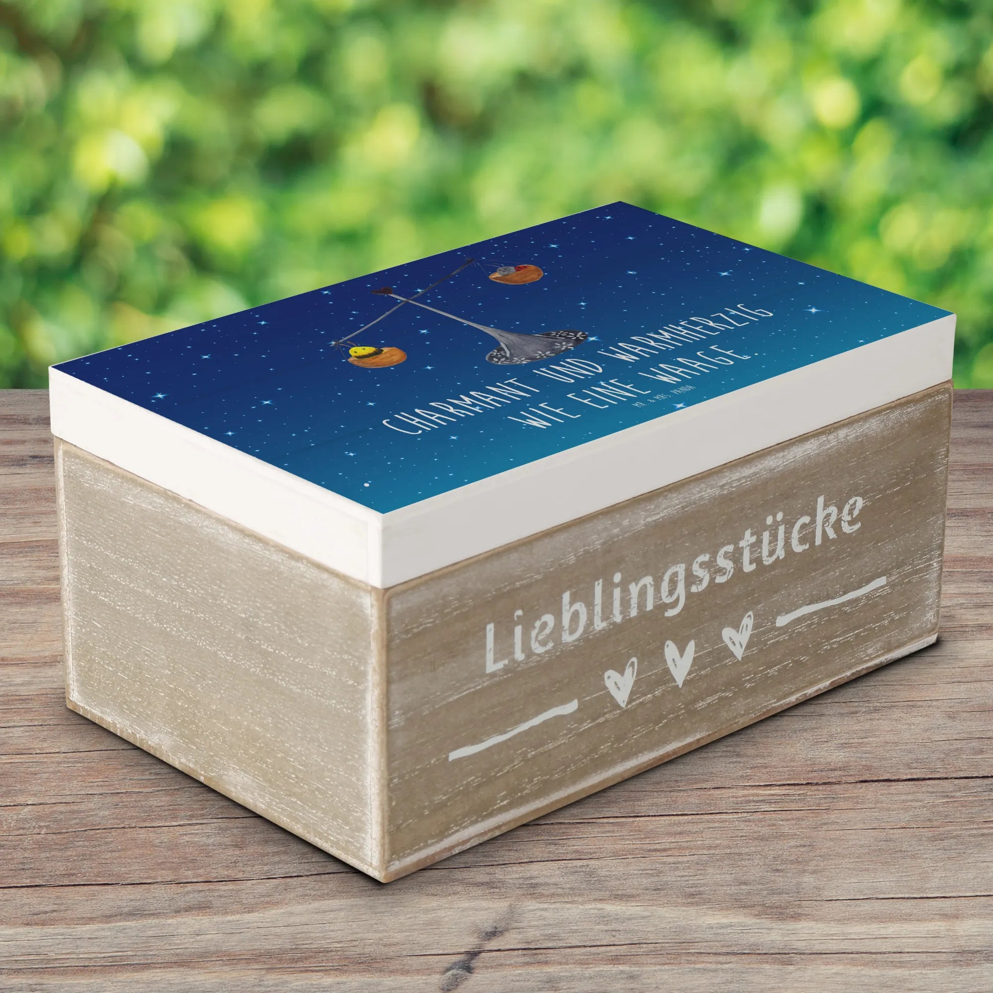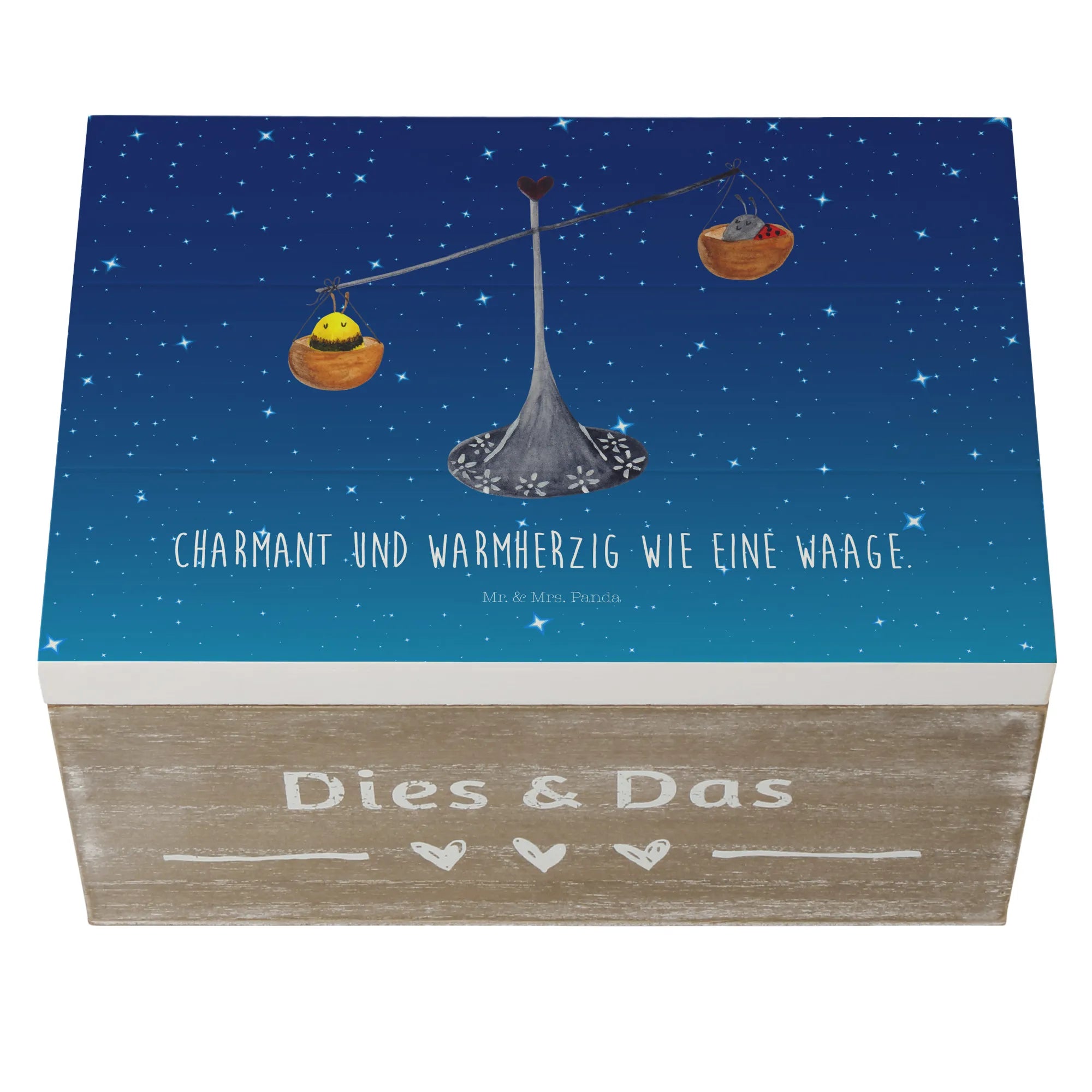 Skrzynia drewniana Znak zodiaku waga - 22 x 15 cm - z napisem - biały