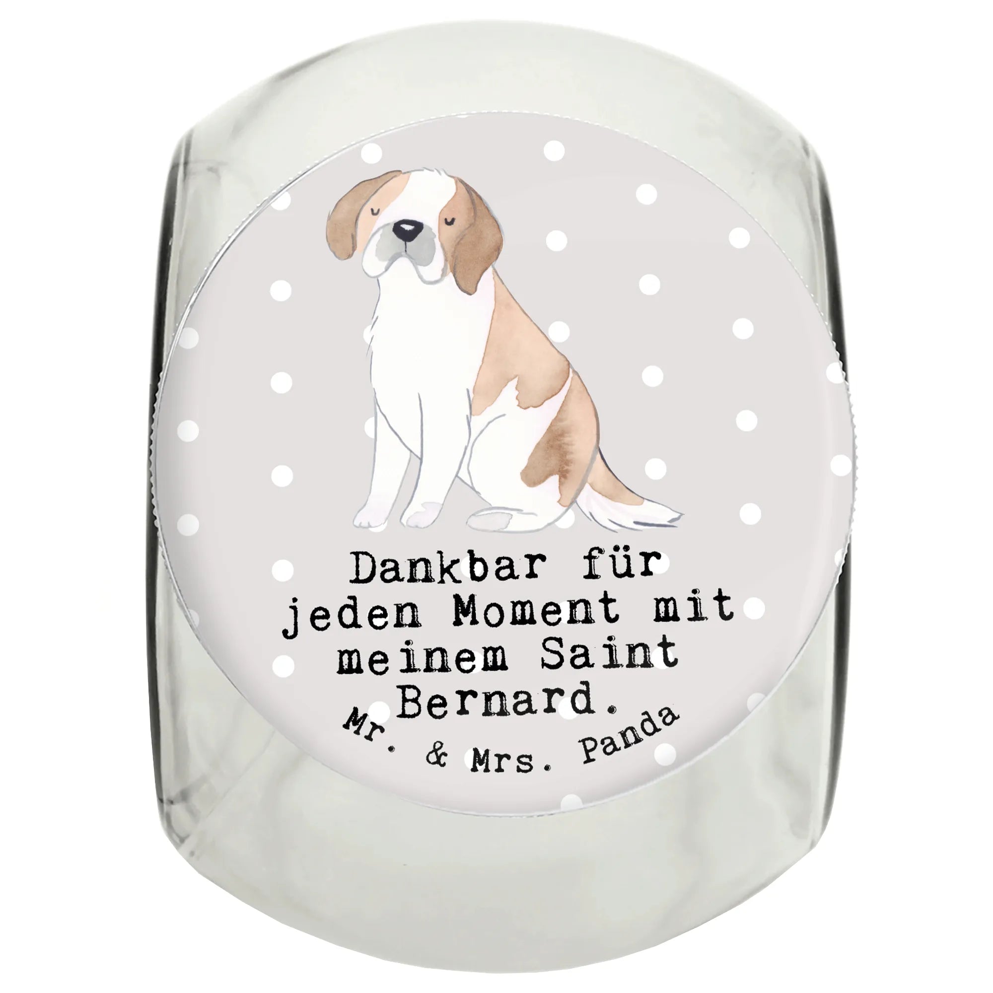 Das wunderschöne Leckerli Glas "Saint Bernard Moment" von Mr. & Mrs. Panda ist das ideale Geschenk für alle Hundeliebhaber und Freunde der Hunderasse St. Bernard! Der liebevoll gestaltete Druck zeigt einen flauschigen San Bernardo-Hund und ist mit dem herzlichen Slogan "Dankbar für jeden Moment mit meinem Saint Bernard" versehen.