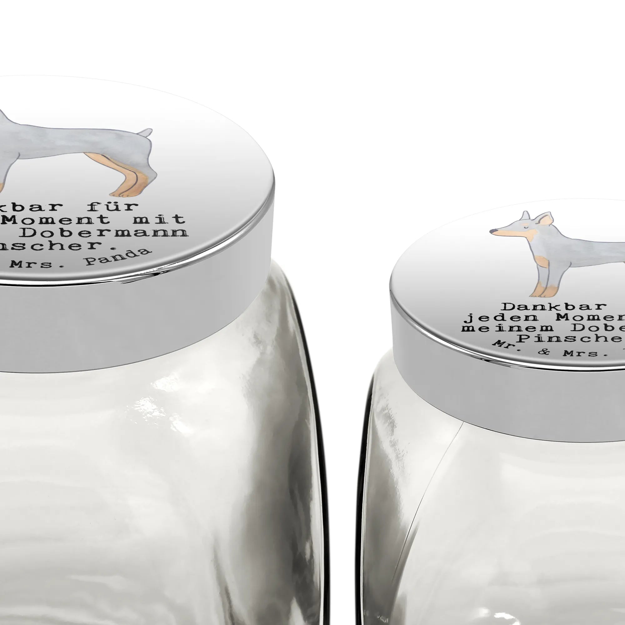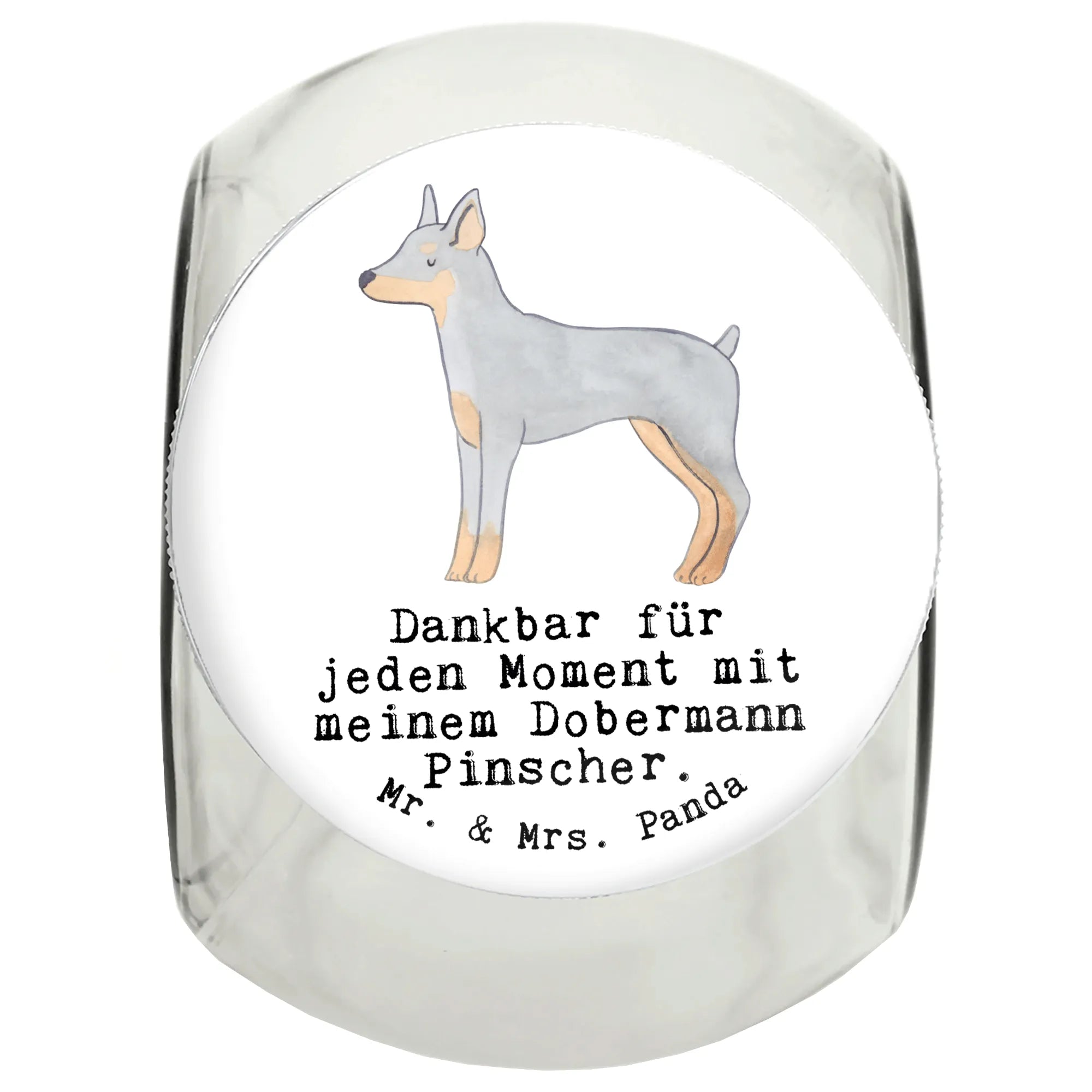 Das Leckerli Glas "Dobermann Pinscher Moment" von Mr. & Mrs. Panda ist das perfekte Geschenk für alle Hundebesitzer und Tierfreunde, die ihre Liebe zu ihrem Vierbeiner mit etwas ganz Besonderem zeigen möchten. Dieses wunderschöne Glas ist nicht nur praktisch, um die Lieblingsleckerlis für deinen Dobermann oder deine Katze aufzubewahren, sondern bringt auch einen Hauch von Persönlichkeit in dein Zuhause. Mit dem liebevoll designten Motiv eines Dobermann Pinschers in sanften Farben und dem herzlichen Slogan "Dankbar für jeden Moment mit meinem Dobermann Pinscher" wird jedes Füttern zu einem besonderen Moment.