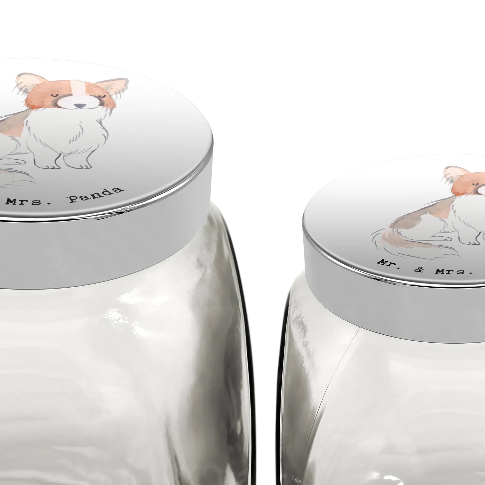 Das Leckerli Glas mit dem süßen Papillon Motiv von Mr. & Mrs. Panda ist das perfekte Geschenk für Hundebesitzer und Tierfreunde! Mit einer großzügigen Füllmenge von 2000 ml bietet es genügend Platz für die liebsten Snacks deines Vierbeiners.