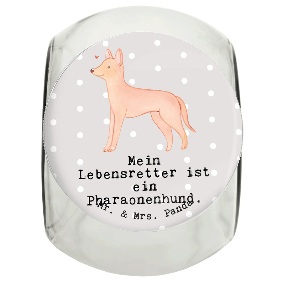 Das Leckerli Glas mit dem süßen Motiv "Mein Lebensretter ist ein Pharaonenhund" von Mr. & Mrs. Panda ist das perfekte Geschenk für jeden Tierfreund und Hundebesitzer! Ob für Dich selbst oder als liebevolles Präsent für einen guten Freund - dieses wunderschöne Glas bringt sowohl Freude als auch Funktionalität in jeden Haushalt.
