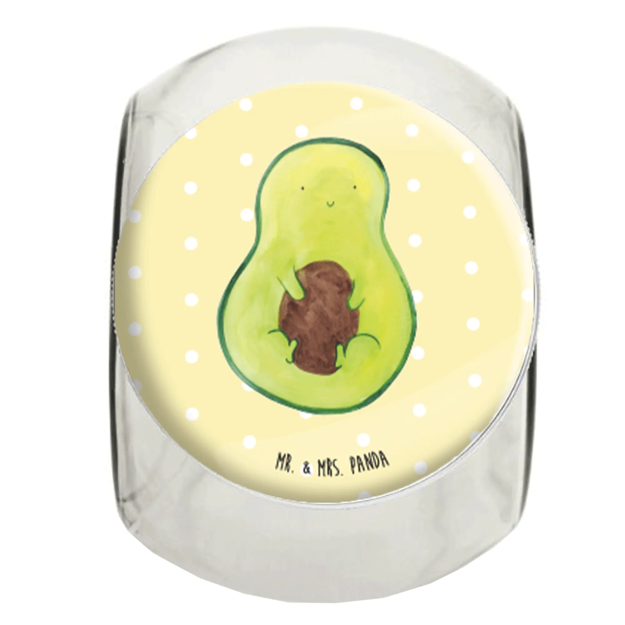 Entdecke das wunderschöne Bonbonglas mit dem fröhlichen Motiv "Avocado mit Kern" von Mr. & Mrs. Panda! Dieses hochwertige Vorratsglas ist nicht nur funktional, sondern bringt auch einen Hauch von Lebensfreude in deine Küche.