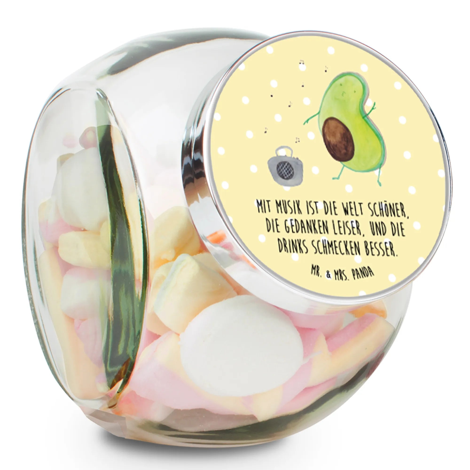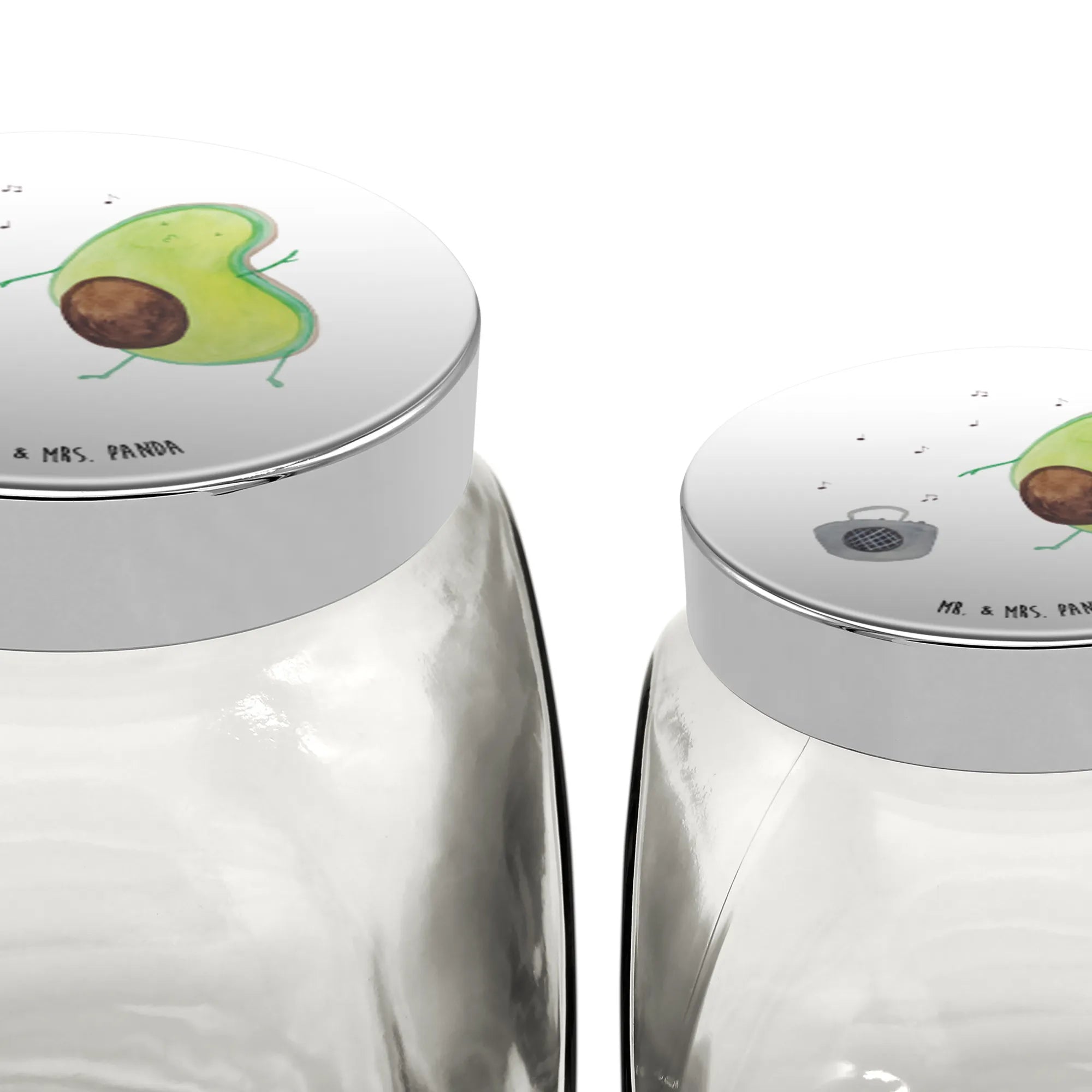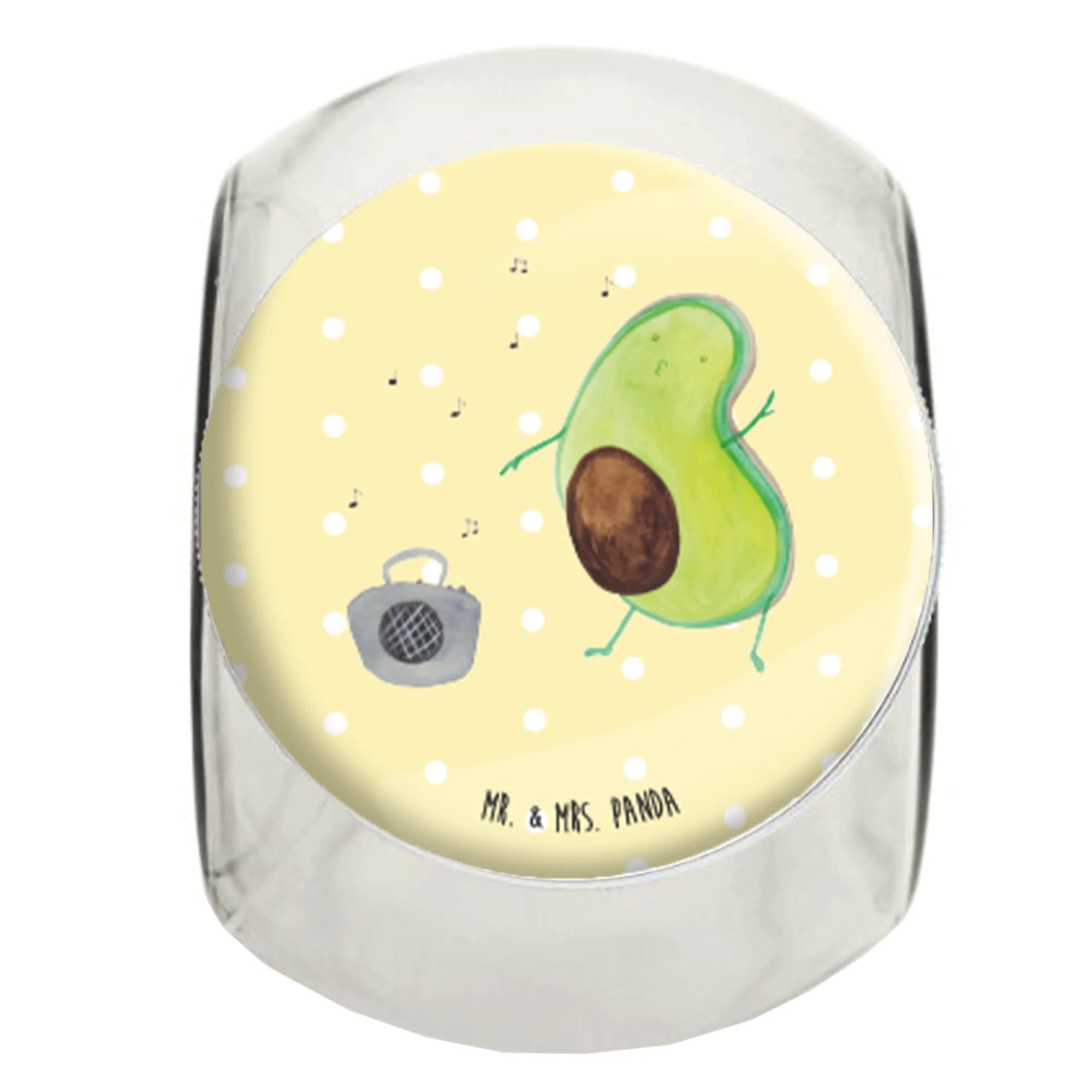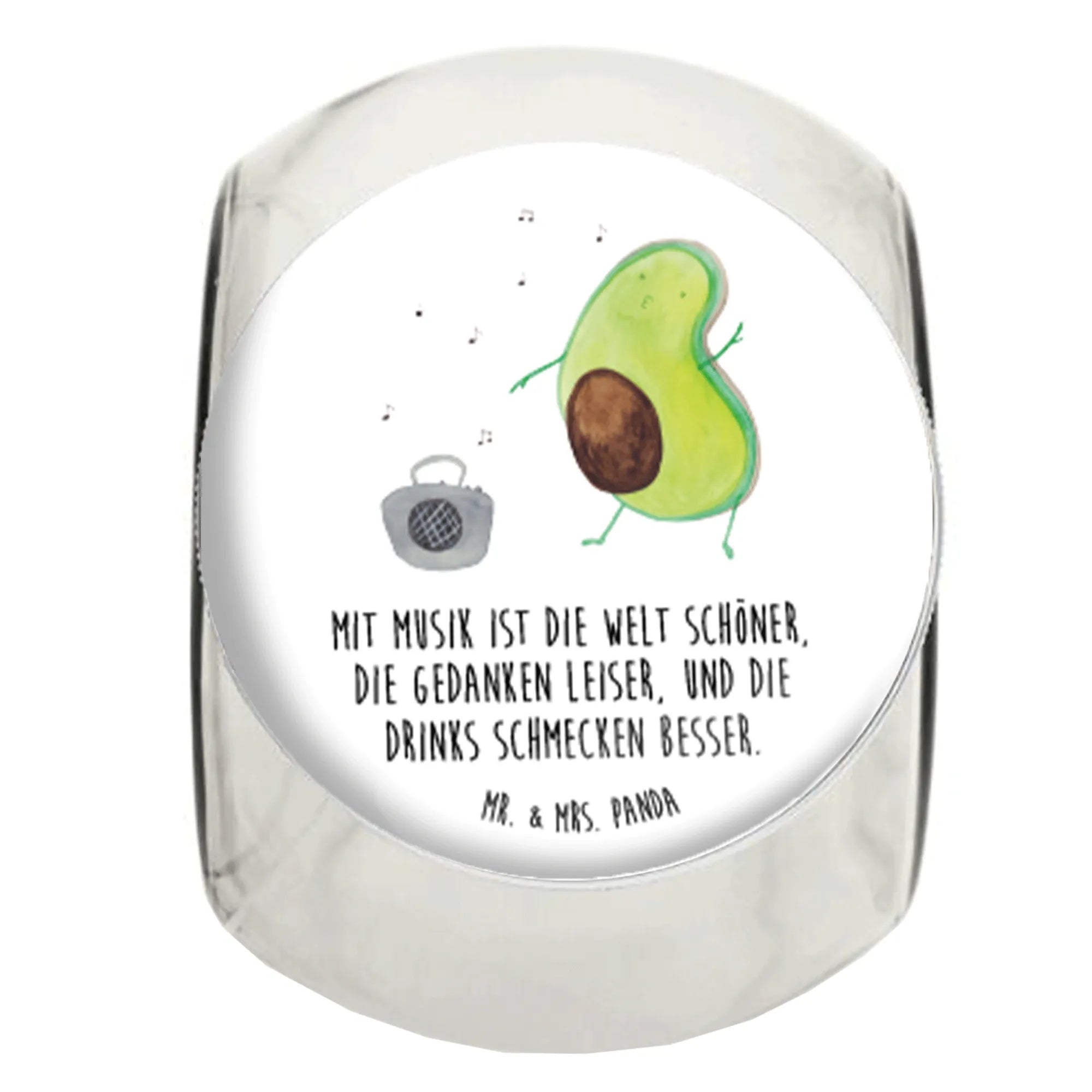 Das Bonbonglas mit dem süßen Motiv "Avocado tanzt" aus der Avocado Kollektion von Mr. & Mrs. Panda ist das perfekte Accessoire für deine Küche oder das ideale Geschenk für Veganer und Avocado-Liebhaber. Die niedliche Avocado, die fröhlich vor einem Ghettoblaster tanzt, bringt ein Lächeln auf jedes Gesicht und verleiht deiner Aufbewahrung einen besonderen Charme.