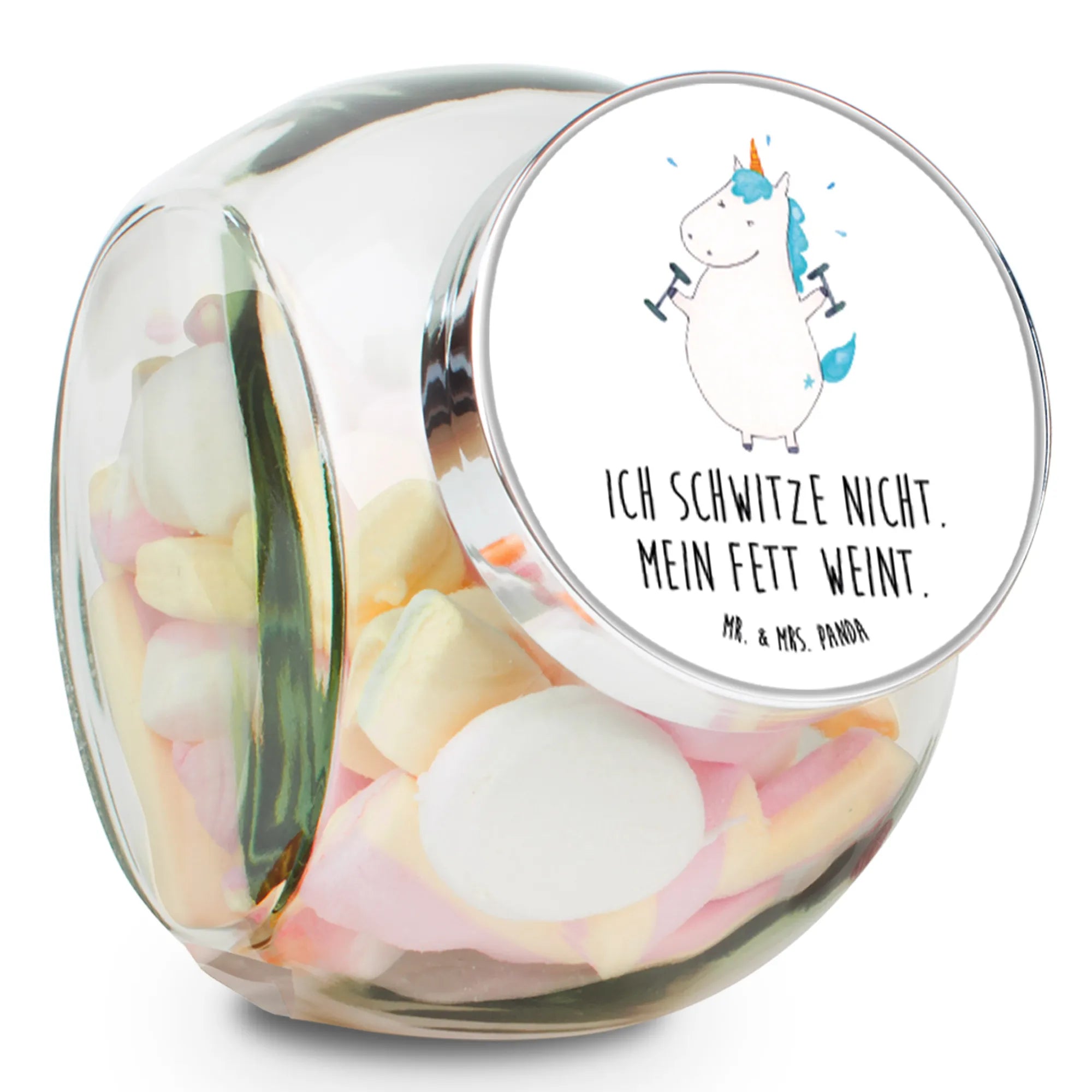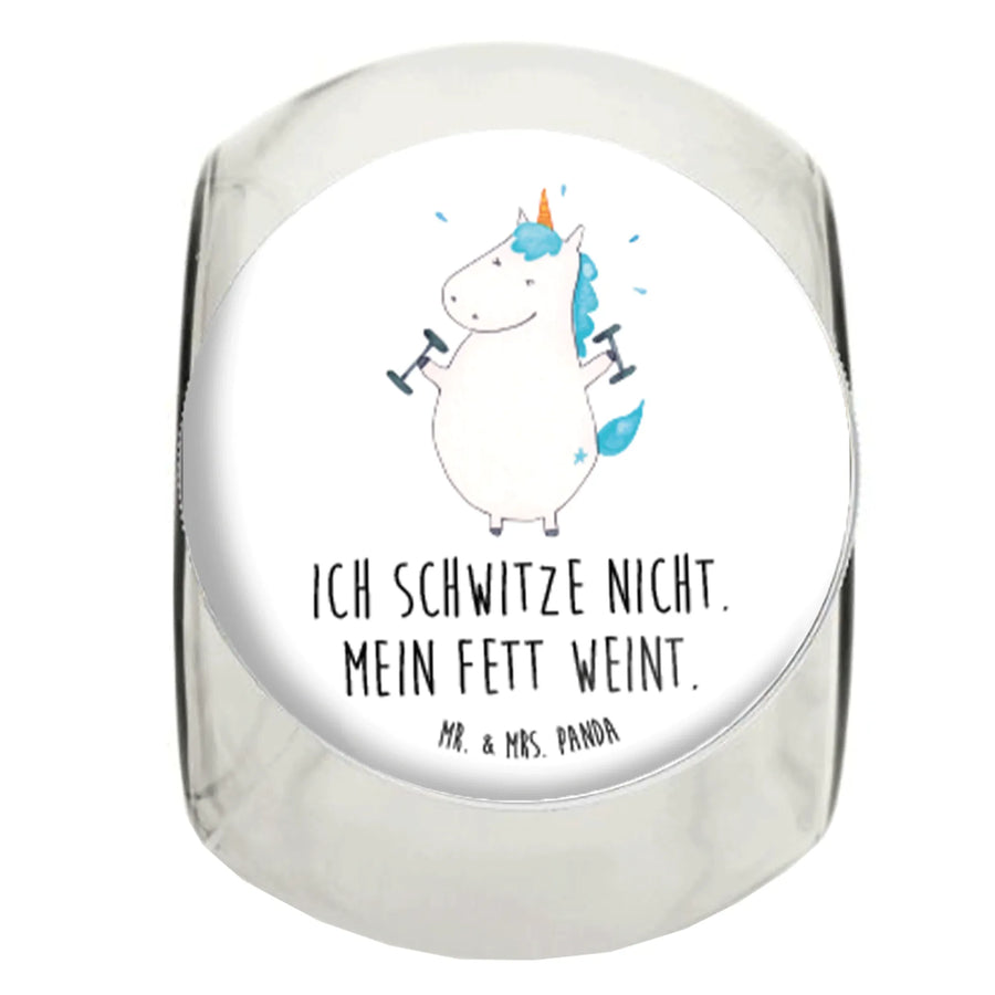 Das wunderschöne Bonbonglas von Mr. & Mrs. Panda mit dem einzigartigen Motiv Einhorn Fitness ist das perfekte Geschenk für alle Fitnessliebhaber und Einhorn-Fans!