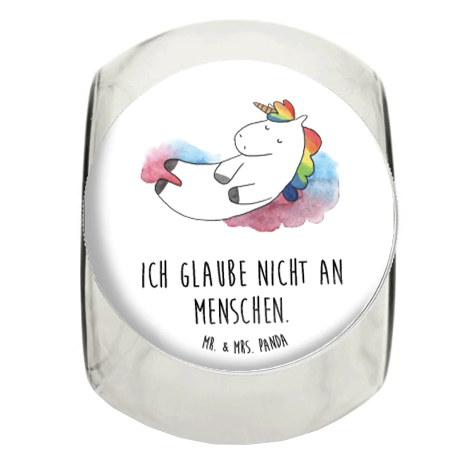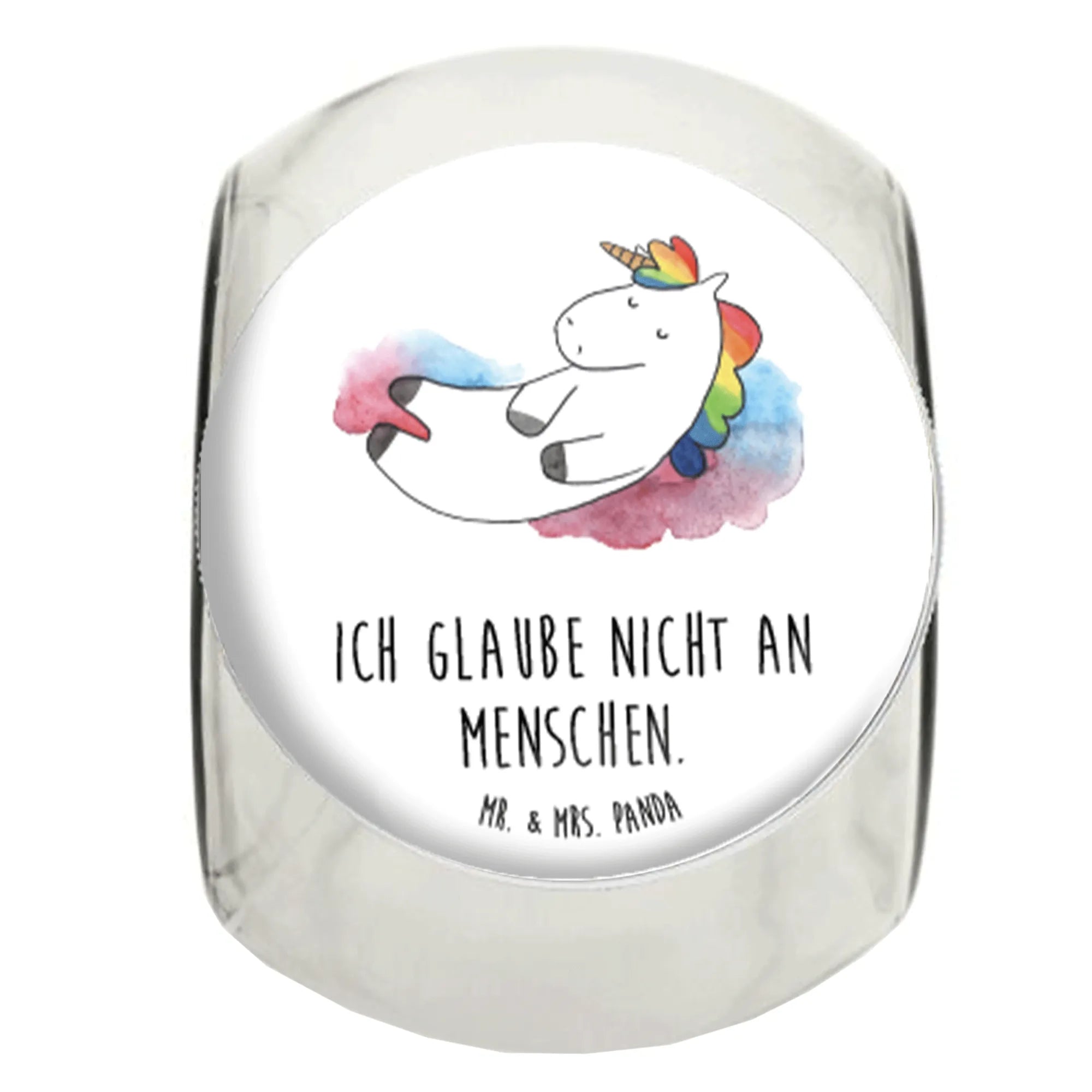 Das wunderschöne Bonbonglas Einhorn Wolke 7 von Mr. & Mrs. Panda ist nicht nur ein praktischer Aufbewahrungsbehälter, sondern auch ein liebevolles Deko-Element für jede Küche oder jedes Wohnzimmer. Dieses Glas ist mit dem zauberhaften Motiv eines entspannten Einhorns ausgestattet, das auf einer Wolke sitzt und den Spruch "Ich glaube nicht an Menschen" trägt.