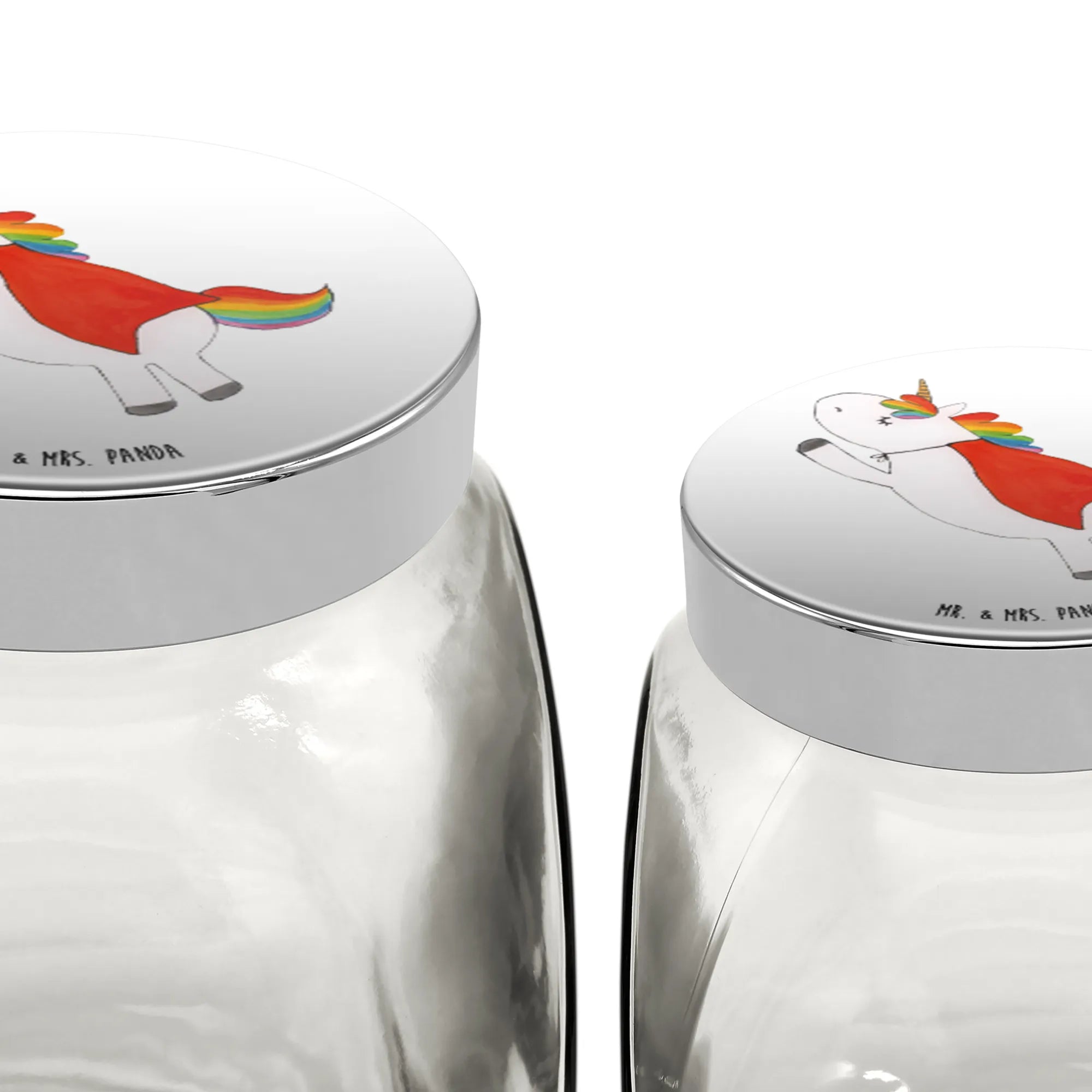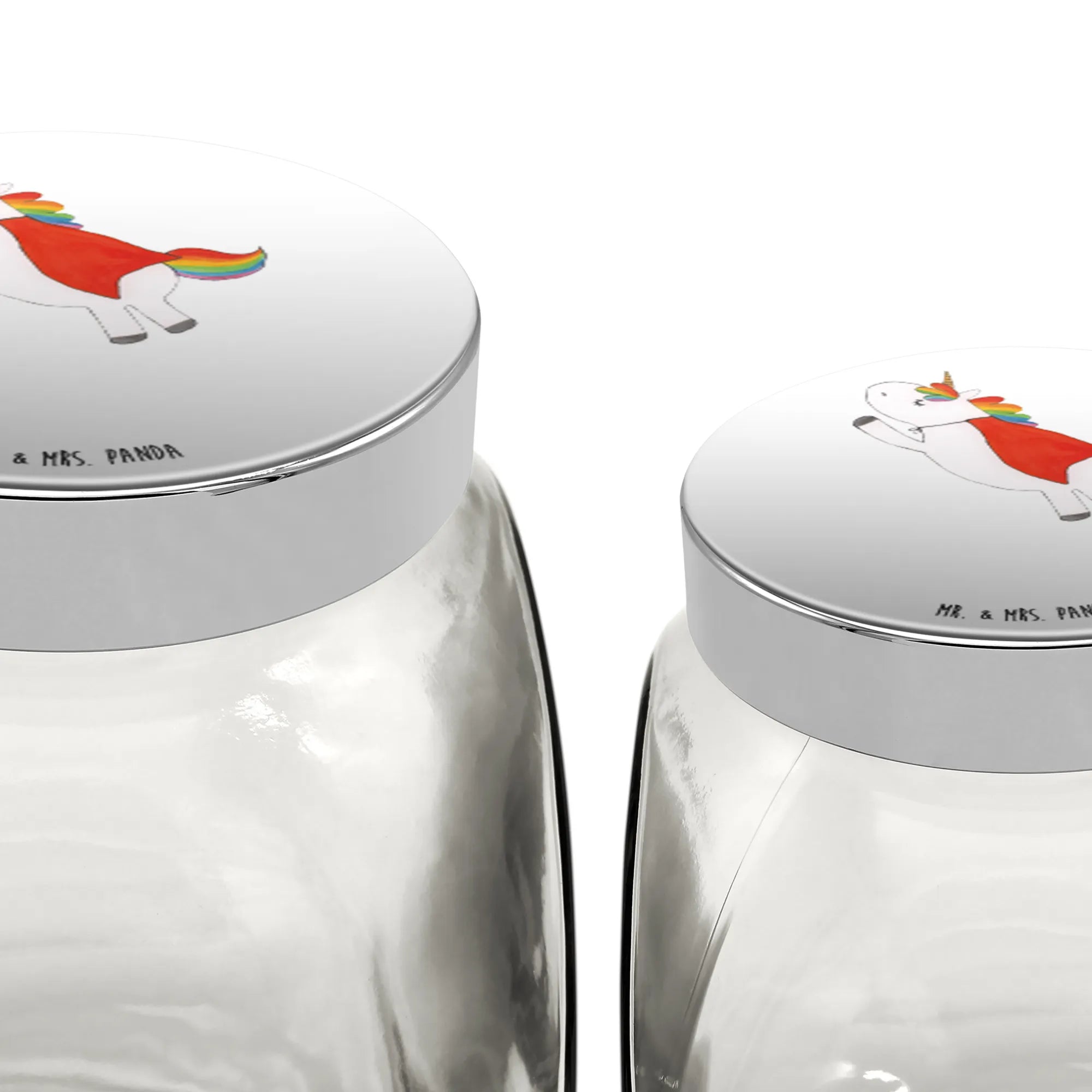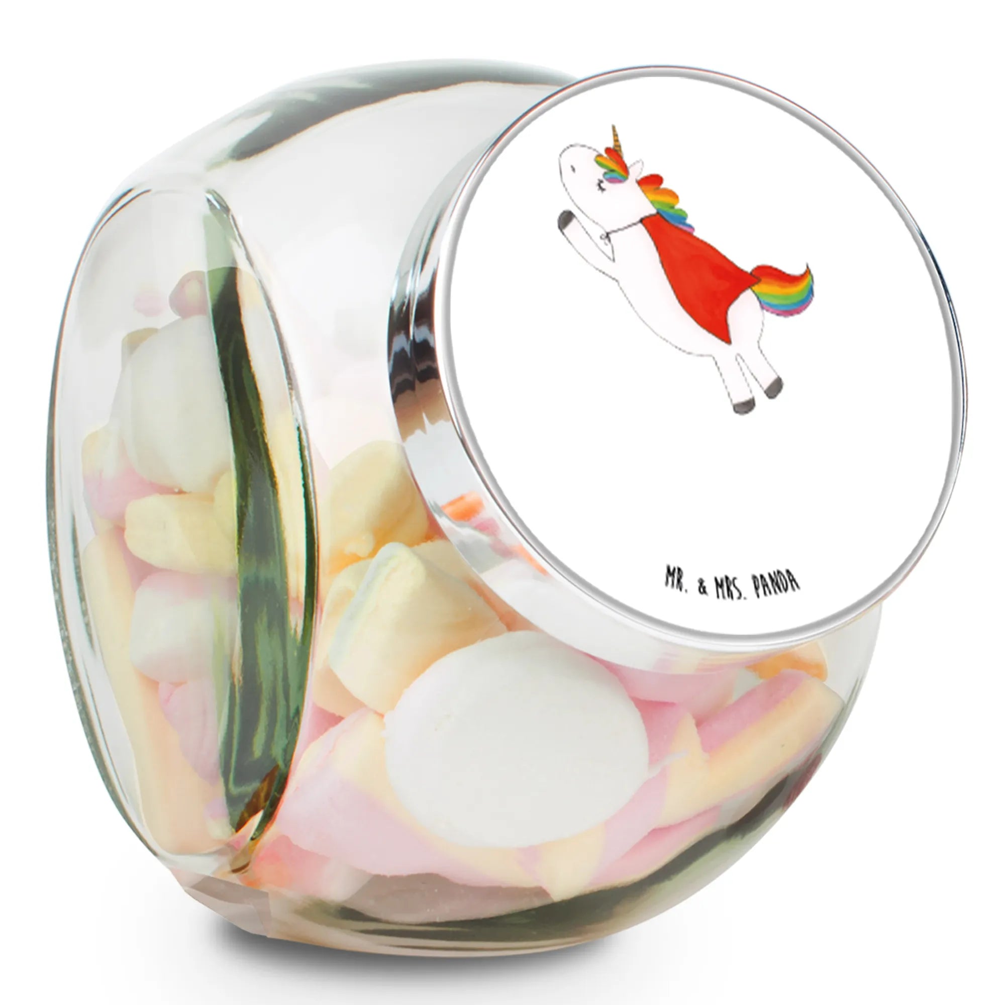 Fantastisch dekoriert mit dem charmanten Superhelden-Einhorn ist dieses Bonbonglas nicht nur ein echter Hingucker, sondern auch unglaublich praktisch. Der stabile Kunststoffdeckel sorgt dafür, dass Frische und Aroma deiner Snacks immer optimal erhalten bleiben.