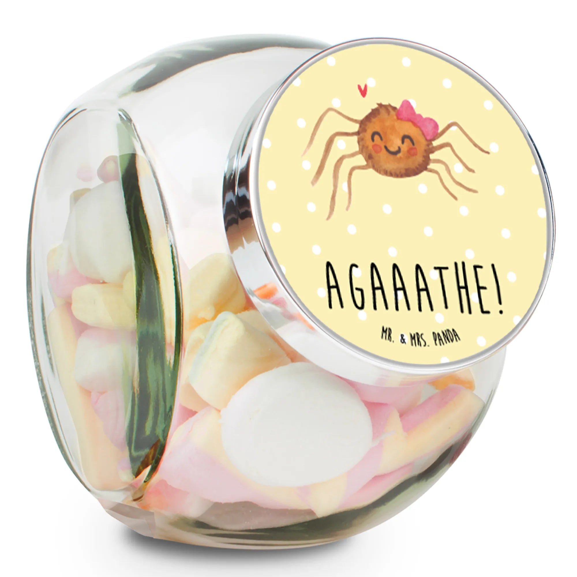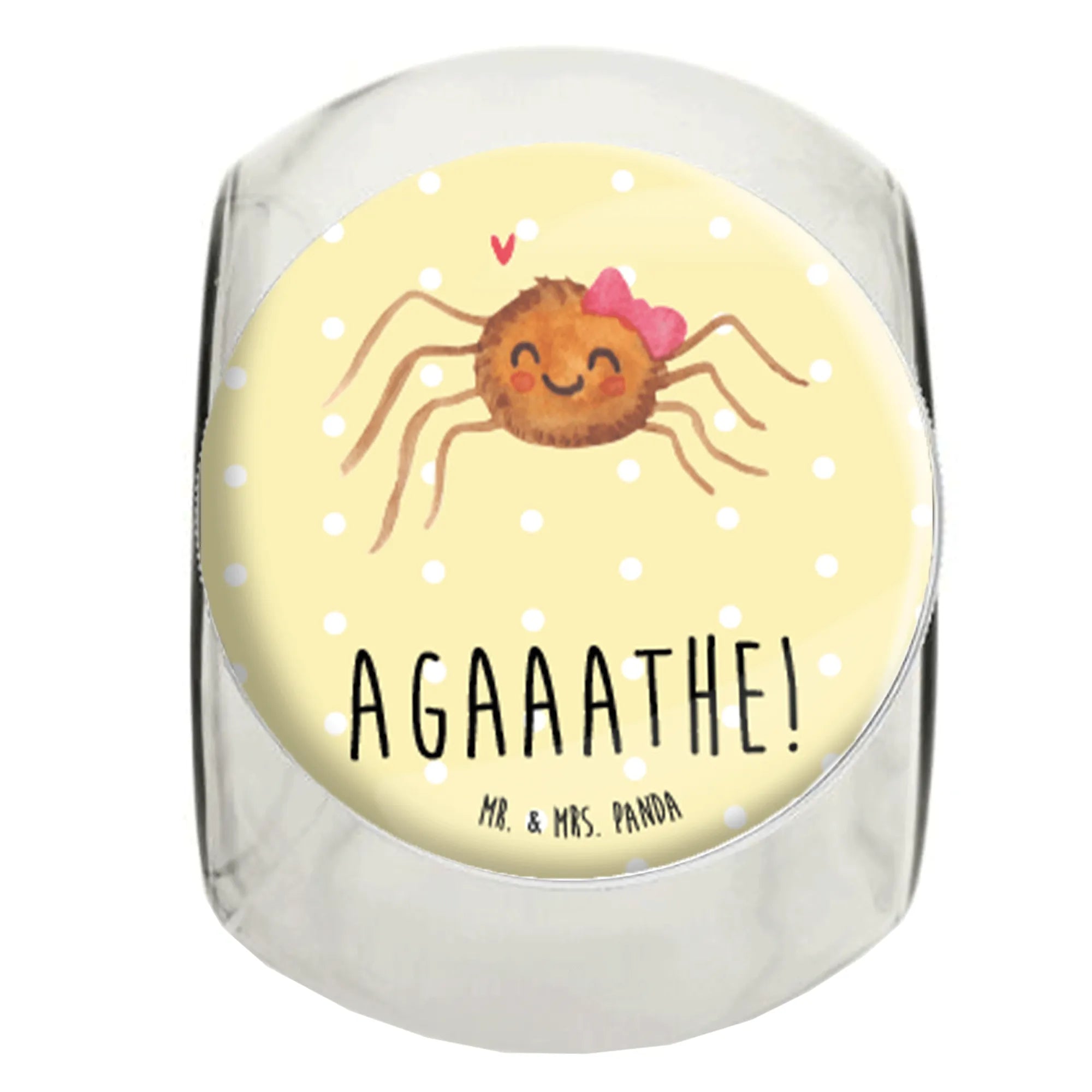 Das wunderschöne Bonbonglas mit dem einzigartigen Motiv der Spinne Agathe Freude von Mr. & Mrs. Panda ist nicht nur ein Blickfang, sondern auch das perfekte Geschenk für alle, die Süßigkeiten, Kekse, Kaffee oder Tee lieben.
