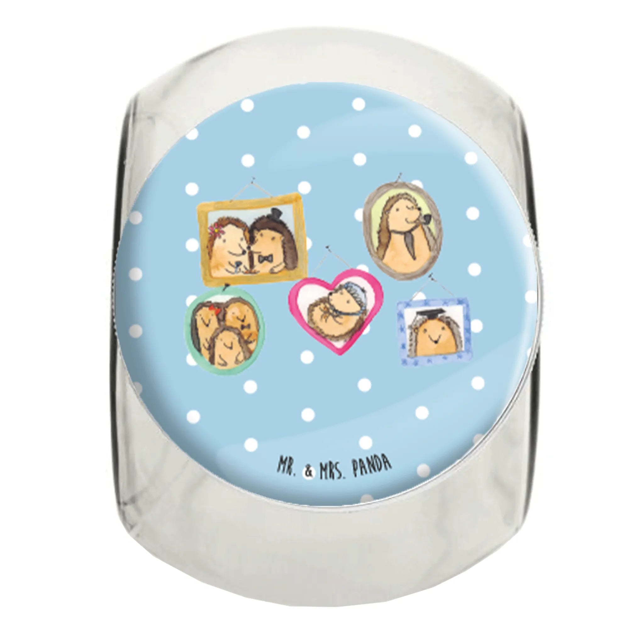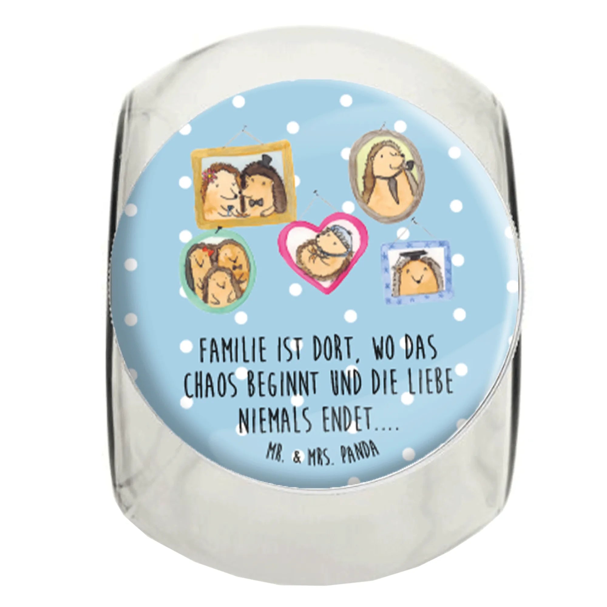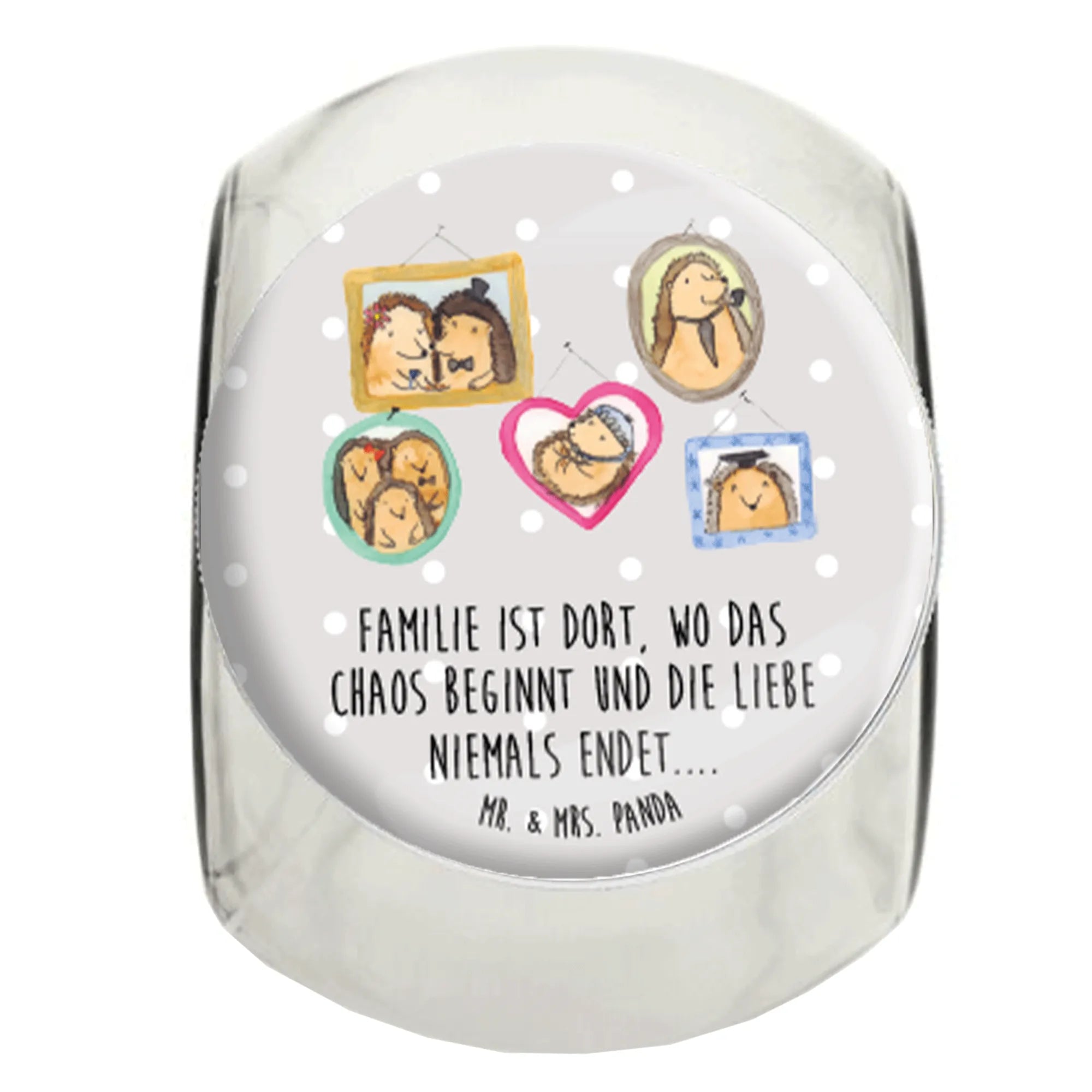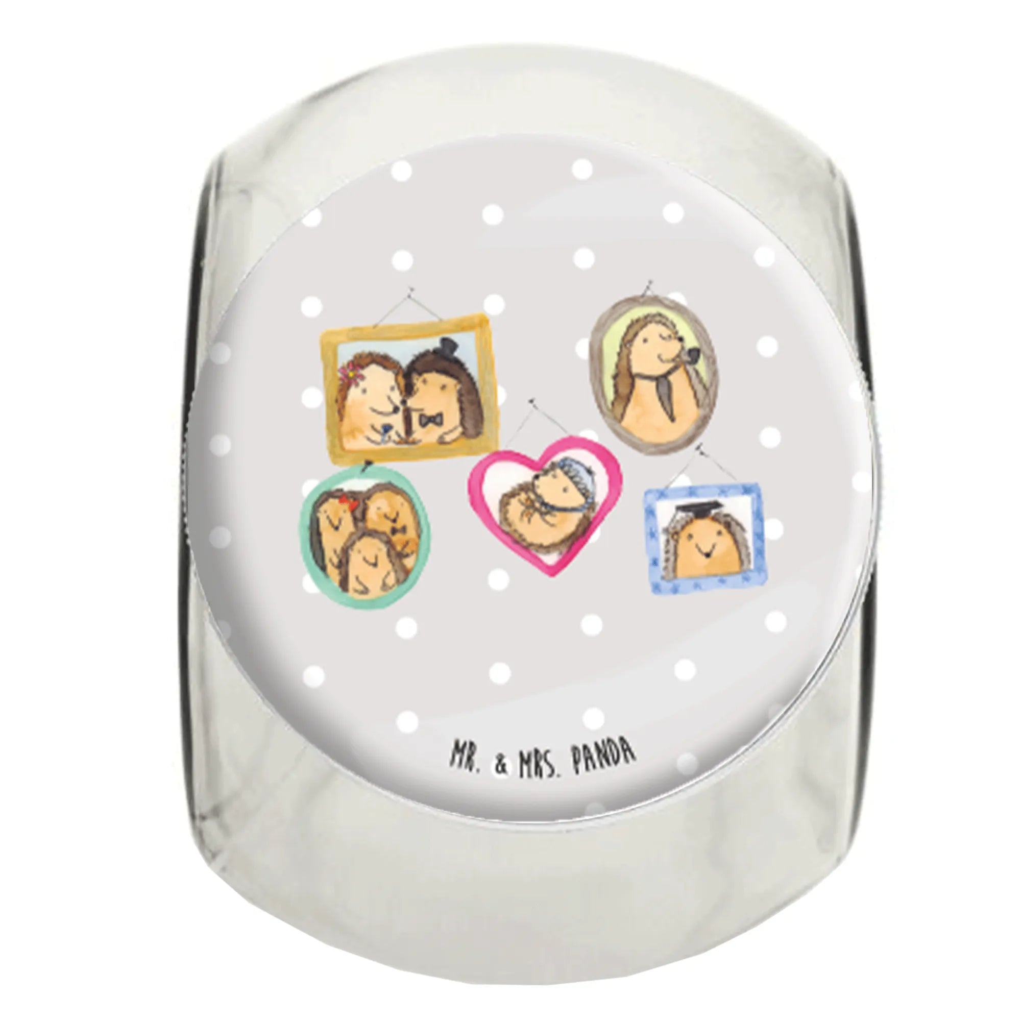 Słoik na cukierki Rodzina jeży - XL 2000ml - z napisem - Pastelowy szary