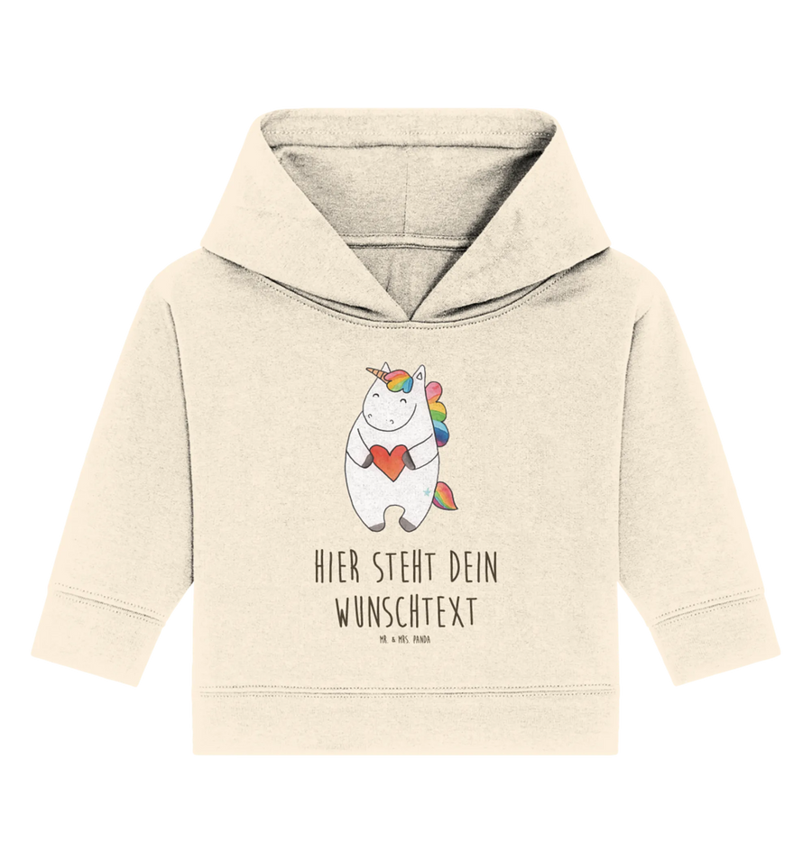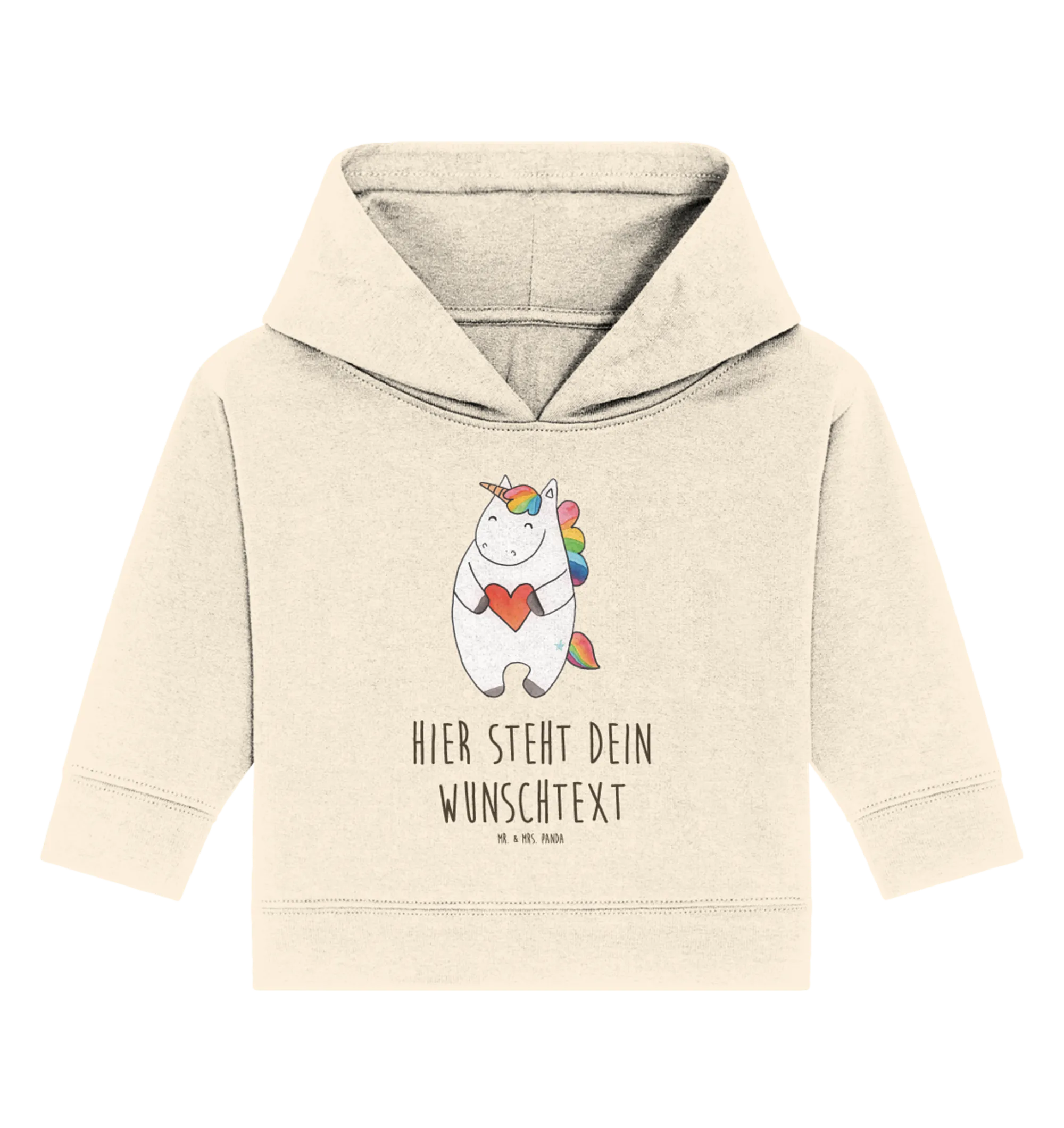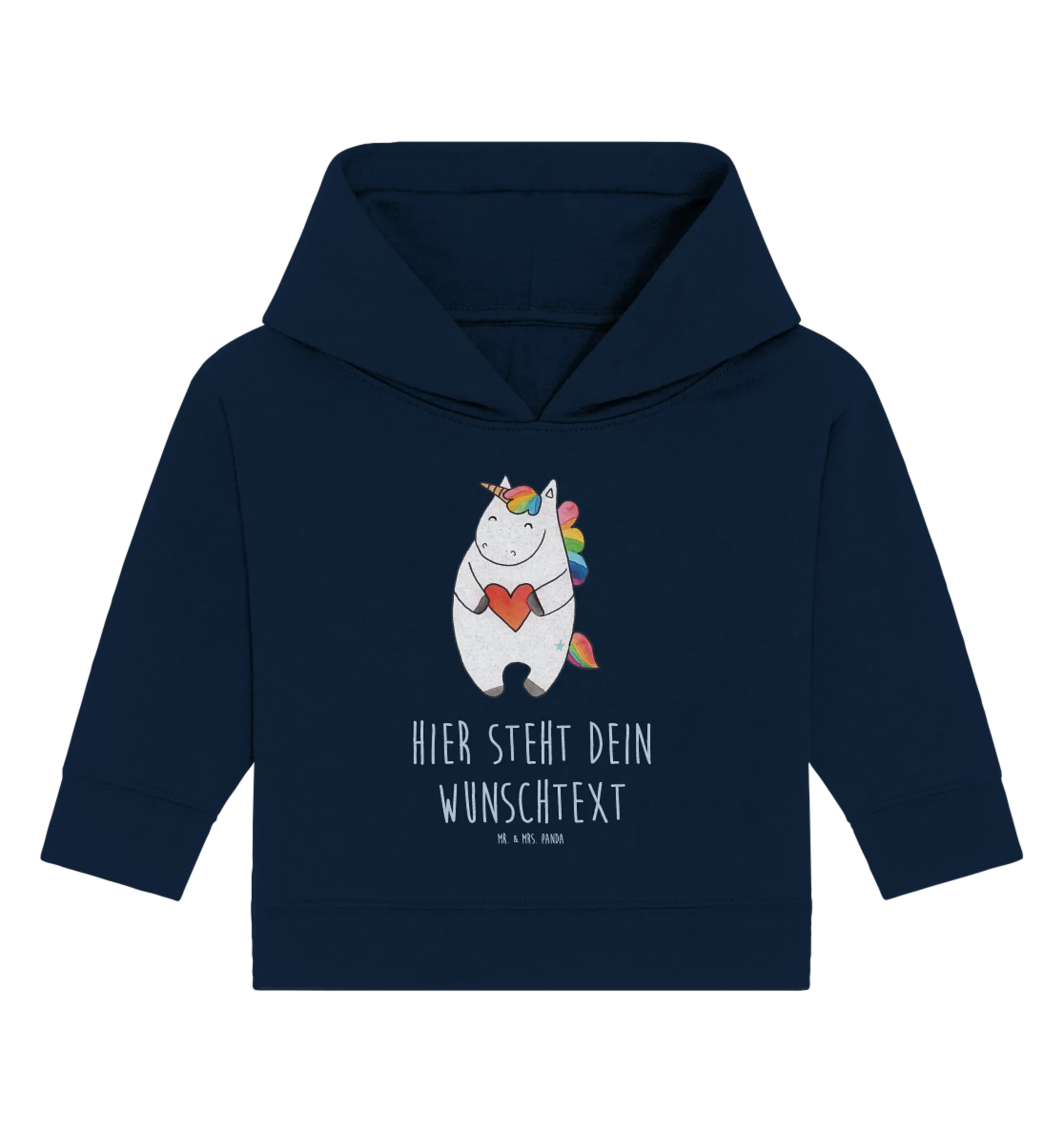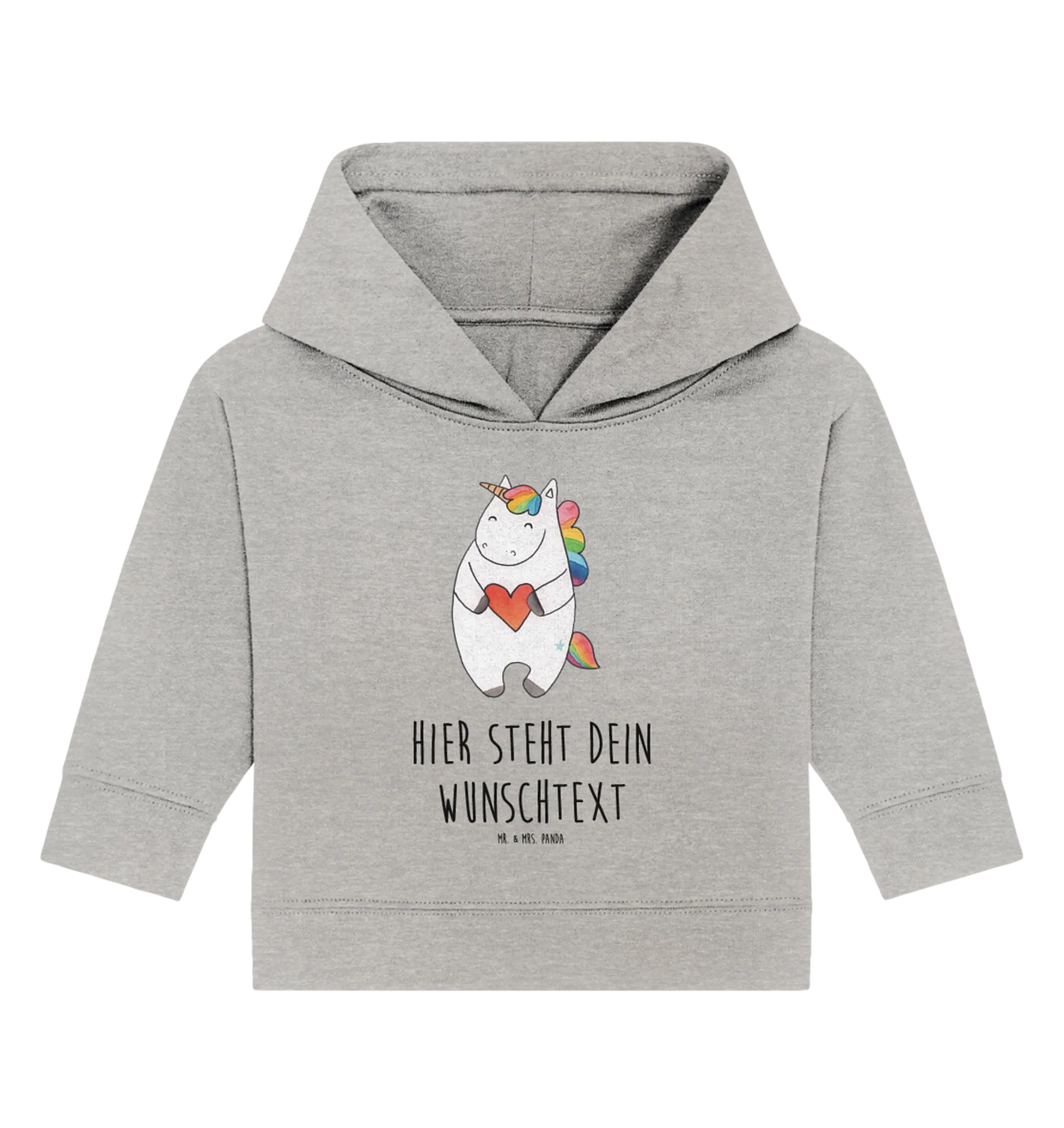 Wenn Du auf der Suche nach einem originellen und zugleich praktischen Geschenk bist, das nicht nur für Freude sorgt, sondern auch einen persönlichen Touch hat, dann wirst Du mit diesem personalisierten Baby Hoodie mit Einhorn Herz aus der Einhorn-Kollektion von Mr. & Mrs. Panda definitiv einen Volltreffer landen.