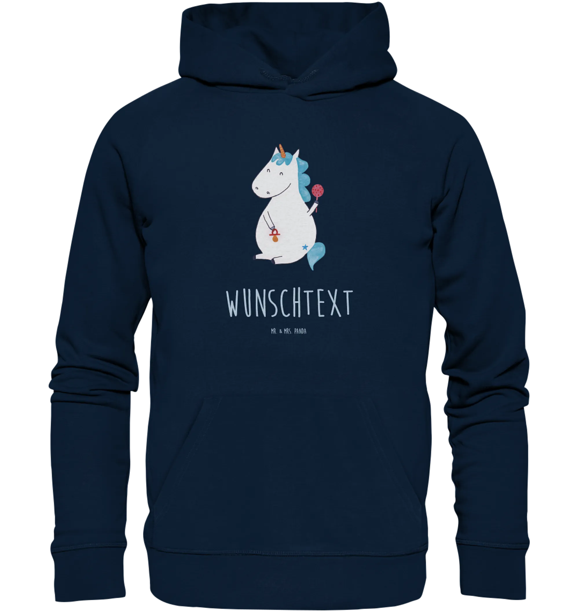 Mit einem einzigartigen und zauberhaften Einhorn-Motiv, wird dieser Hoodie schnell zum Favoriten für jeden kleinen Wunder zu Hause. Das Design zeigt ein süßes Baby-Einhorn, das strahlend in die Welt blickt, Schnuller in der Hand und bereit für neue Abenteuer. Und das Beste? Du kannst den Hoodie mit einem Wunschtext personalisieren - mach ihn zu etwas ganz Besonderem.