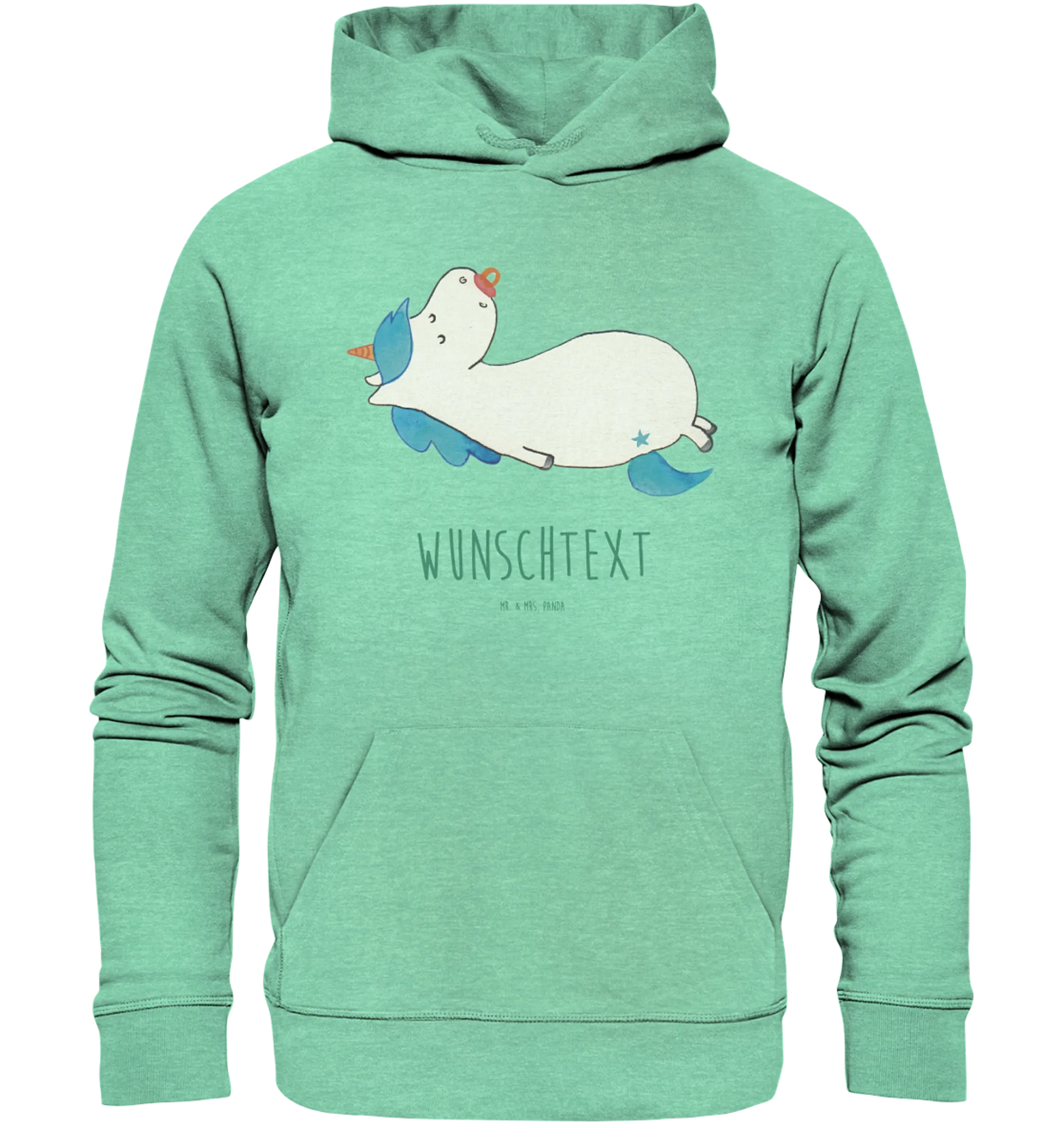 Das süße Einhorn-Motiv zeigt ein schlafendes Baby mit Schnuller, das die Herzen aller Eltern höher schlagen lässt. Personalisiere den Hoodie mit einem individuellen Wunschtext oder Namen und mache dieses Geschenk noch einzigartiger. Das Motiv ist liebevoll von Mrs. Panda handgezeichnet und passt perfekt in die zauberhafte Einhorn-Kollektion.