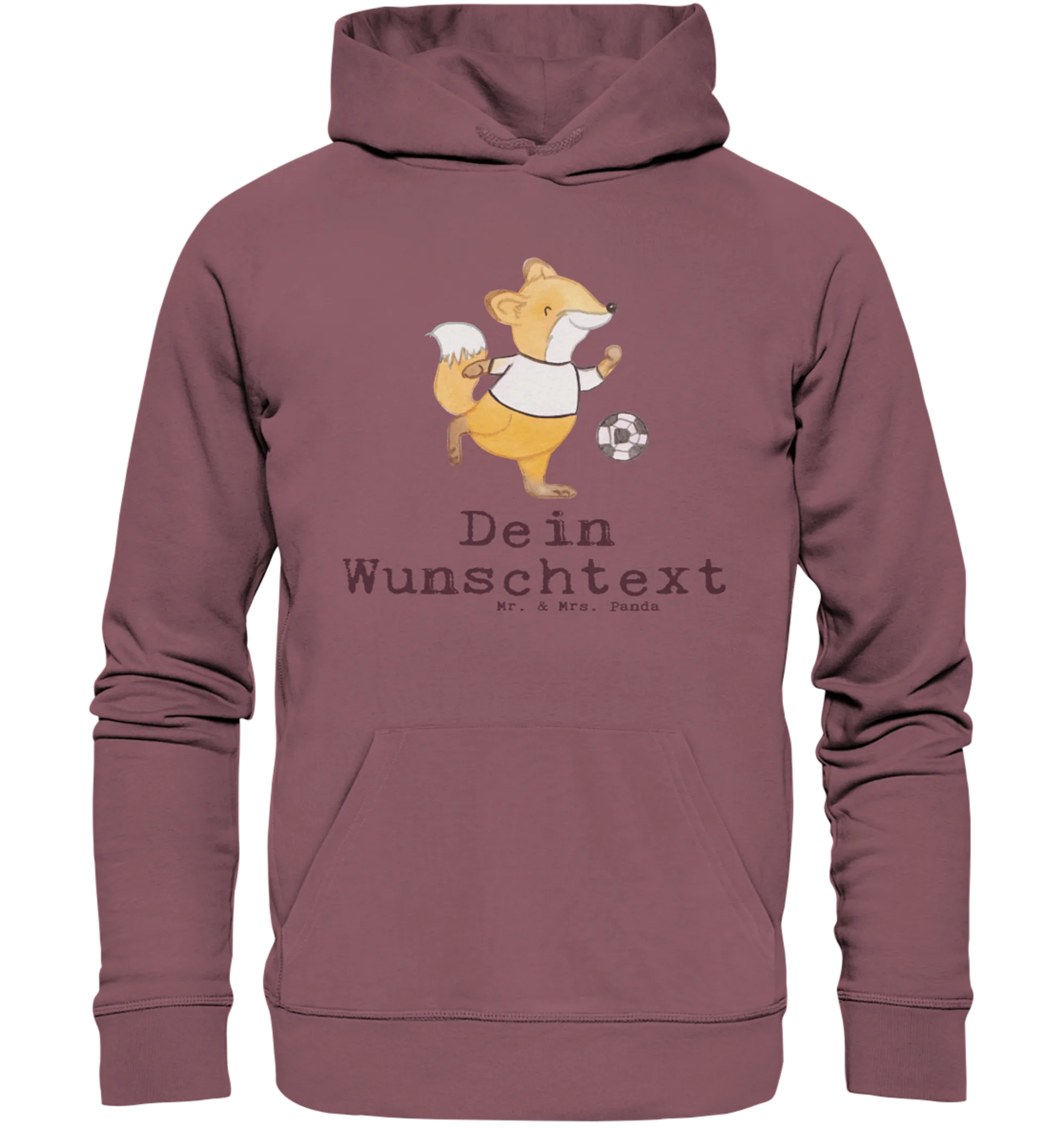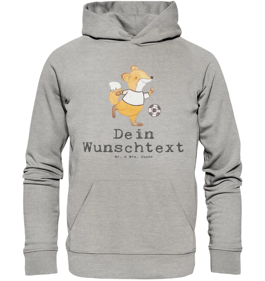 Entdecke den perfekten Begleiter für alle fußballbegeisterten Freunde: den personalisierten Hoodie mit dem niedlichen Motiv 'Fuchs Fußball spielen Tage' von Mr. & Mrs. Panda!