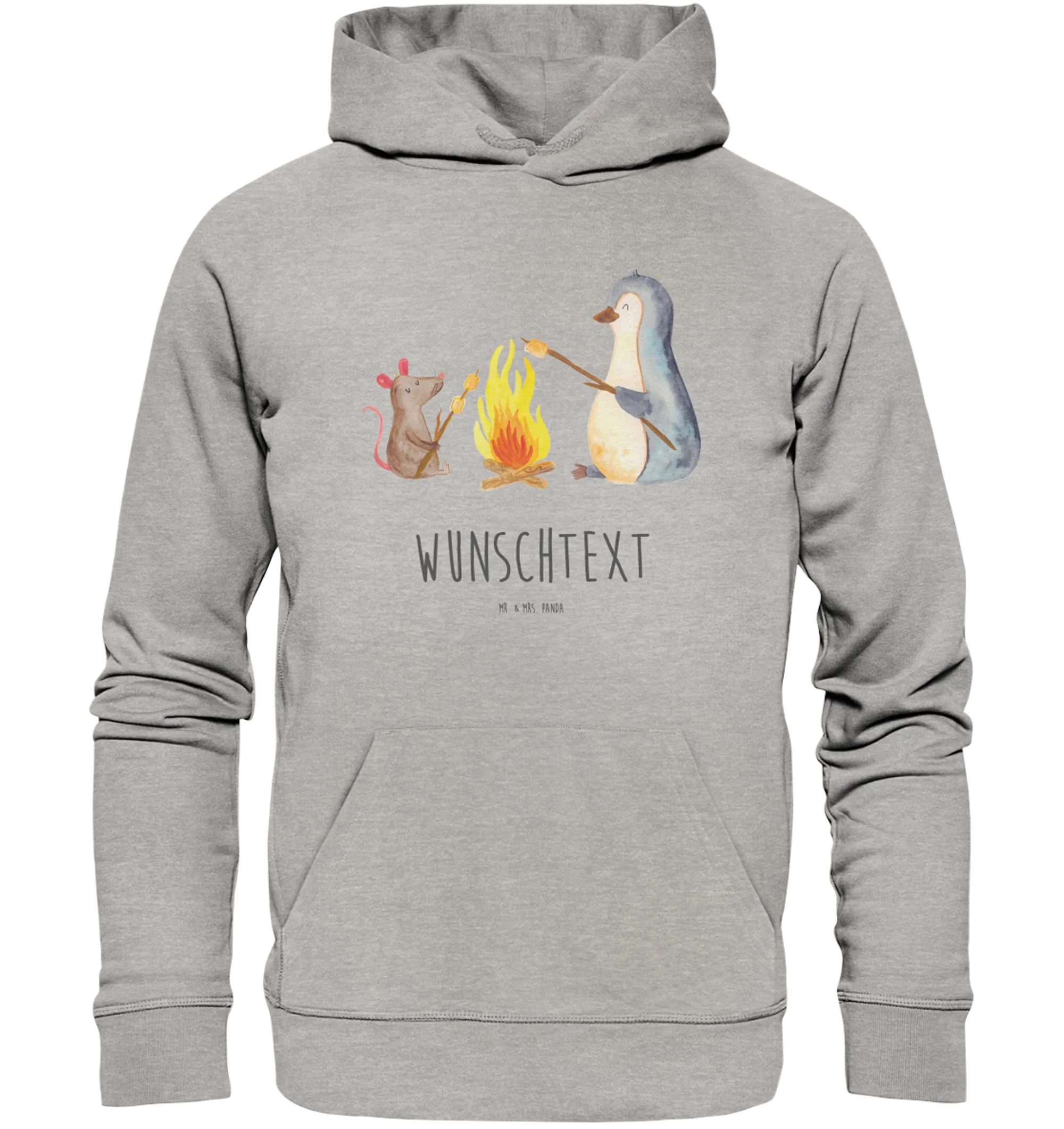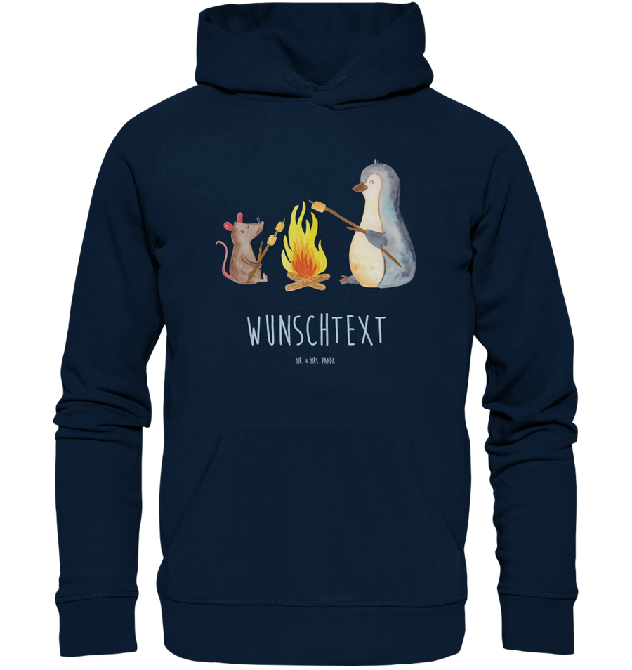 Der personalisierte Hoodie "Pinguin Lagerfeuer" aus der Pinguin-Kollektion von Mr. & Mrs. Panda ist das perfekte Geschenk für jeden Pinguinliebhaber! 🎁 Dieser wunderschöne Kapuzenpullover aus flauschiger Bio-Baumwolle ist nicht nur bequem, sondern auch ein echter Hingucker. Mit dem farbenfrohen Motiv eines Pinguins und einer Maus am Lagerfeuer, die gemeinsam Marshmallows grillen, bringt er eine gemütliche Stimmung.
