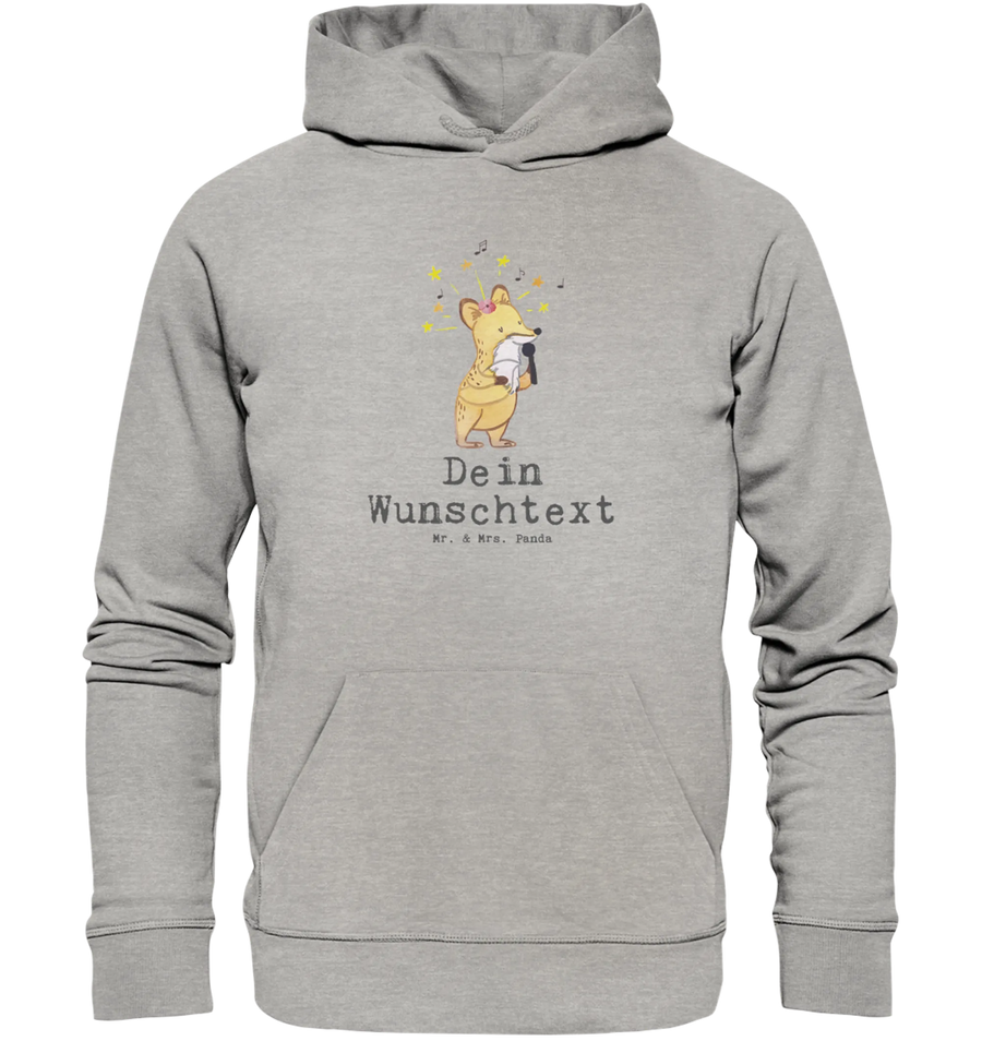 Der personalisierte Hoodie "Sängerin mit Herz" von Mr. & Mrs. Panda ist der perfekte Begleiter für alle, die die Musik und das Singen lieben. Dieser wunderschöne Kapuzenpullover aus biozertifizierter Baumwolle bietet nicht nur einen super bequemen Sitz, sondern auch ein süßes, handgezeichnetes Motiv eines singenden Fuchses, der mit Leidenschaft und Freude seinen Gesang teilt.