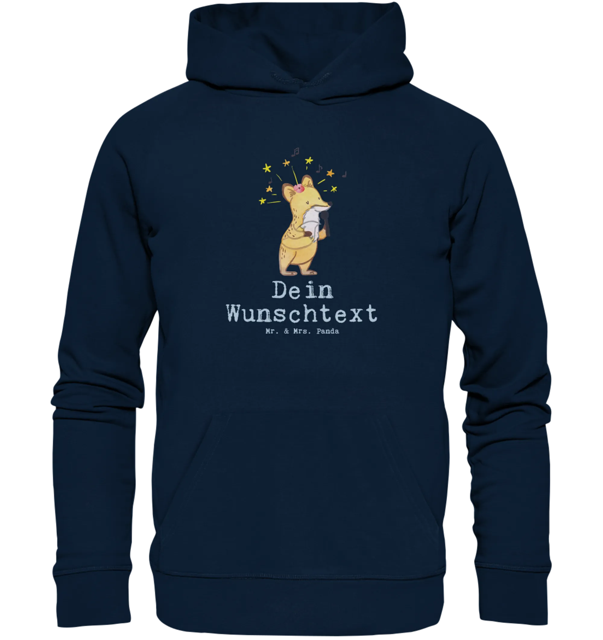 Mit dem liebevollen Motiv eines singenden Fuchses, der fröhlich ein Lied trällert, bringt dieser Hoodie ein Lächeln auf jedes Gesicht. Und das Beste: Du kannst ihn ganz personalisieren! Füge deinen Wunschnamen oder deinen eigenen Text hinzu, um ein ganz persönliches Geschenk zu kreieren, das niemand so schnell vergisst.