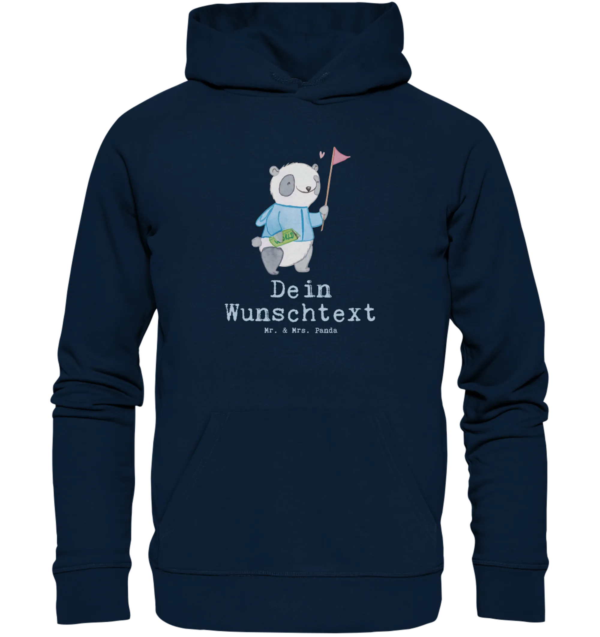 Der Hoodie ist nicht nur bequem und stylisch, sondern auch besonders individuell, denn du kannst deinen eigenen Wunschtext oder Namen hinzufügen! Das süße Panda-Motiv zeigt einen Reiseleiter, der mit einer Fahne strahlend durch die Gegend schaut und einen Städteplan in der Hand hält. Dies macht den Hoodie zu einem wunderbaren Geschenk für jeden Anlass – sei es für den Jobbeginn, ein Jubiläum oder als Abschiedsgeschenk.