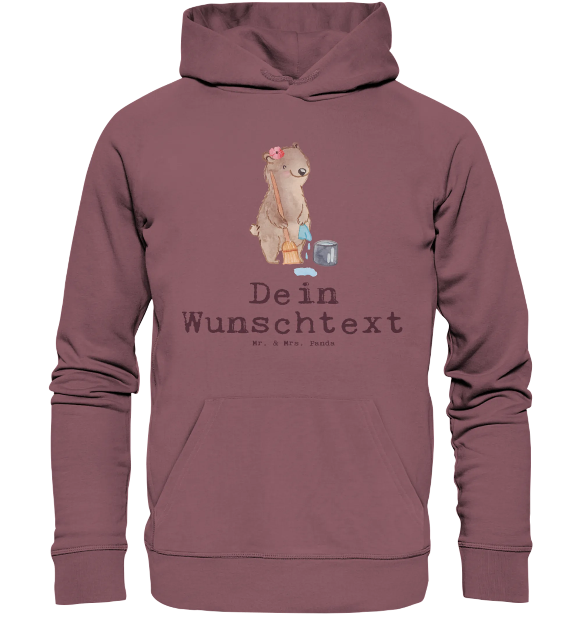 Der Hoodie ist aus 85 % Bio-Baumwolle und 15 % recyceltem Polyester gefertigt, sodass er nicht nur angenehm zu tragen ist, sondern auch umweltfreundlich. Mit einem tollen Motiv, das eine Reinigungskraft zeigt, die mit Herz und Begeisterung arbeitet, ist er ein echter Hingucker. Zudem kannst du den Hoodie mit deinem Wunschtext oder Namen personalisieren, was ihm eine ganz besondere Note verleiht.