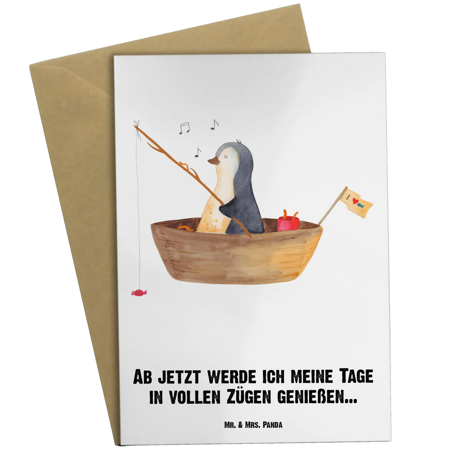 Spersonalizowana kartka z życzeniami pingwin łódka wędkarska