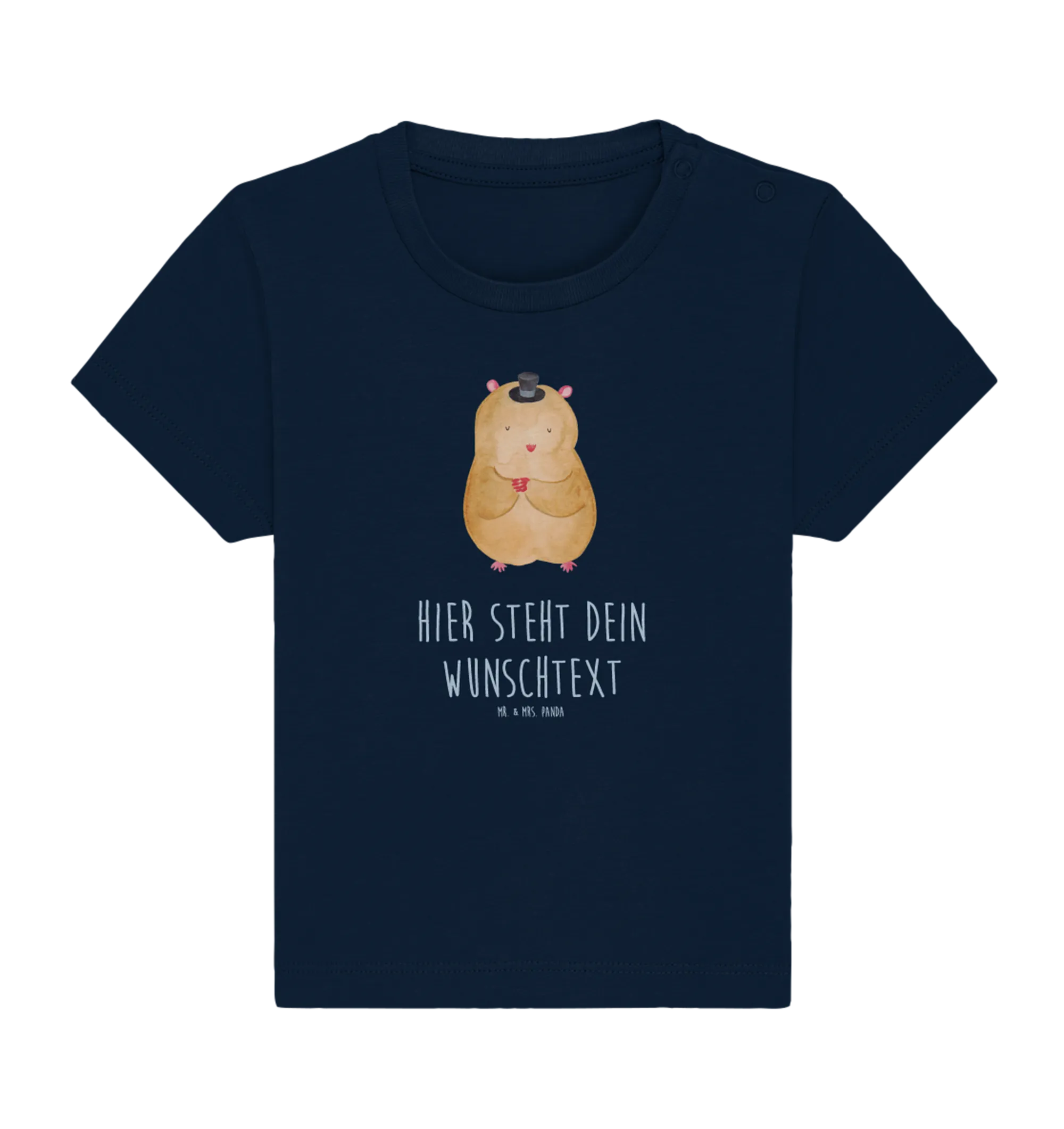 Jedes Detail dieses Shirts wurde mit viel Liebe und Hingabe entworfen. Verschenke Freude, kreative Inspiration und ein Stückchen Magie - mit dem personalisierten Baby T-Shirt "Hamster mit Hut".