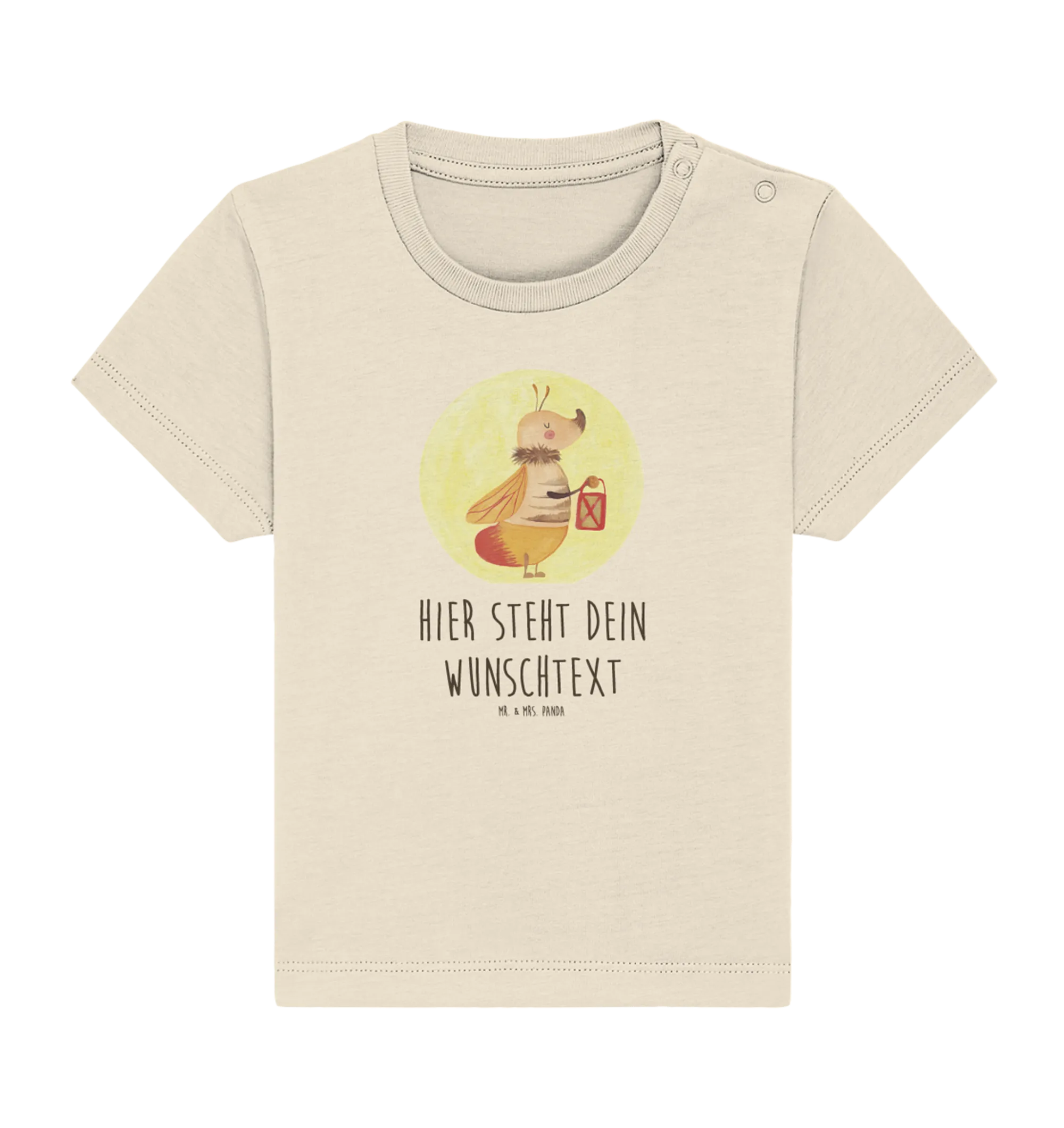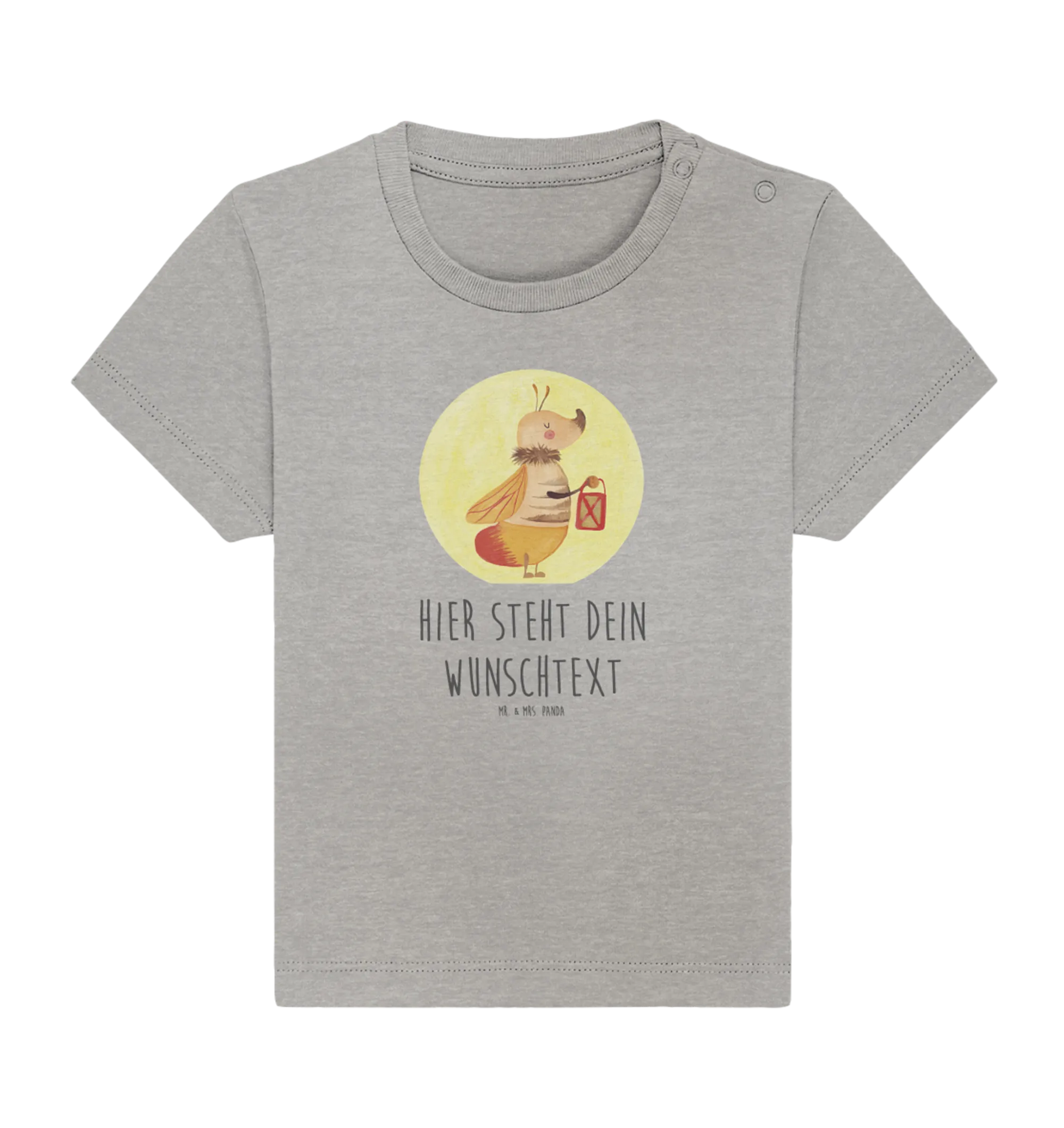 Entdecke das zauberhafte personalisierte Baby T-Shirt mit dem liebevollen Motiv eines kleinen Glühwürmchens aus der Small World Kollektion von Mr. & Mrs. Panda. Dieses liebevoll designte Shirt ist nicht nur ein echter Hingucker, sondern auch eine ganz besondere Möglichkeit, deinem kleinen Lieblingsmenschen zu zeigen, wie sehr er oder sie dein Leben zum Leuchten bringt.
