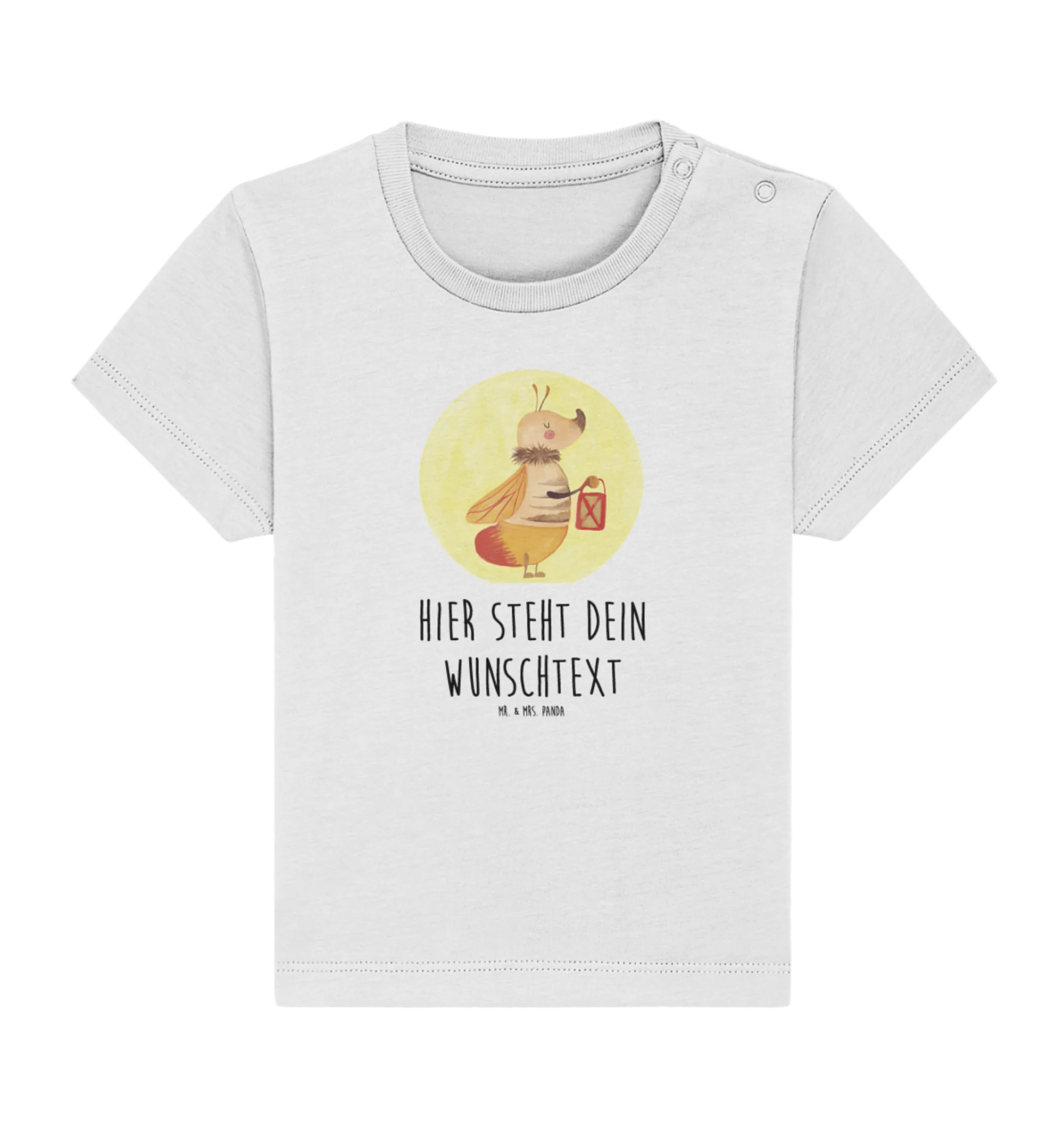 Entdecke das bezaubernde personalisierte Baby T-Shirt mit dem niedlichen Glühwürmchen-Motiv aus der Small World Kollektion von Mr. & Mrs. Panda. Dieses einzigartige Shirt ist mehr als nur ein Kleidungsstück – es ist ein wunderschöner Liebesbeweis für Deinen Lieblingsmenschen.