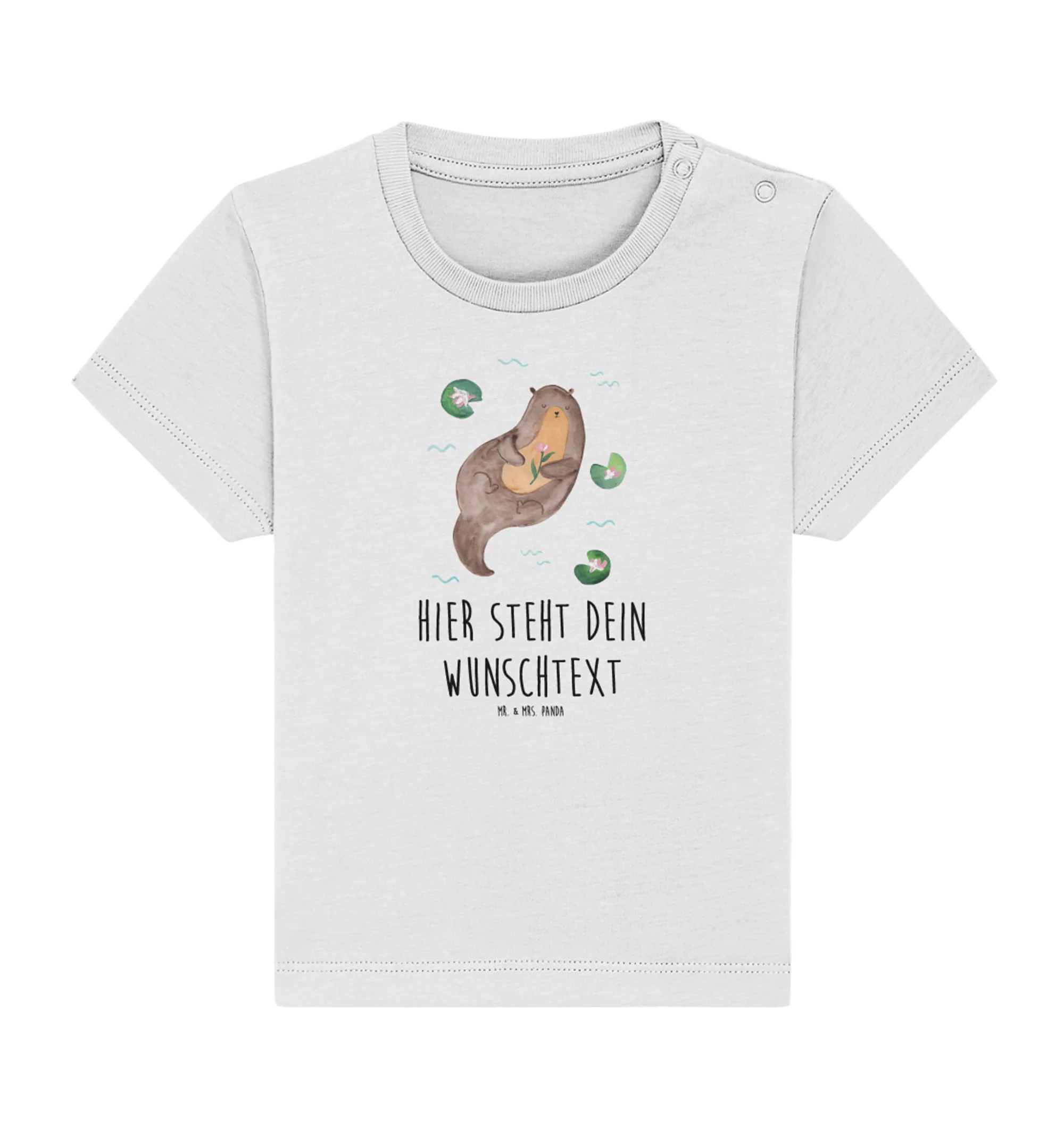 Entdecke das perfekte Geschenk für kleine Otterliebhaber mit unserem personalisierten Baby T-Shirt 'Otter mit Seerose' aus der Otter-Kollektion von Mr. & Mrs. Panda! Dieses kuschelweiche Shirt ist aus 100% Öko-Baumwolle gefertigt und besonders sanft zur zarten Babyhaut. Der liebevoll gestaltete Otter, der fröhlich durch Seerosen schwimmt, bringt jeden zum Schmunzeln.