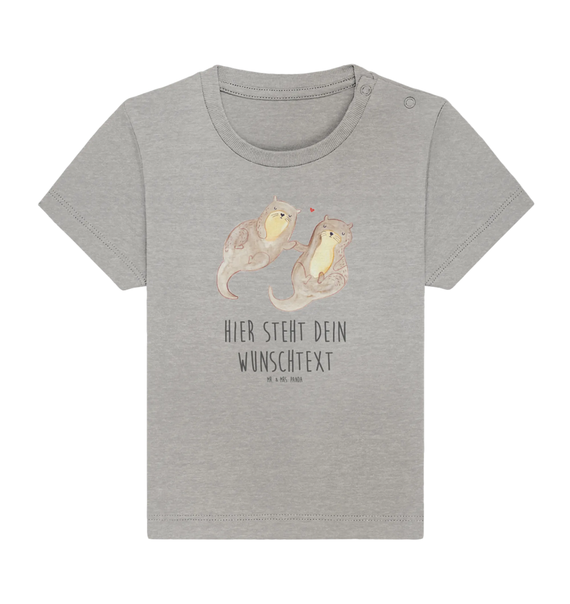 Das personalisierte Baby T-Shirt mit dem niedlichen Motiv der händchenhaltenden Otter ist das perfekte Geschenk für kleine Abenteurer und deren Eltern. Dieses süße T-Shirt mit den zwei verliebten Ottern, die glücklich auf dem Rücken schwimmen, bringt jeden zum Schmunzeln und macht aus jedem Baby einen kleinen Charmeur!