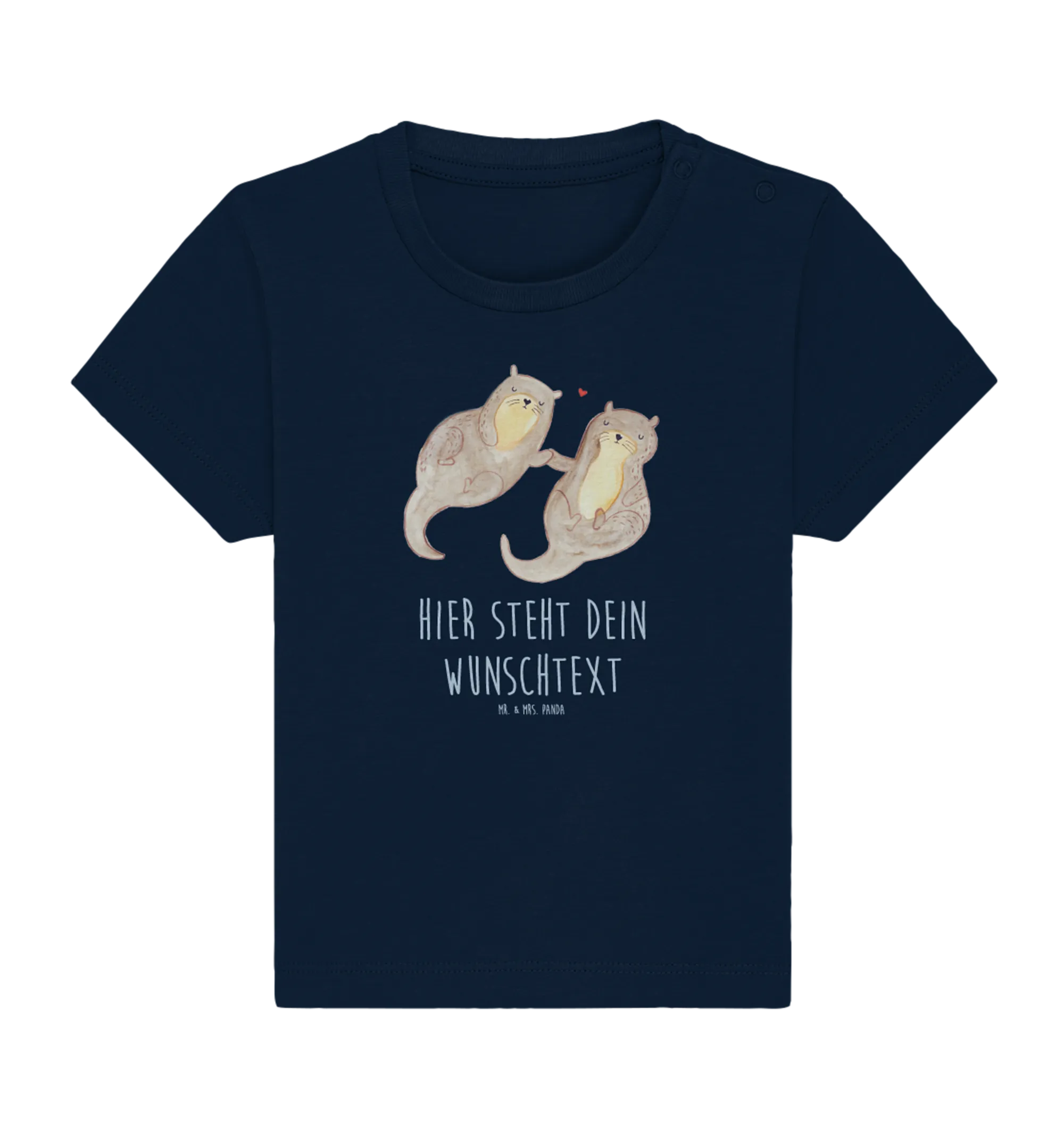 Das personalisierte Baby T-Shirt mit dem süßen Motiv 'Otter händchenhaltend' aus der Otter-Kollektion von Mr. & Mrs. Panda ist das perfekte Geschenk für kleine Abenteurer und ihre Eltern! Dieses zauberhafte Shirt in edlem French Navy lässt nicht nur die Herzen von Eltern höher schlagen, sondern auch die ihrer kleinen Lieblinge.