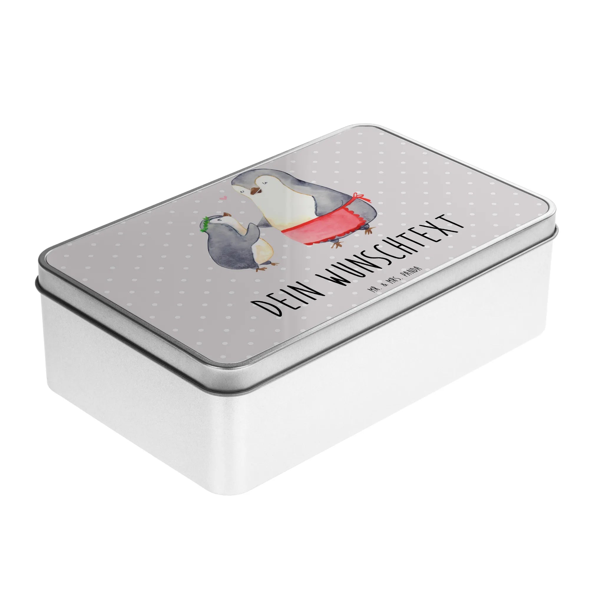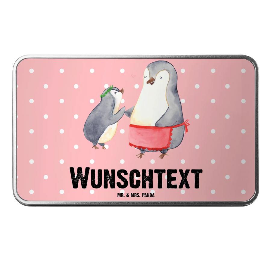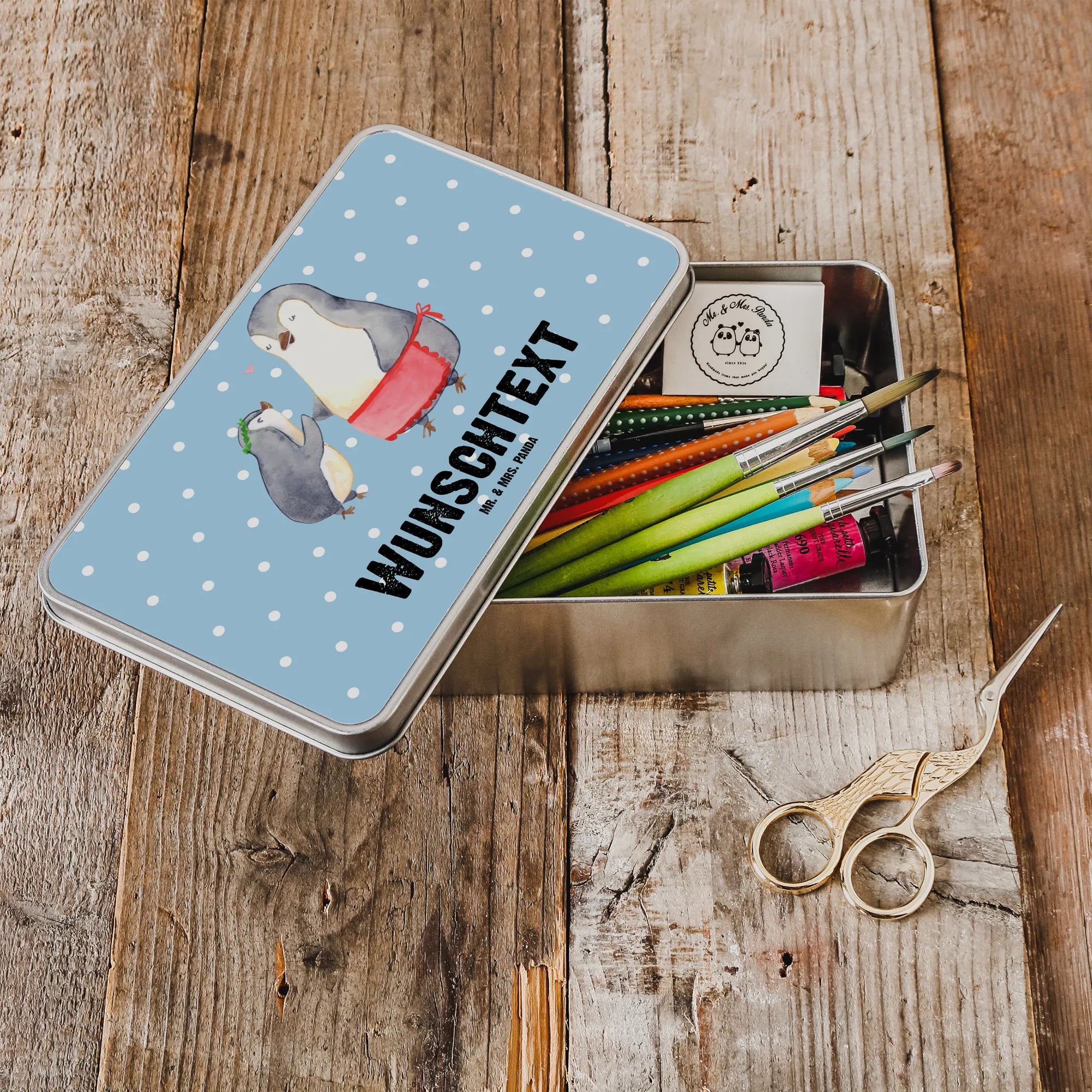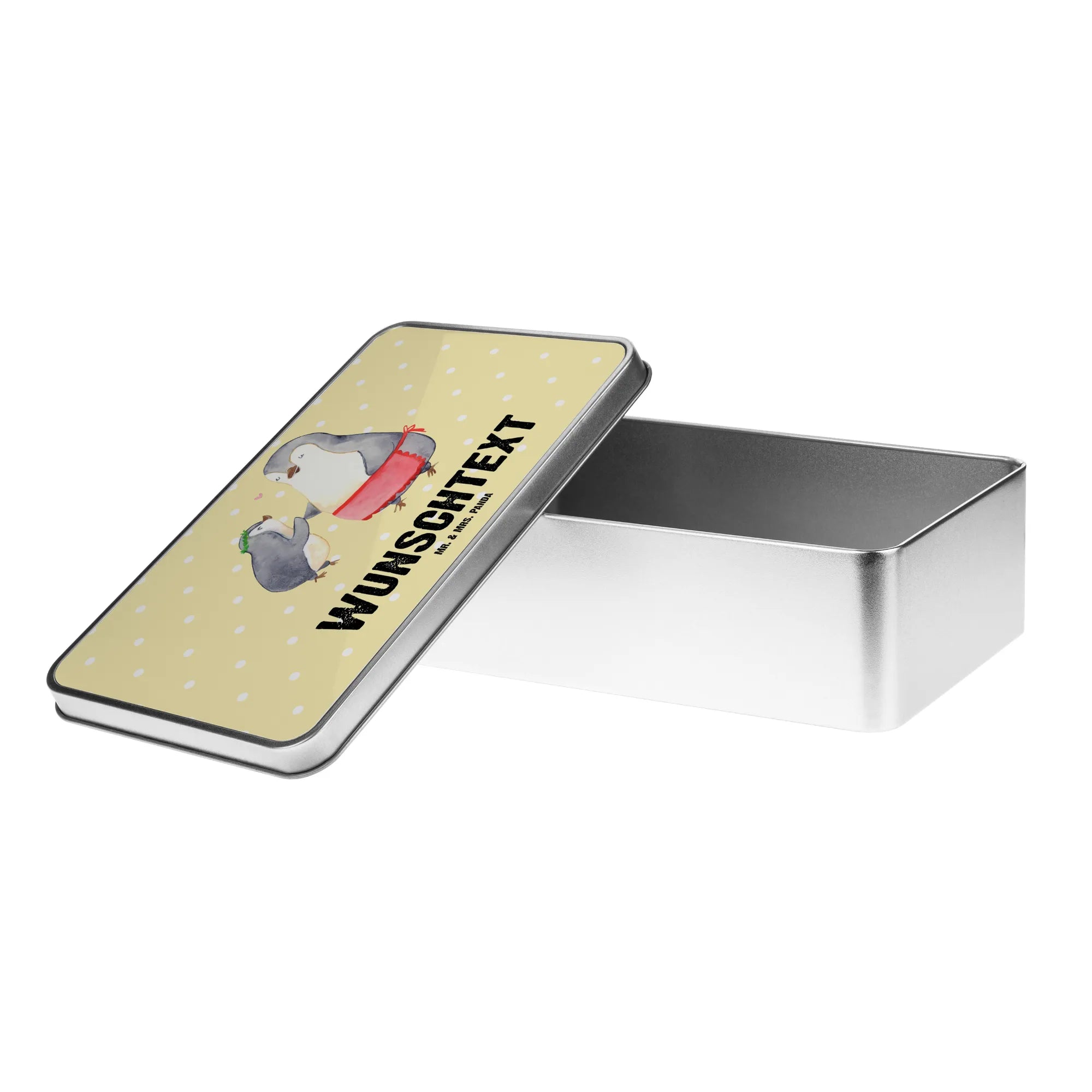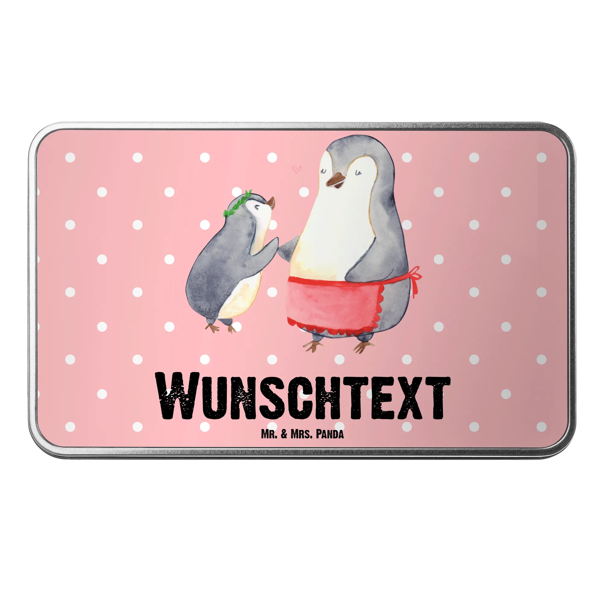 Spersonalizowana metalowa puszka Pingwin z dzieckiem - Pastelowy czerwony
