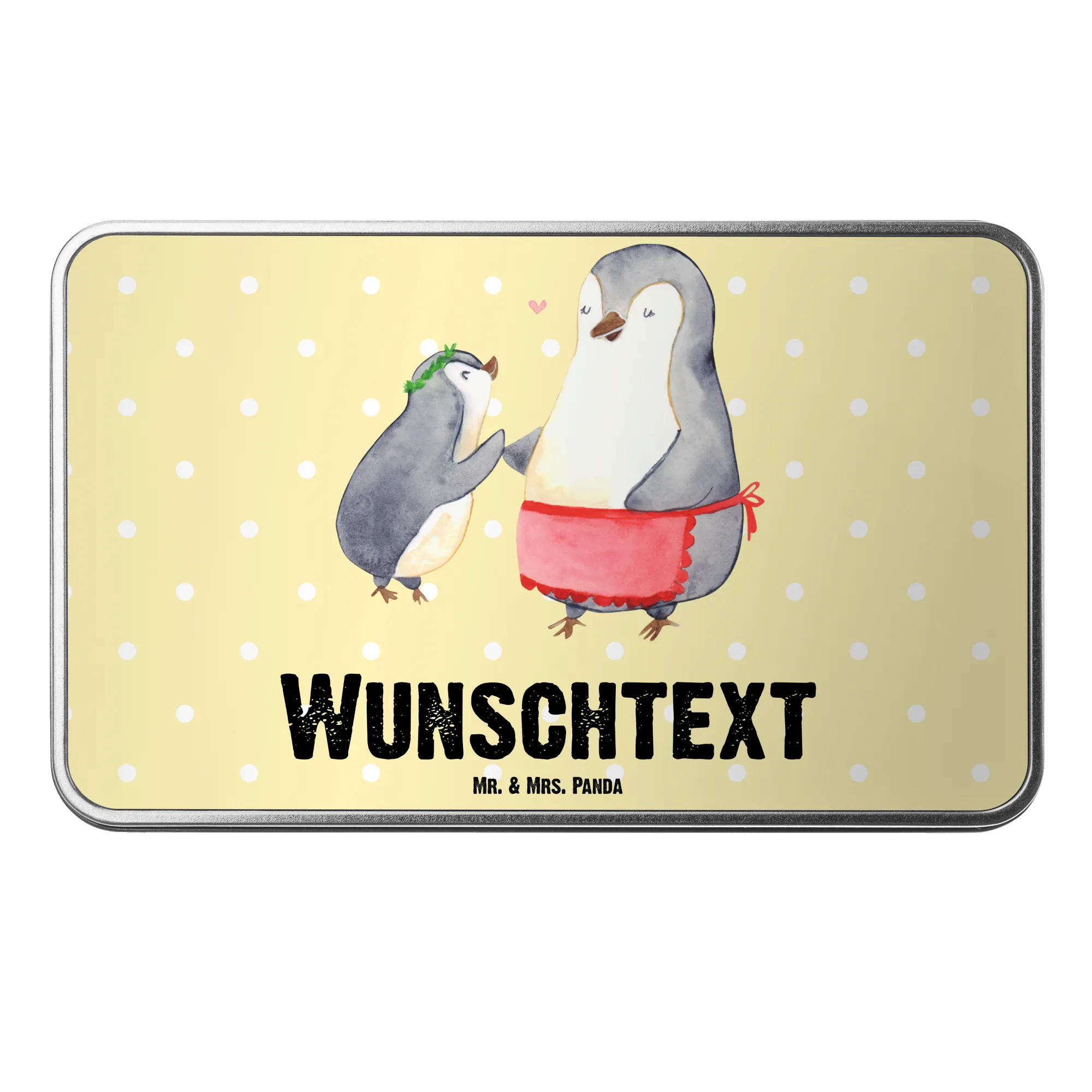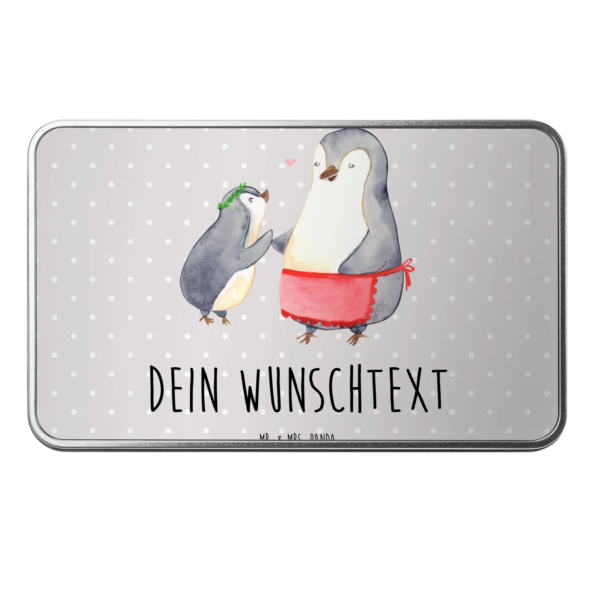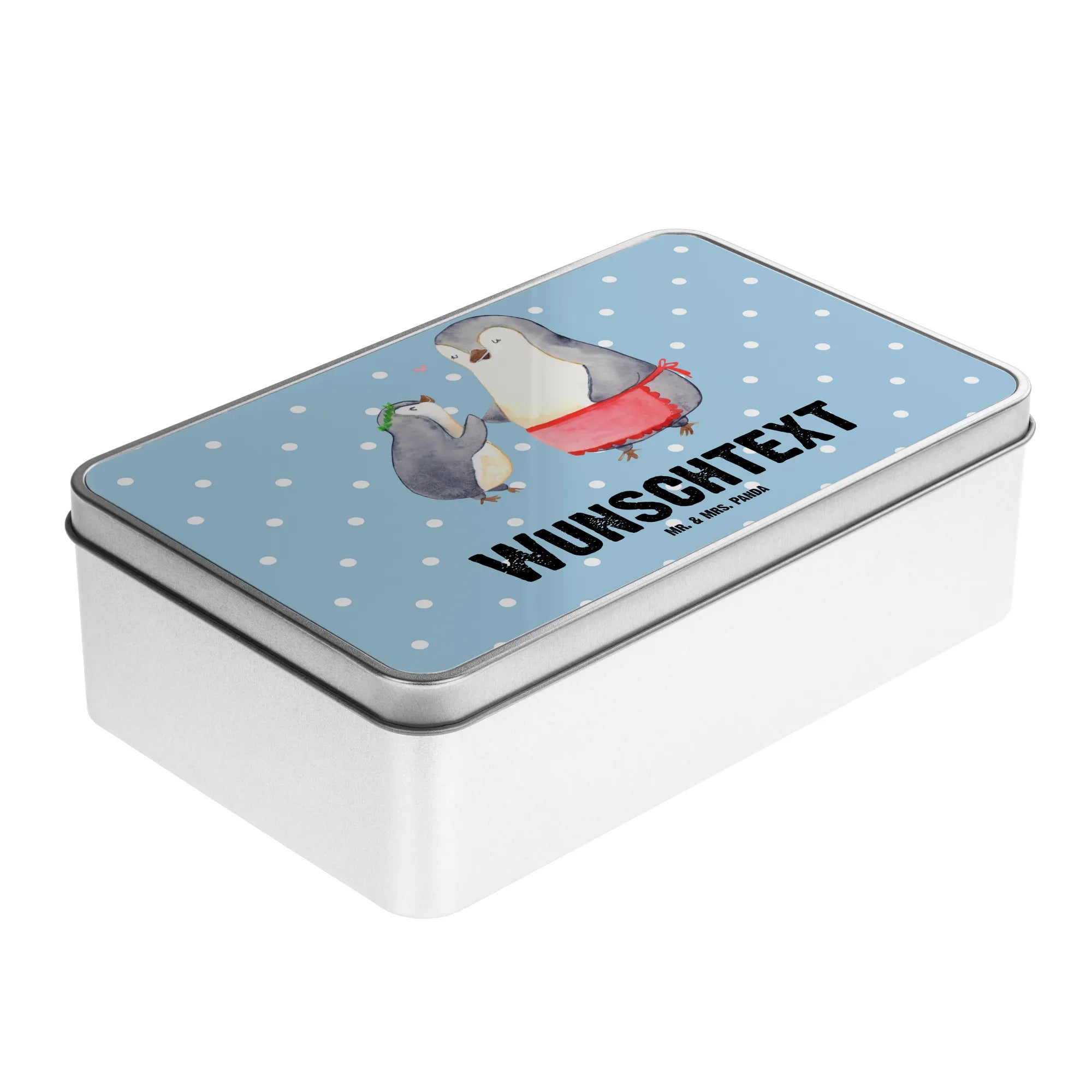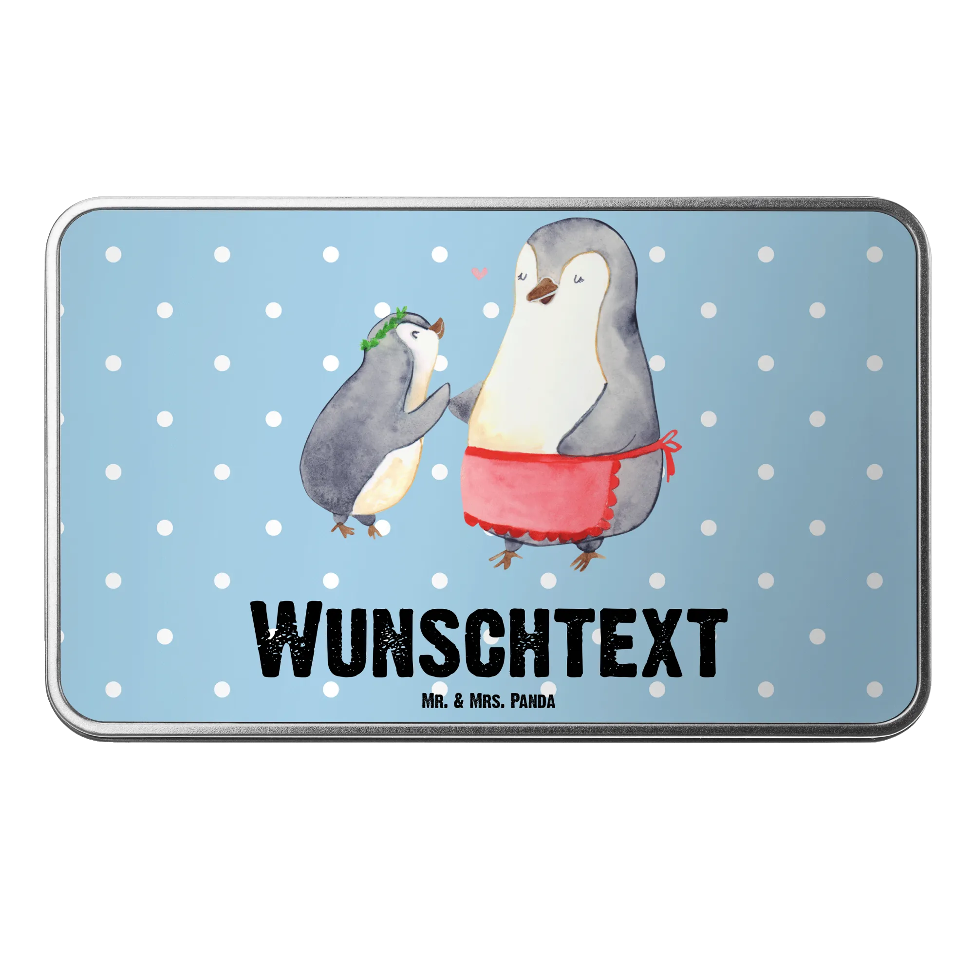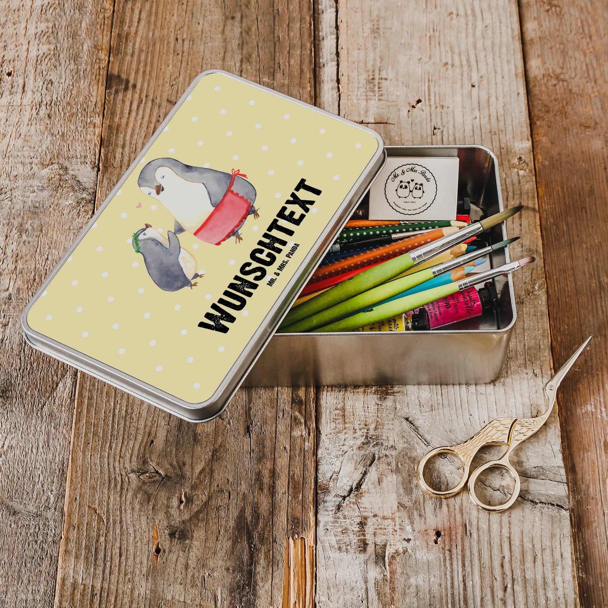 Spersonalizowana metalowa puszka Pingwin z dzieckiem - Pastelowy czerwony