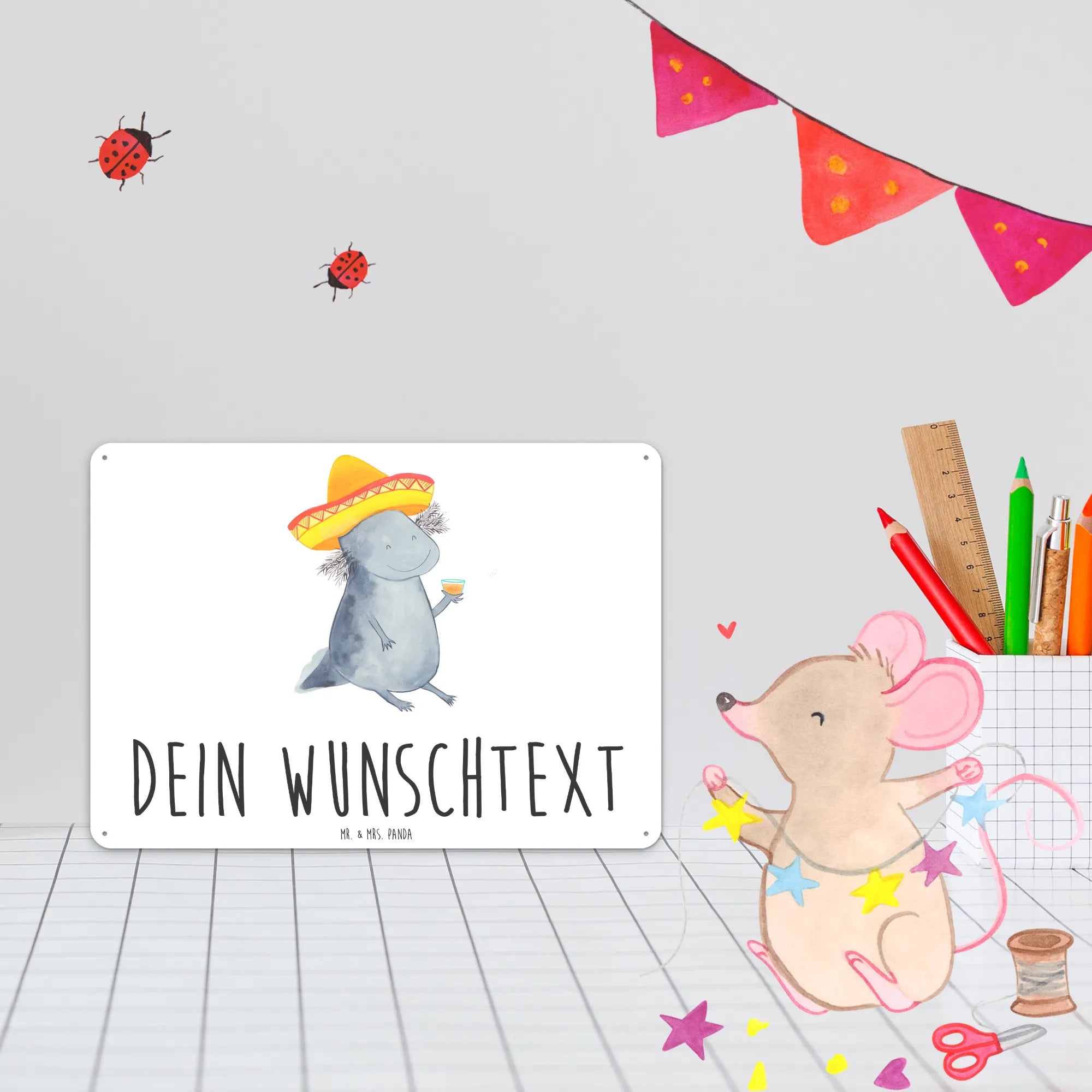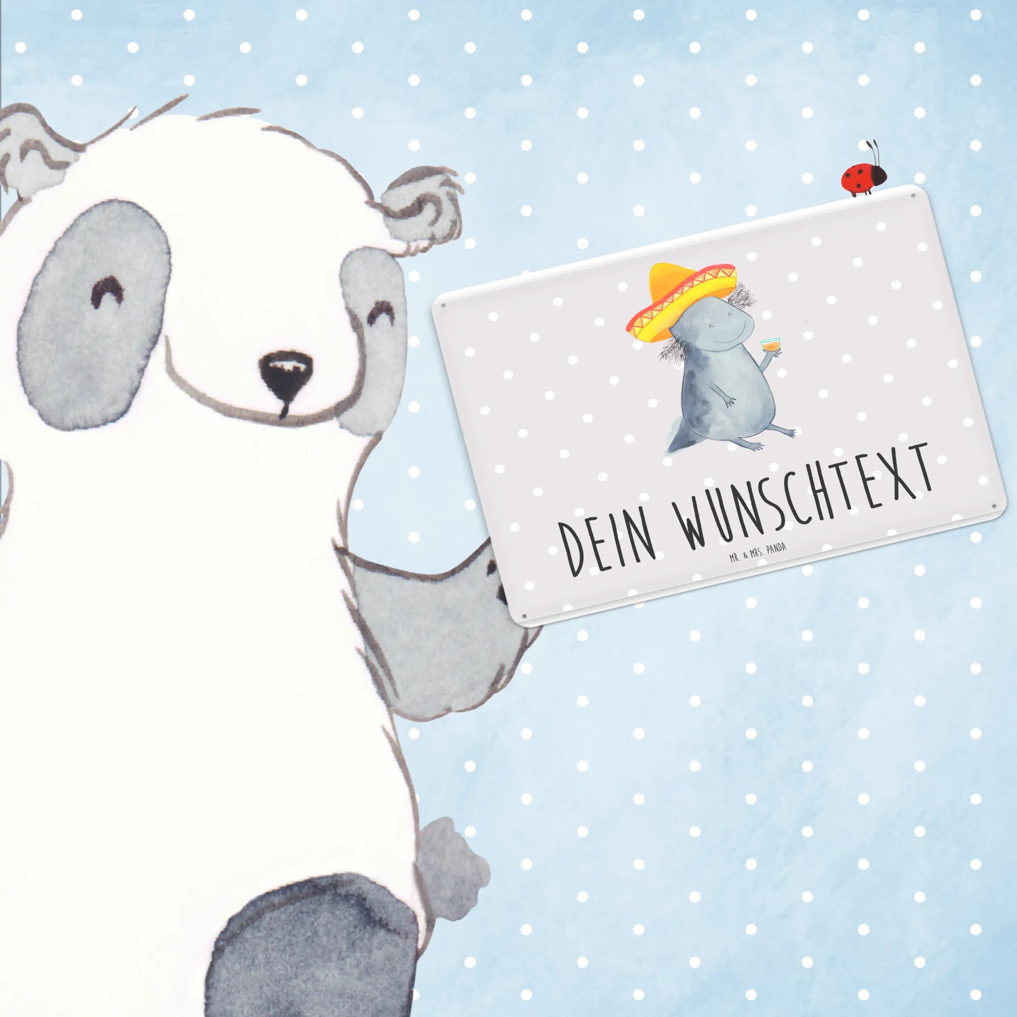 Spersonalizowana tabliczka z blachy Aksolotl Tequila - DIN A6 - Pastelowy szary