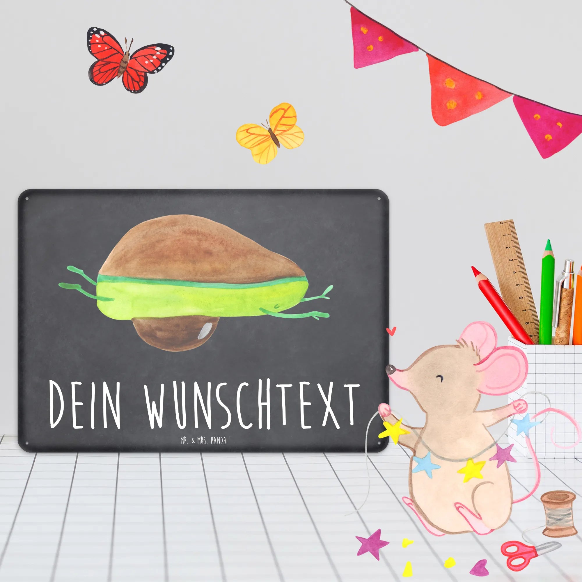 Spersonalizowana tabliczka z blachy Awokado joga - DIN A6 - Pastelowy żółty