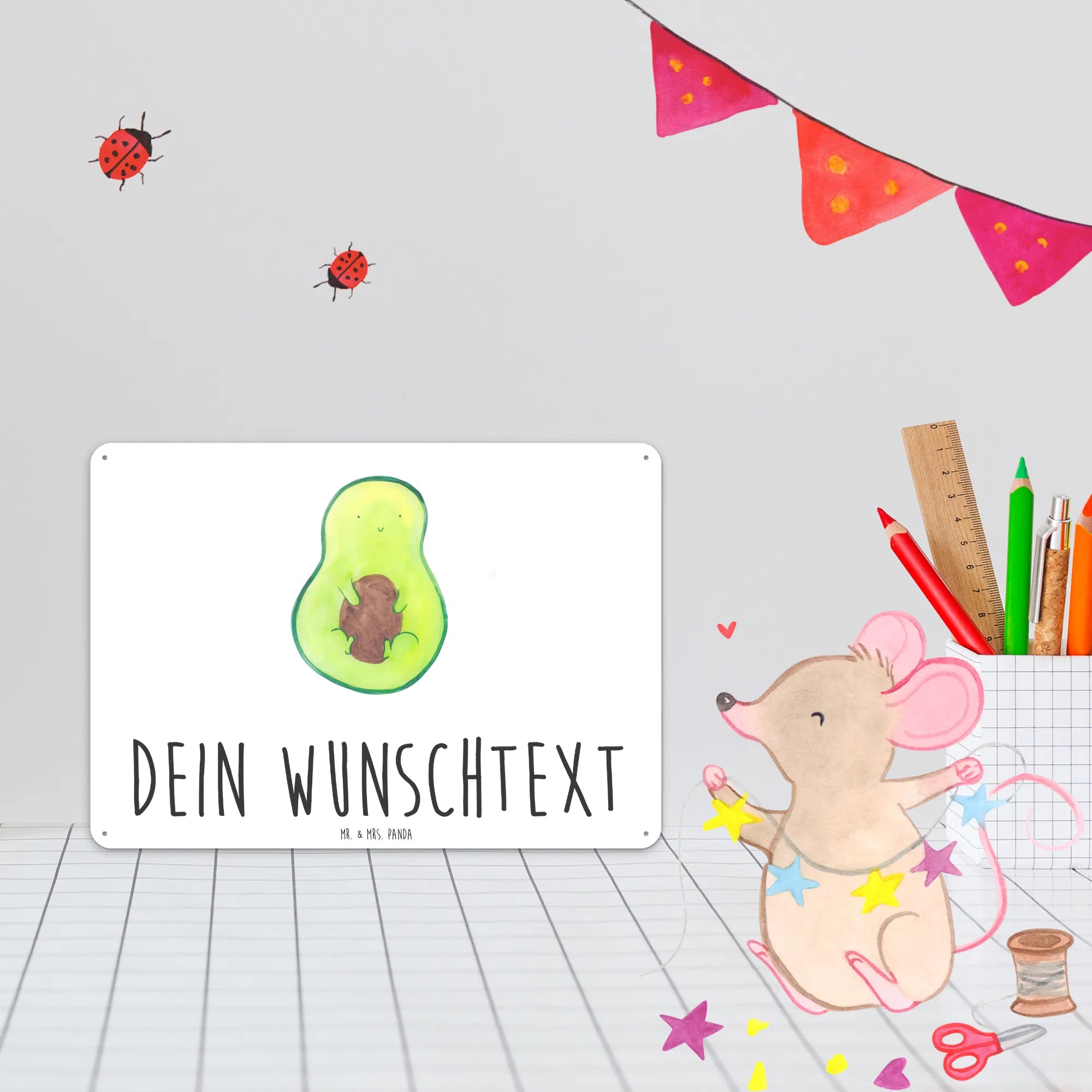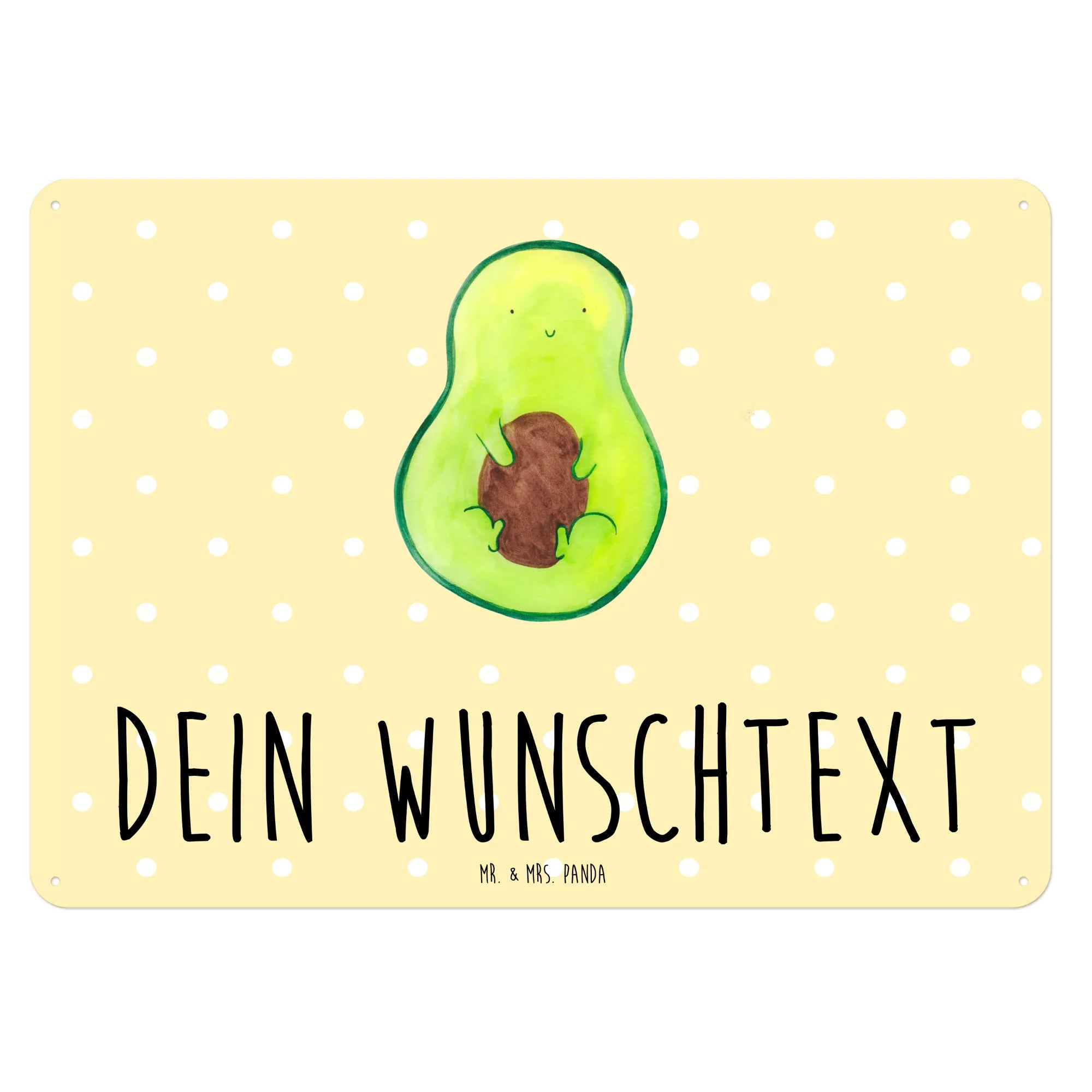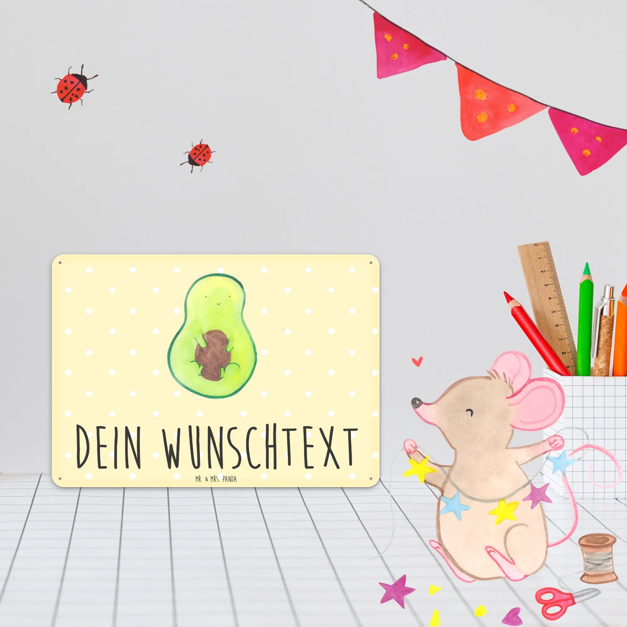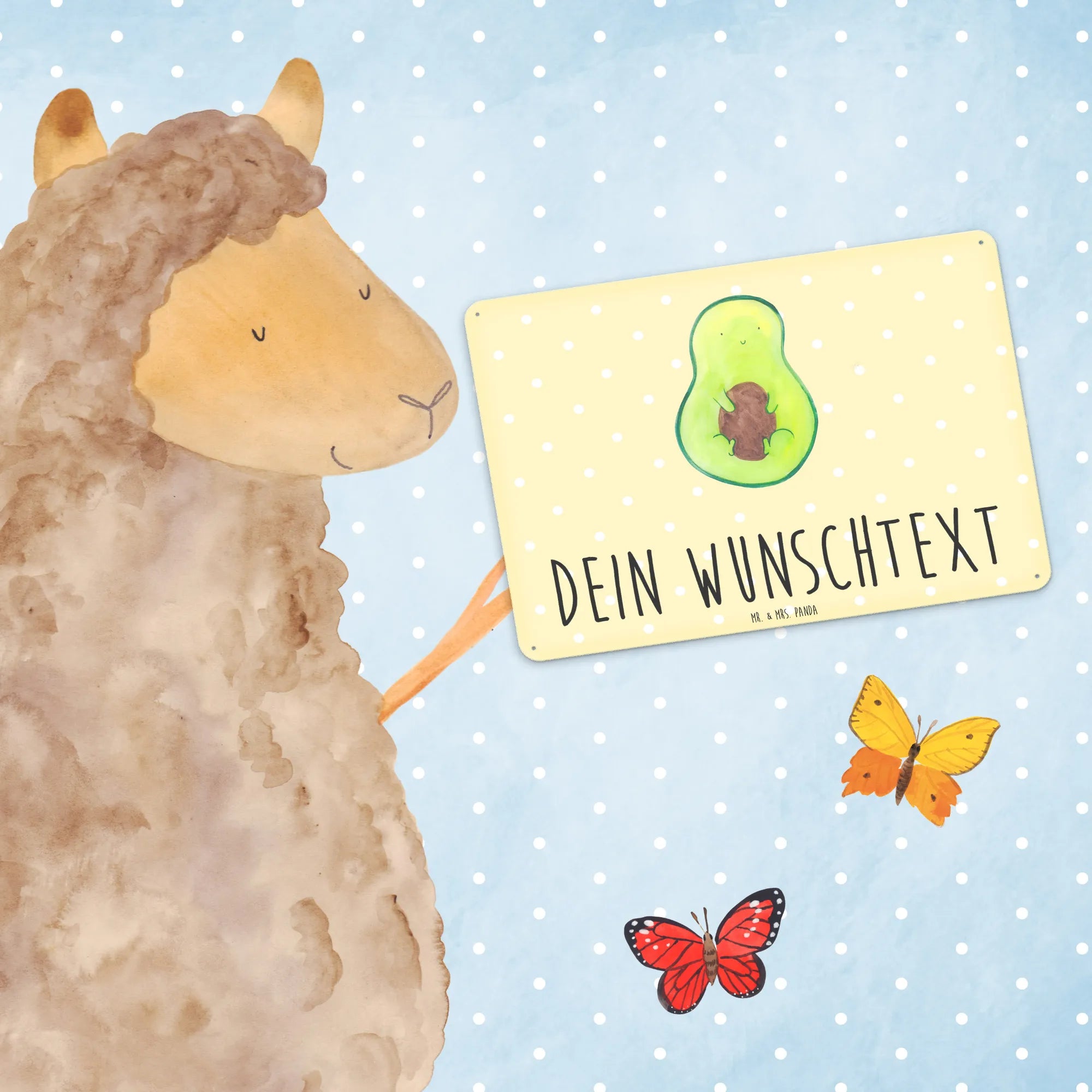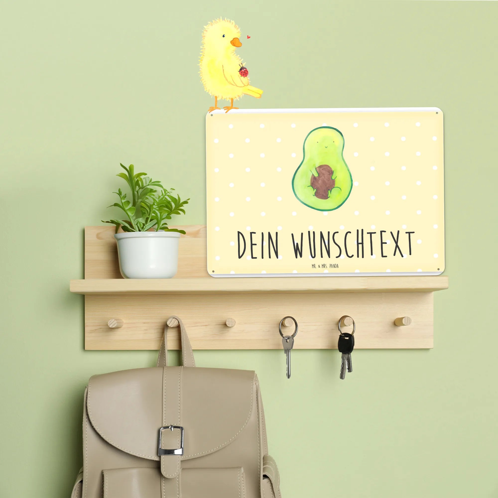 Spersonalizowana tabliczka z blachy Awokado pestka - DIN A6 - Pastelowy żółty