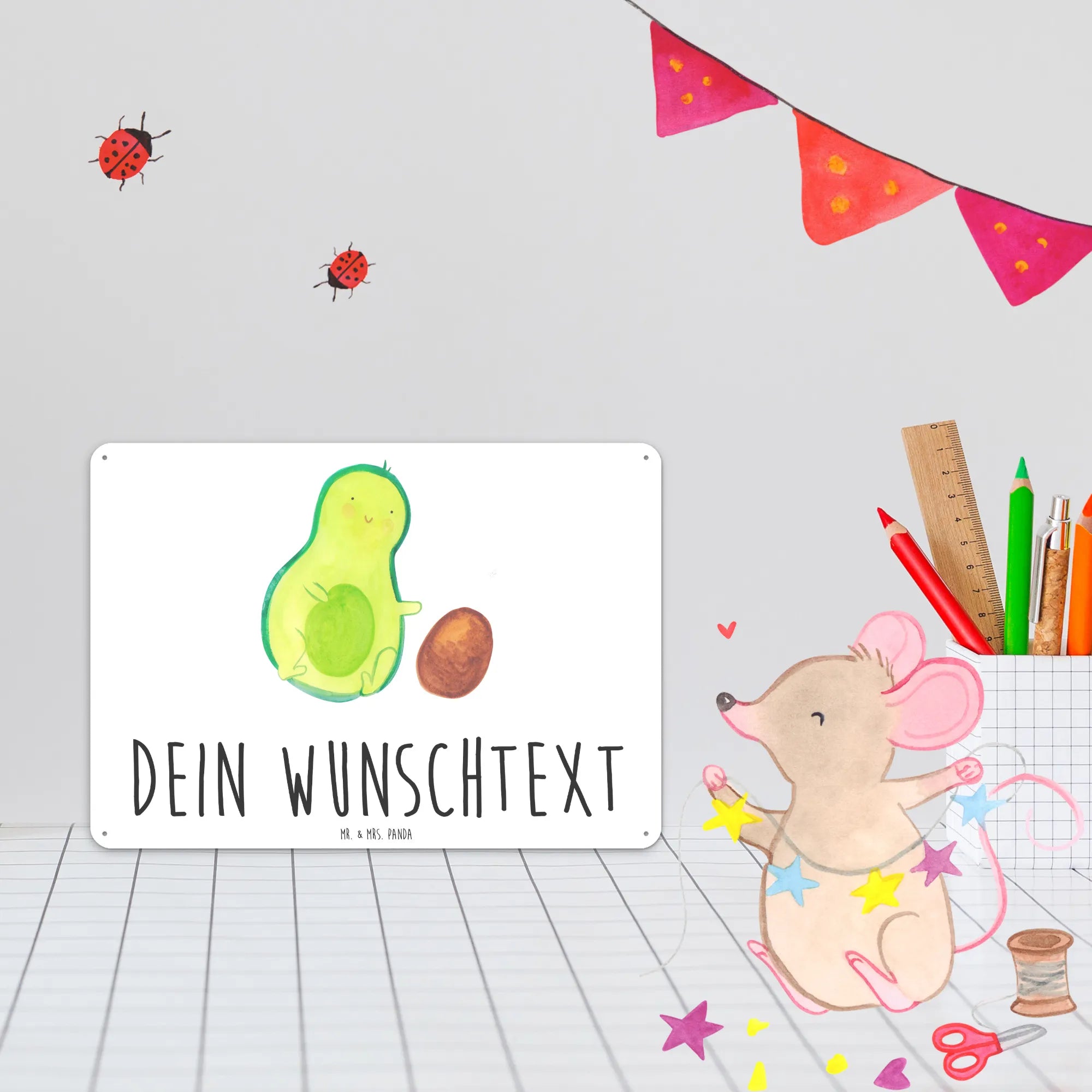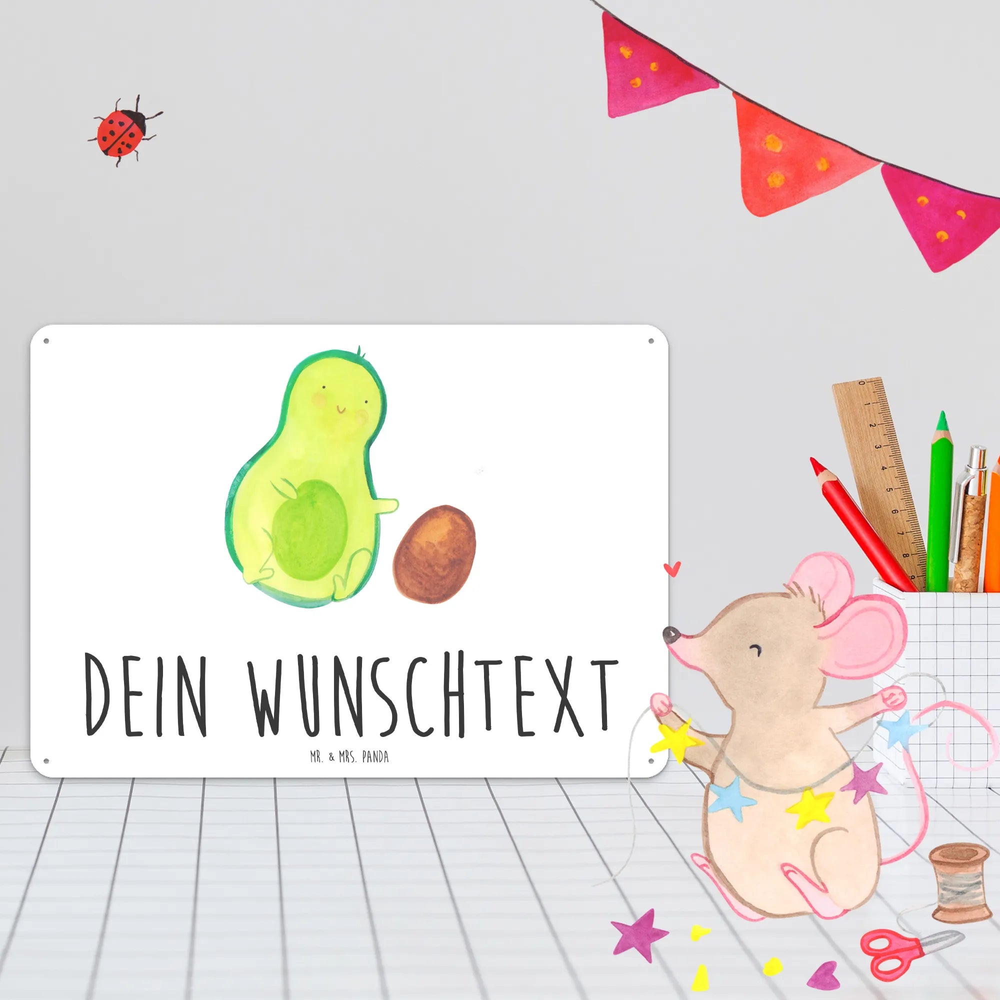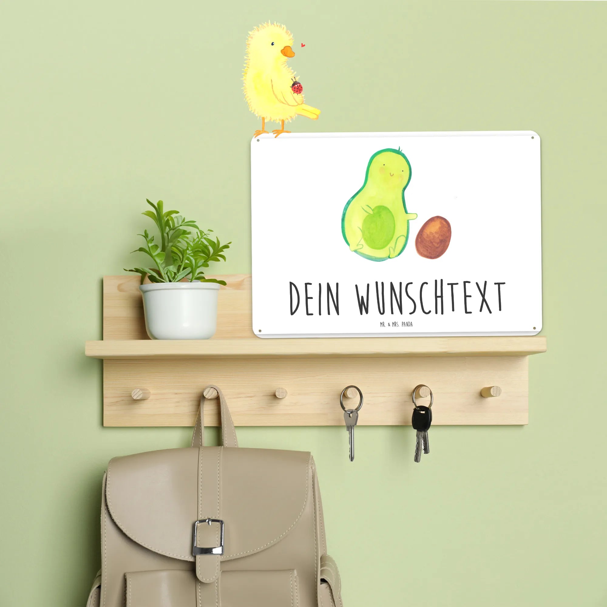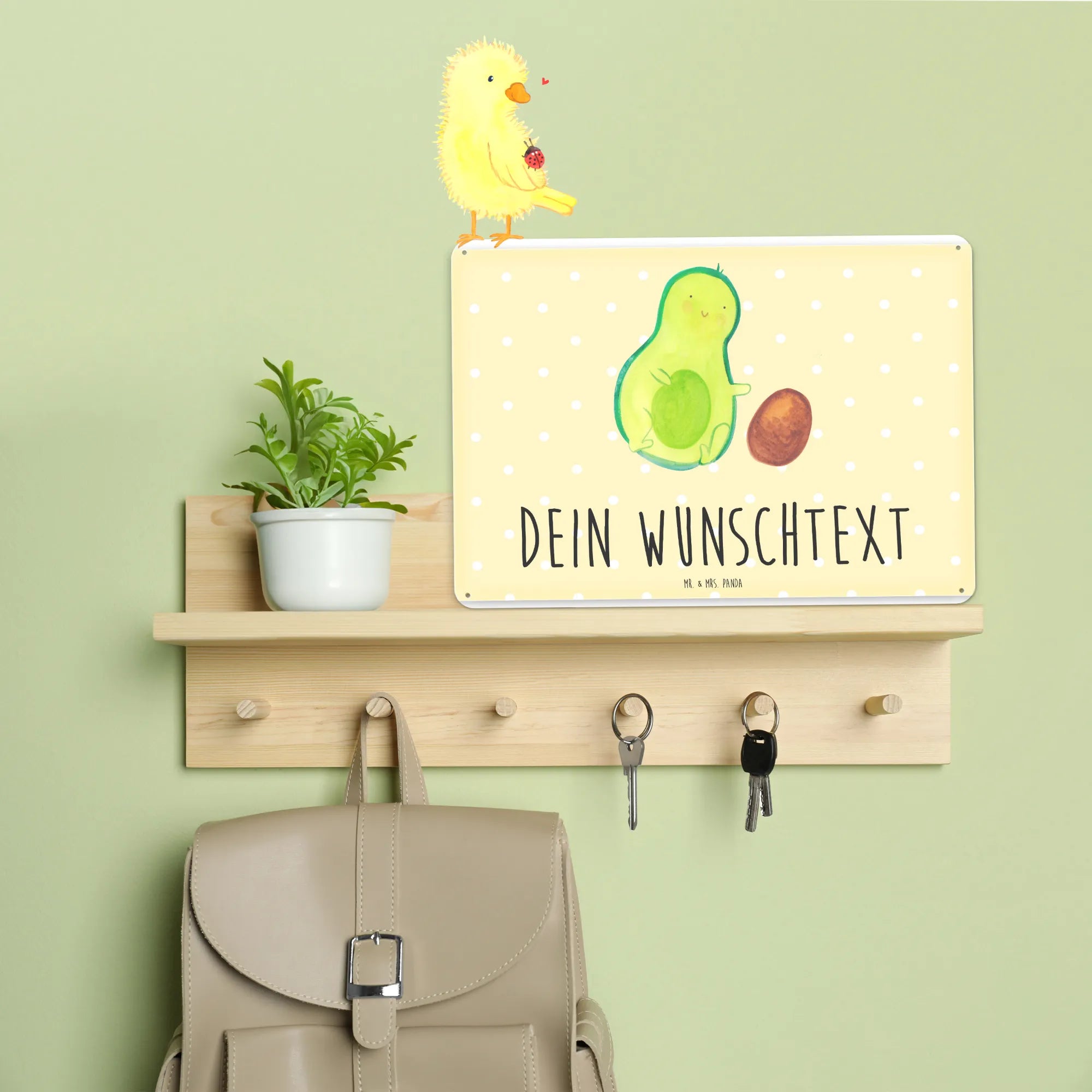 Spersonalizowana tabliczka z blachy Awokado pestka toczy się - DIN A6 - Pastelowy żółty