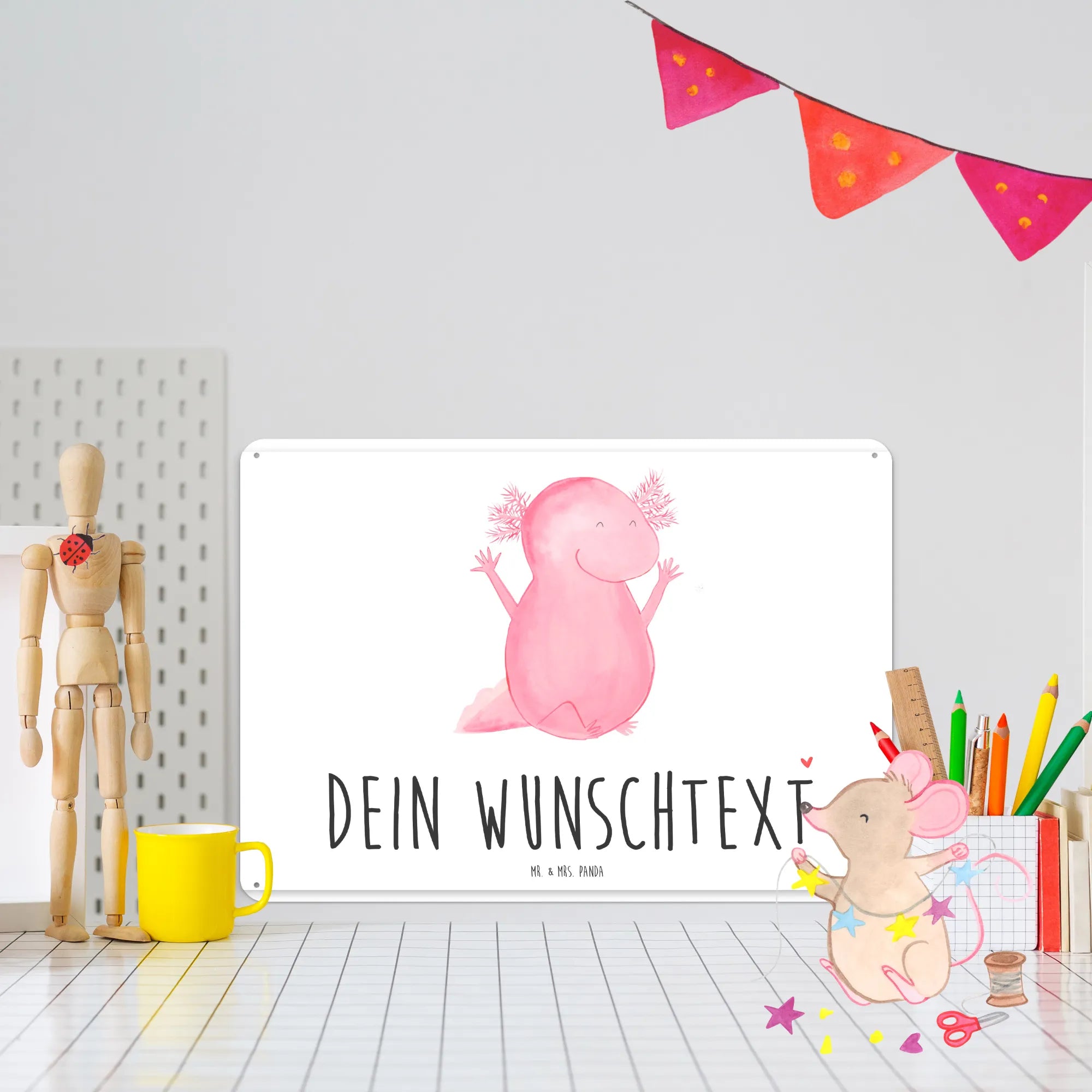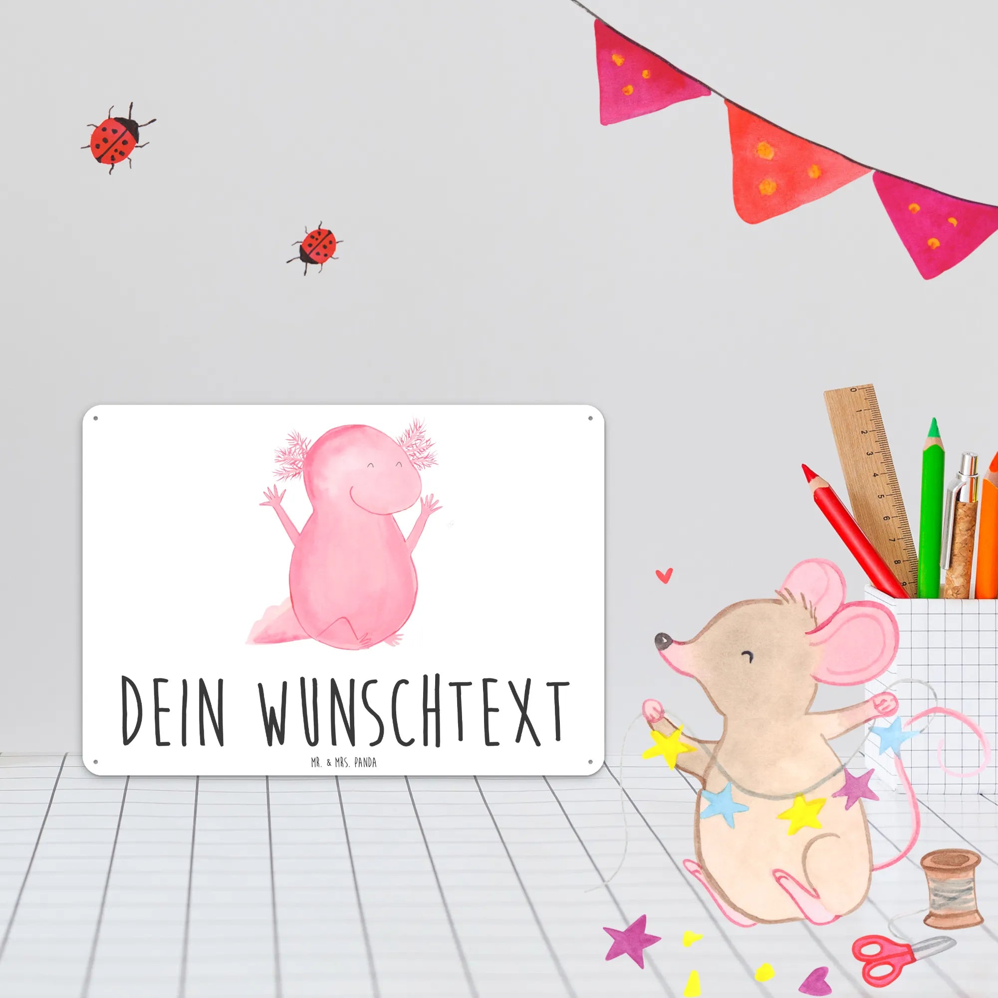 Spersonalizowana tabliczka z blachy Axolotl Hurra - DIN A6 - Pastelowy szary