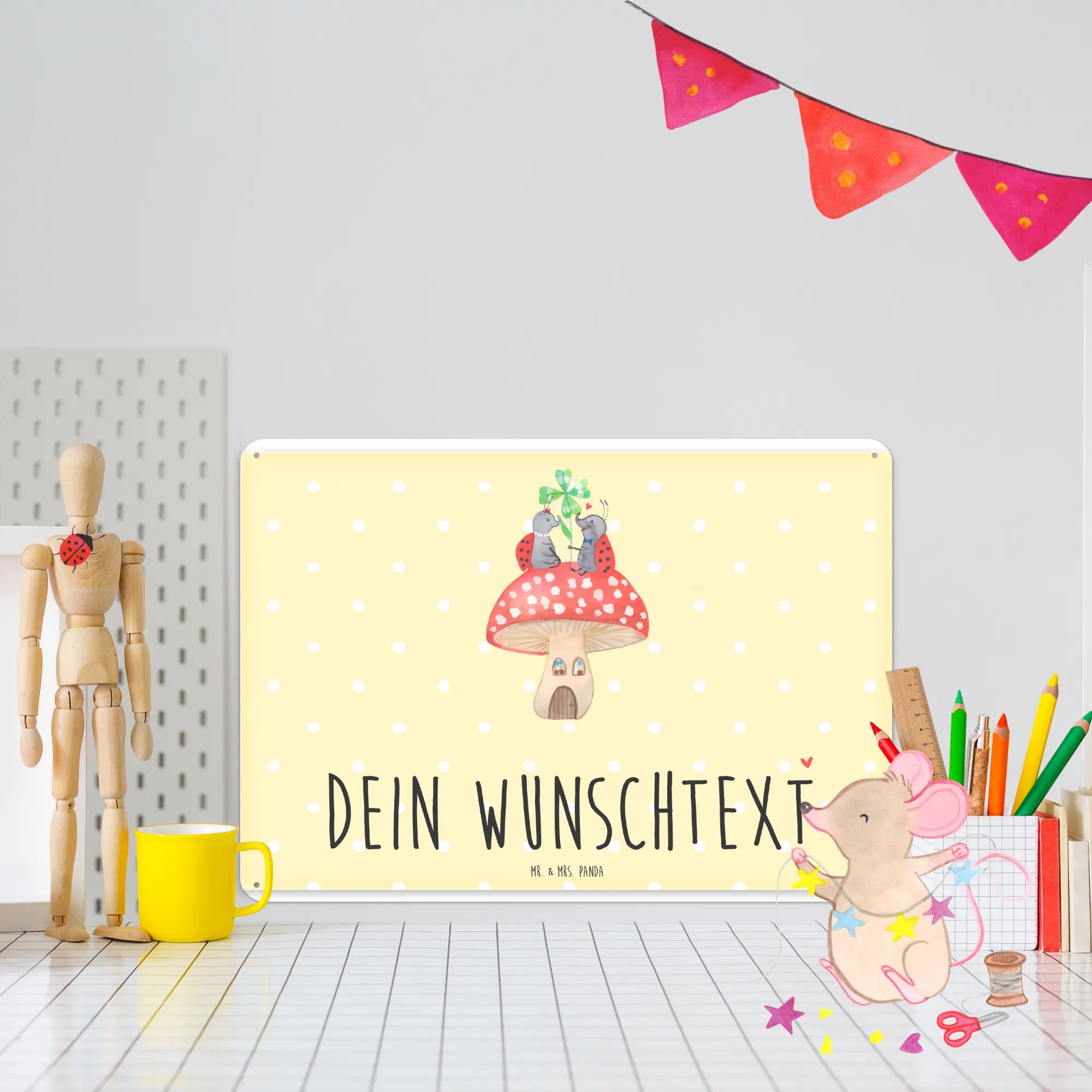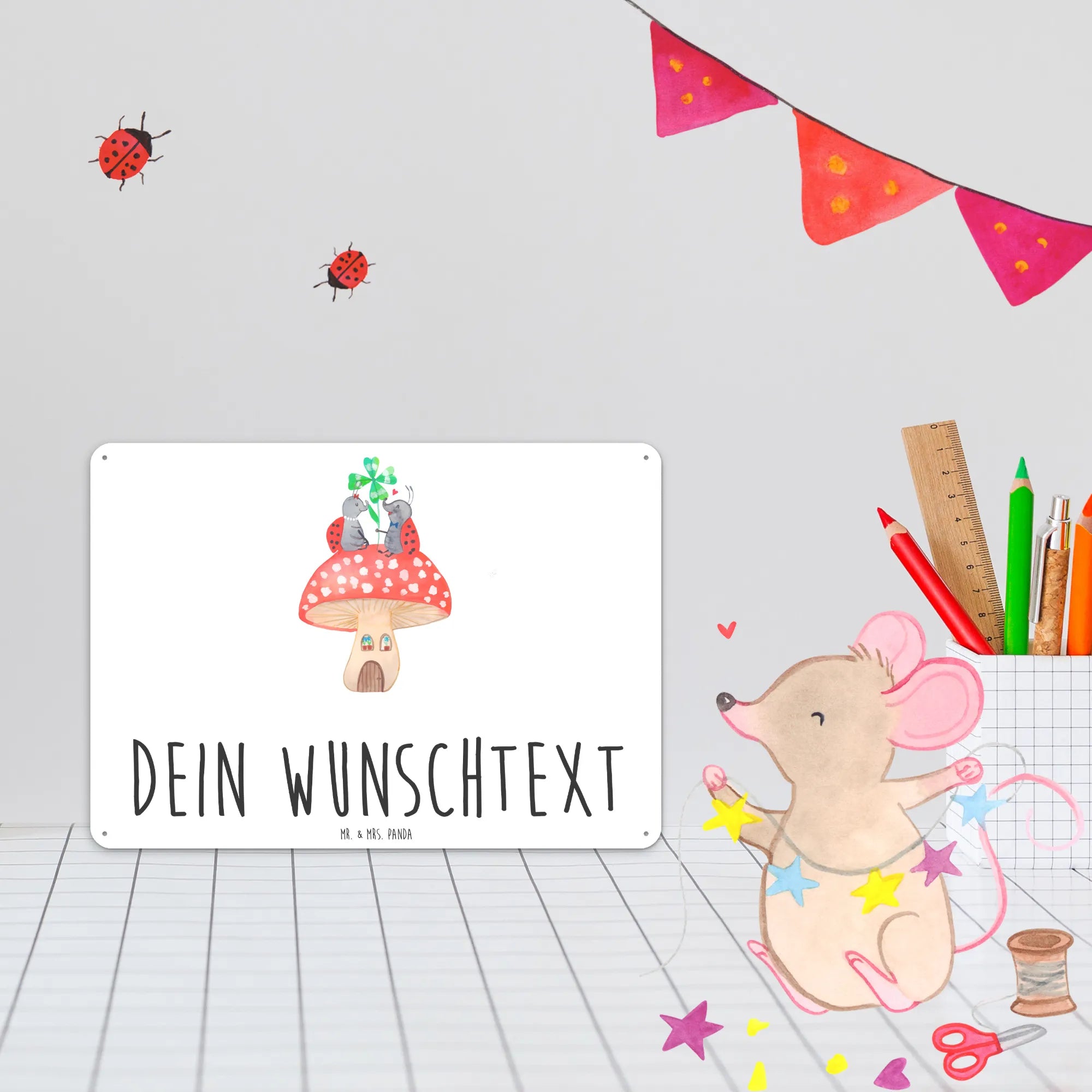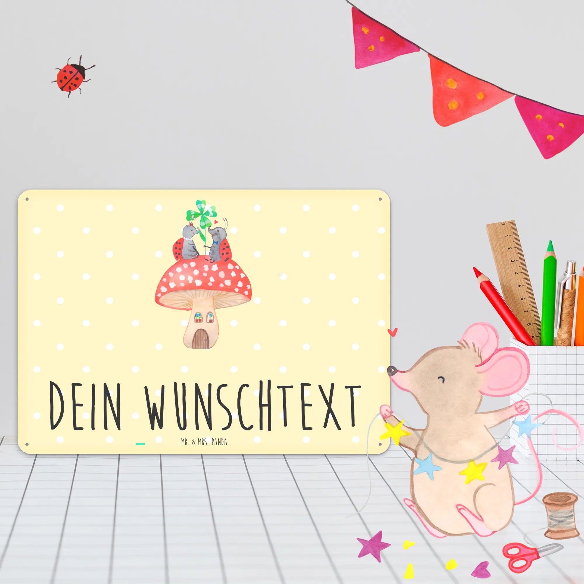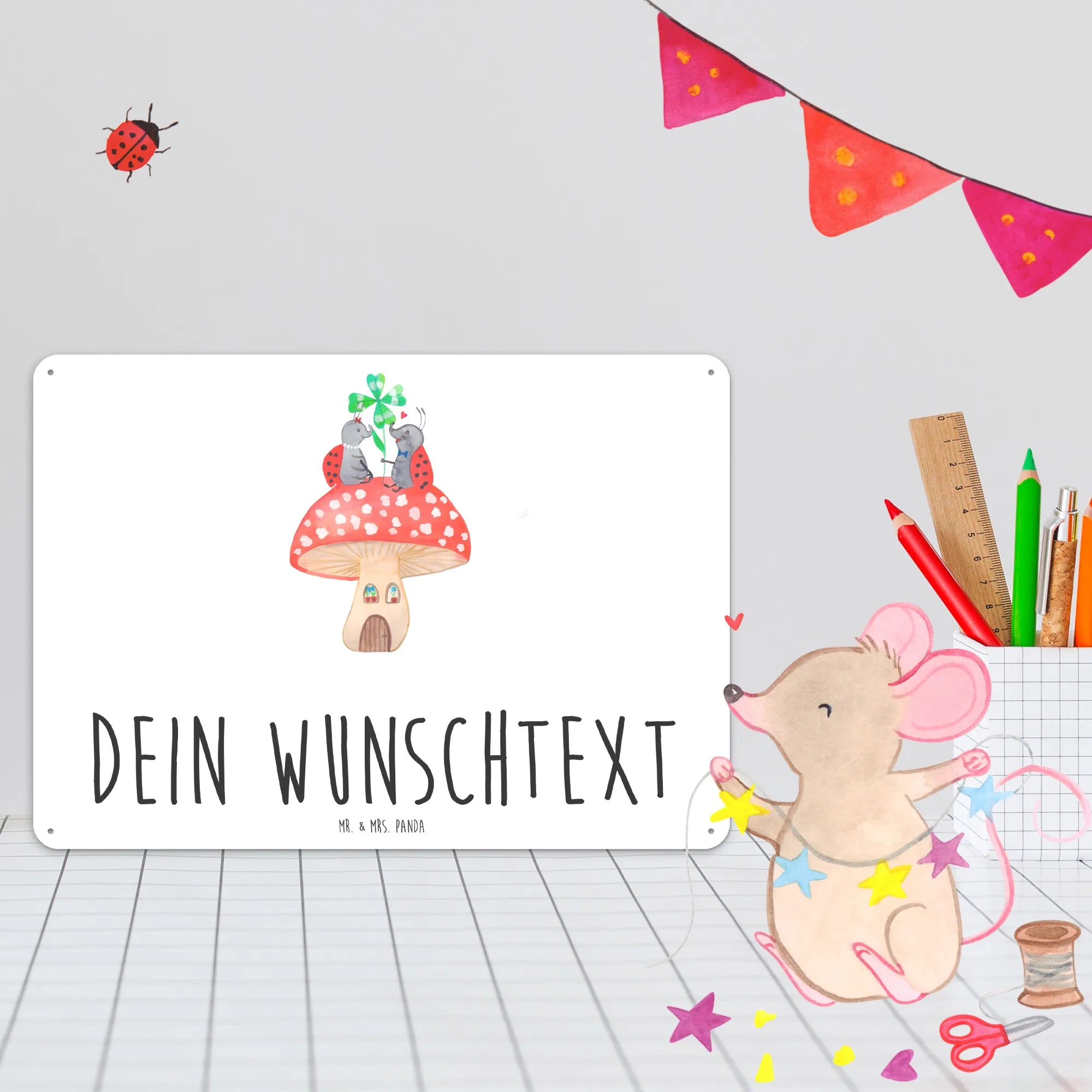 Spersonalizowana tabliczka z blachy biedronka Muchomor - DIN A6 - biały