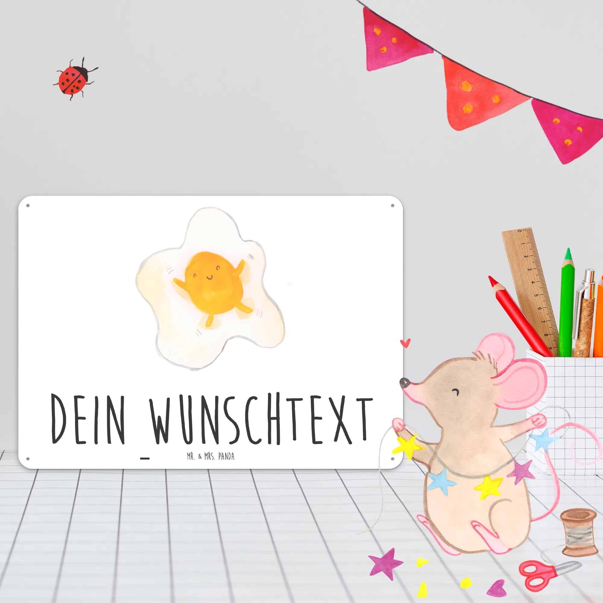 Spersonalizowana tabliczka z blachy jajko sadzone jajko - DIN A6 - biały