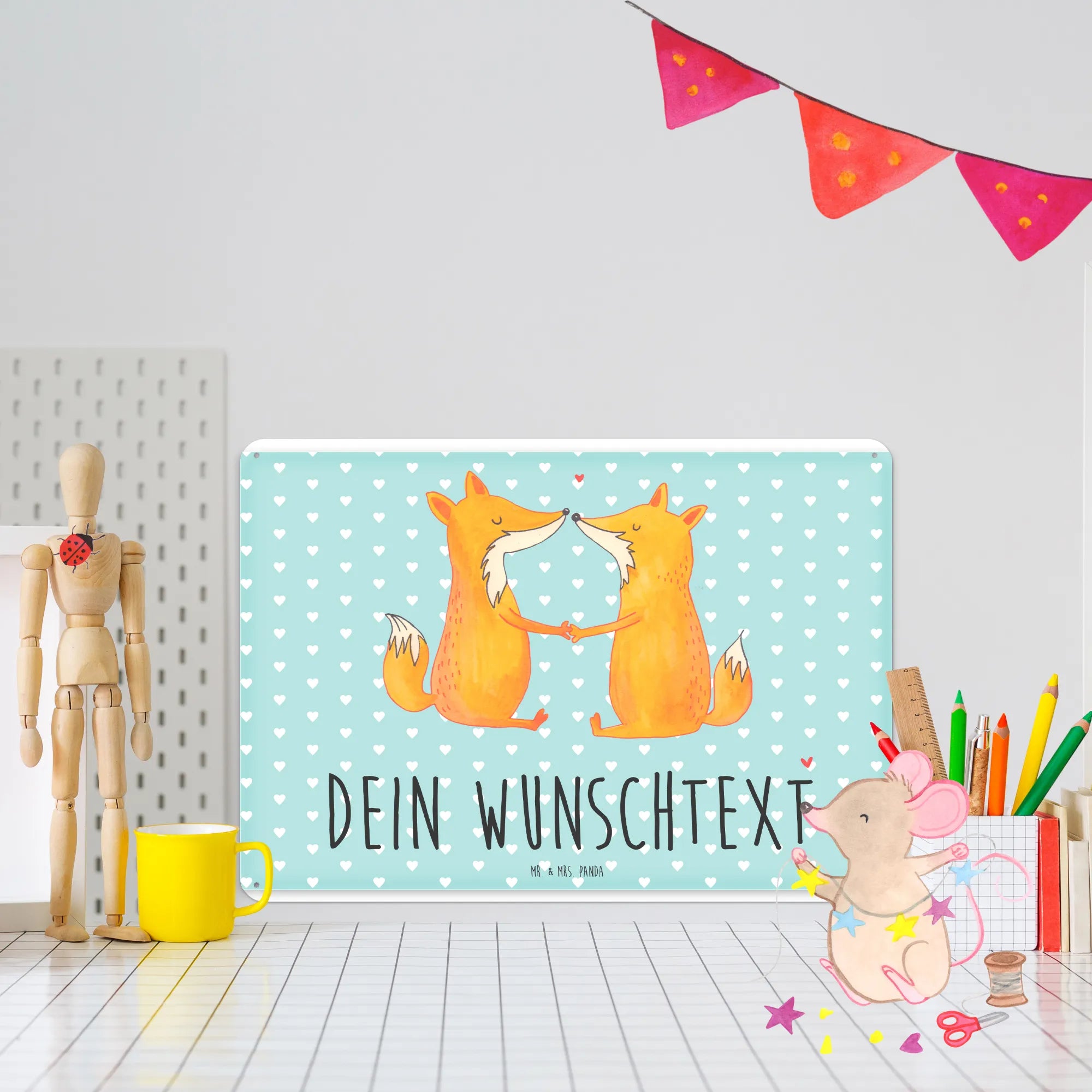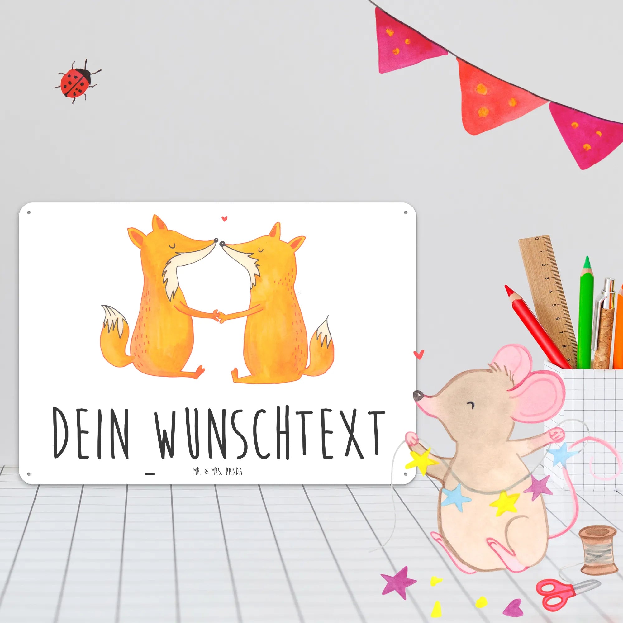 Spersonalizowana tabliczka z blachy lisy miłość - DIN A6 - biały