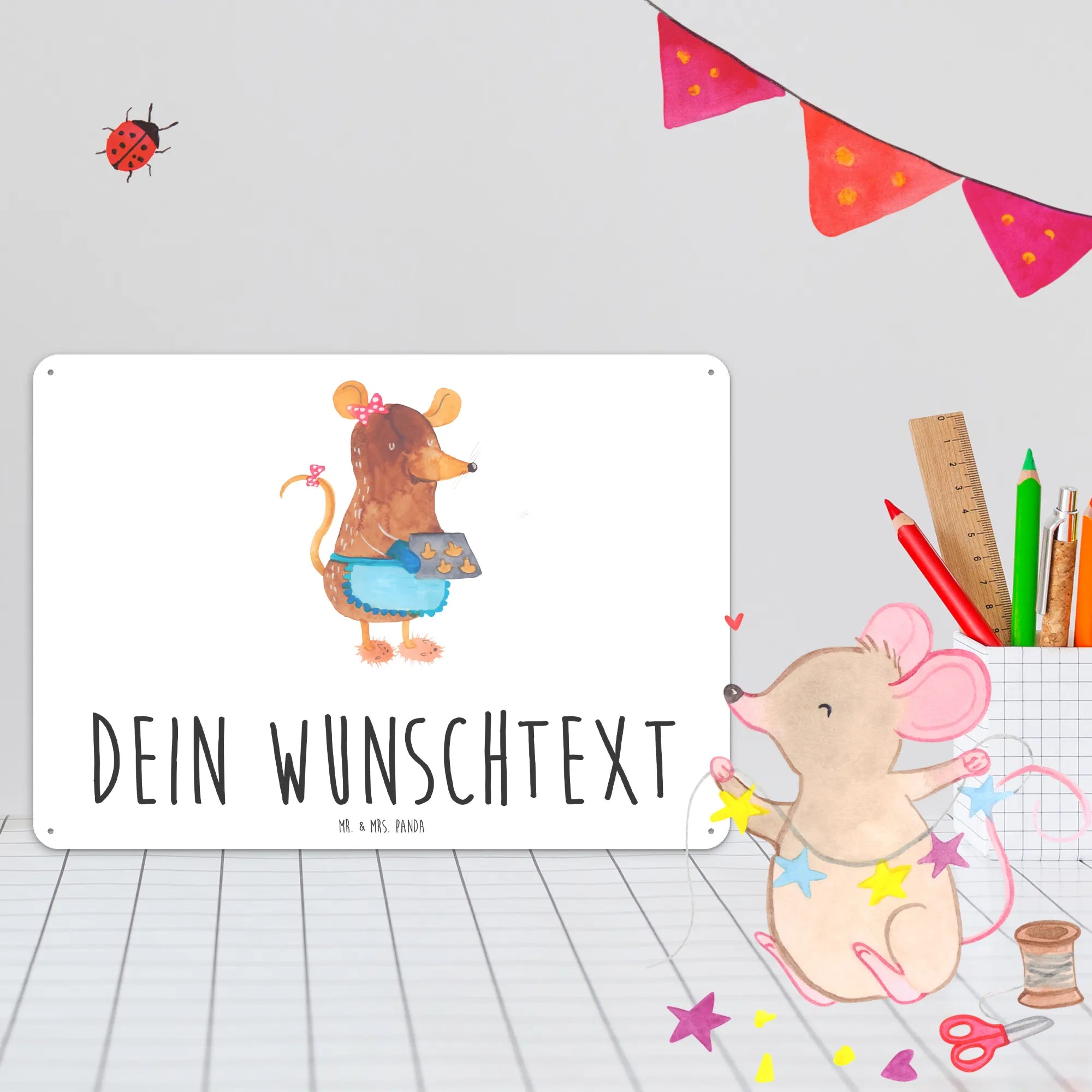 Spersonalizowana tabliczka z blachy Mysz ciastka - DIN A6 - biały