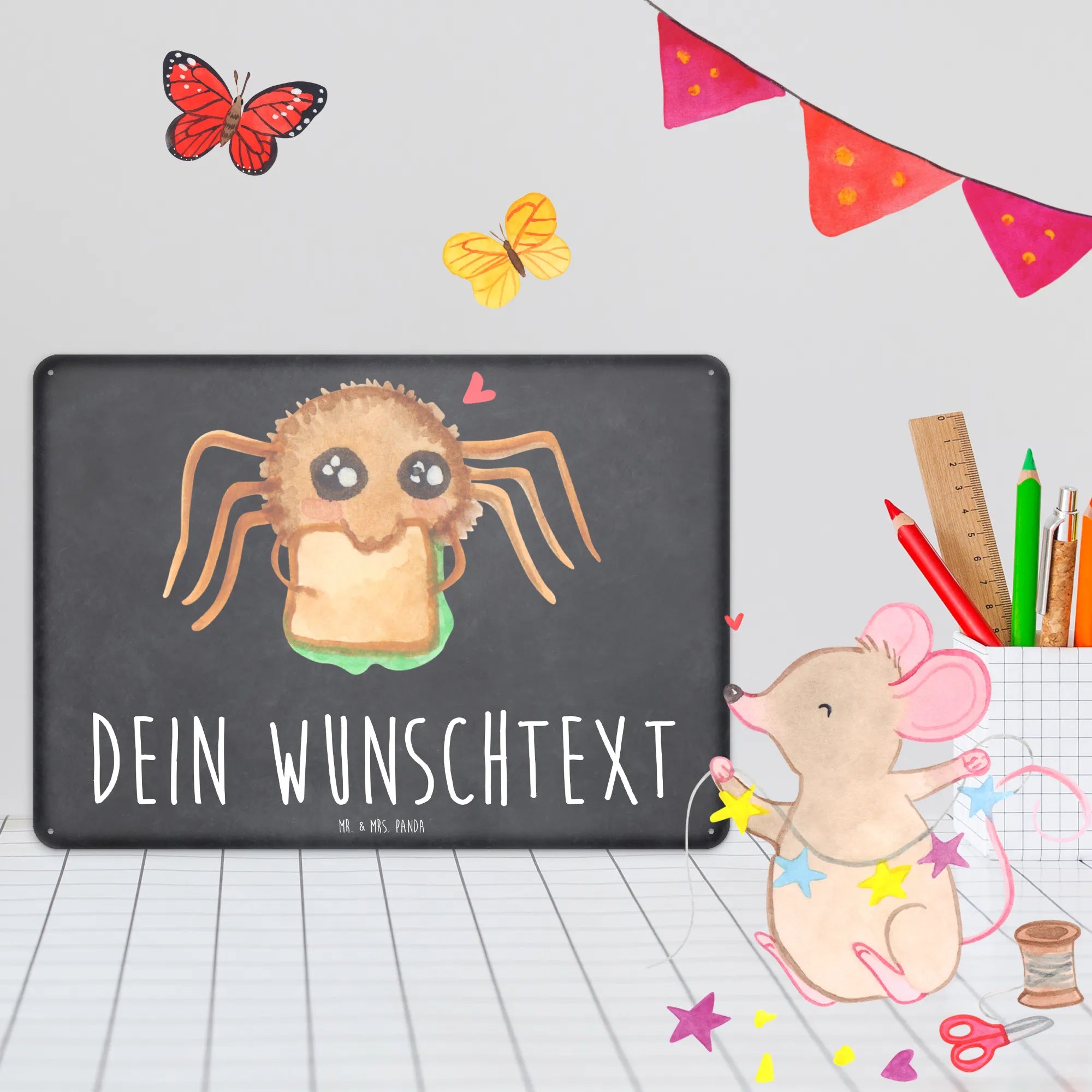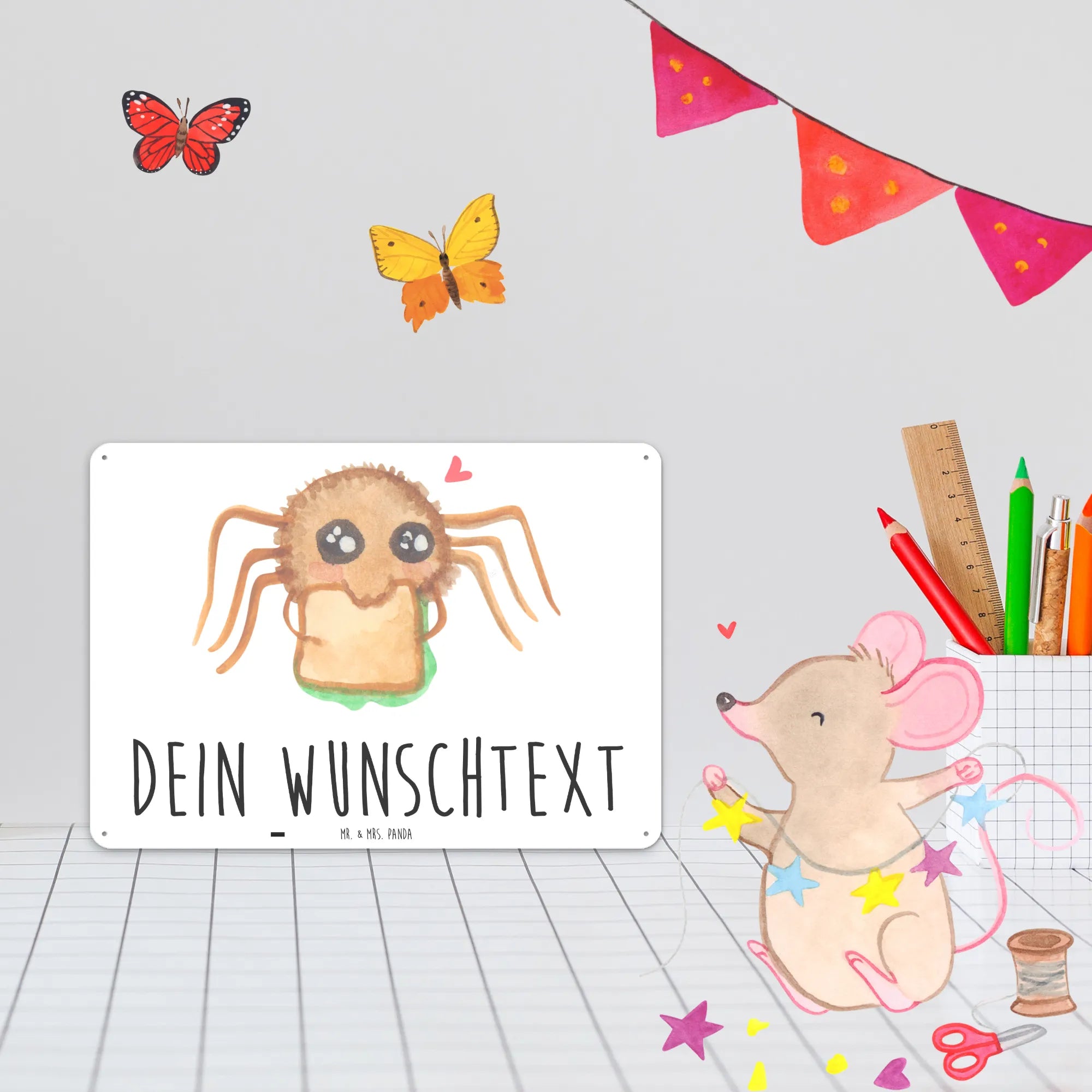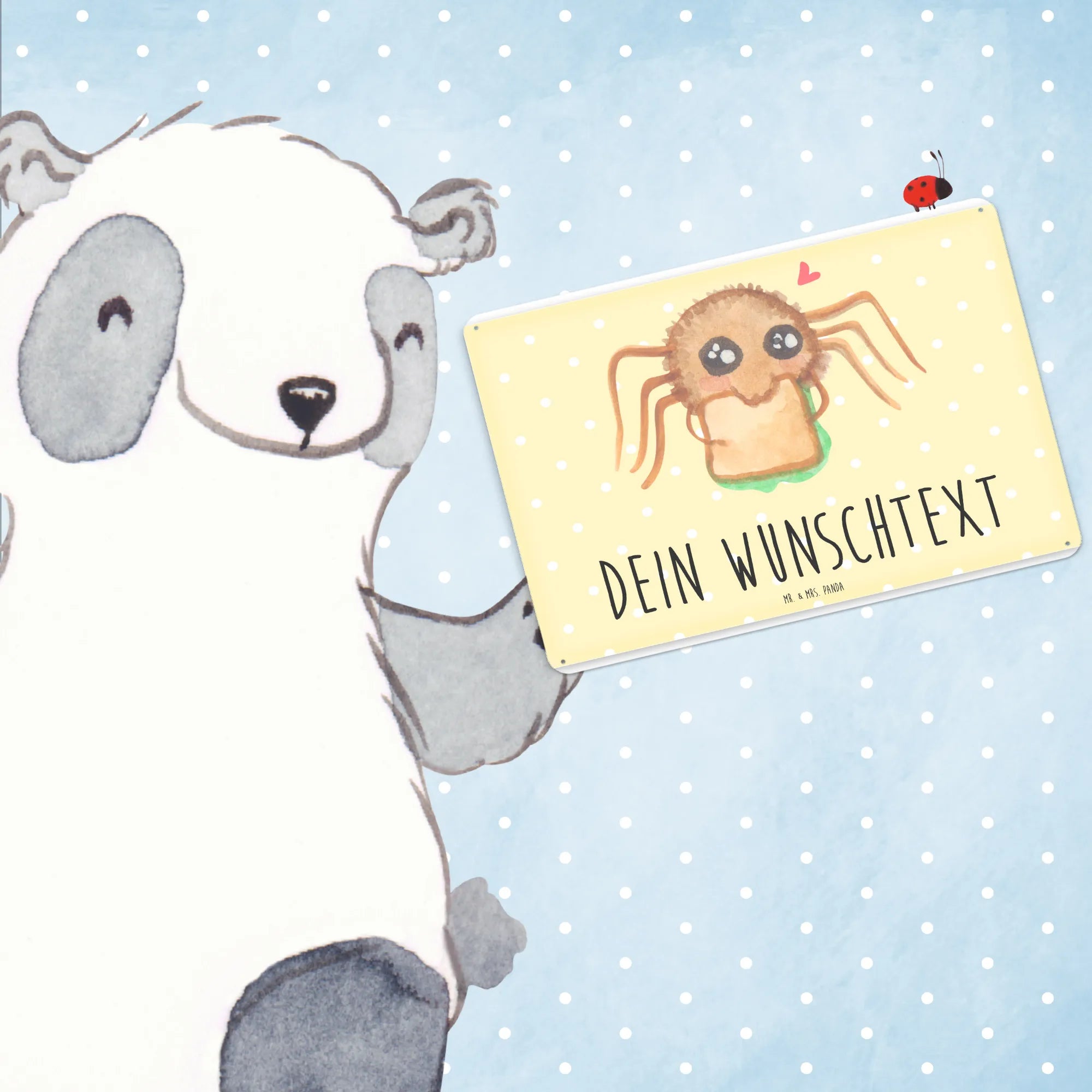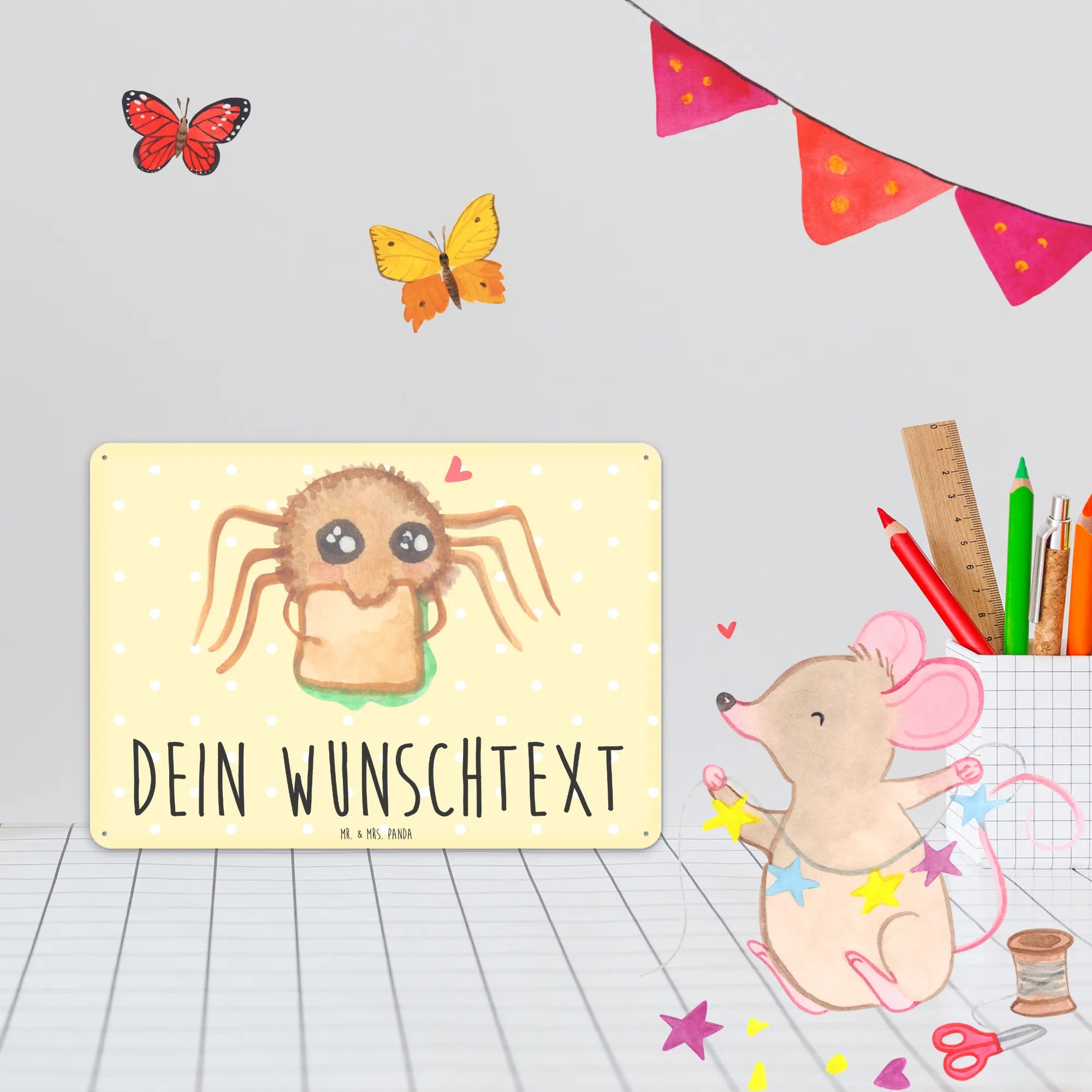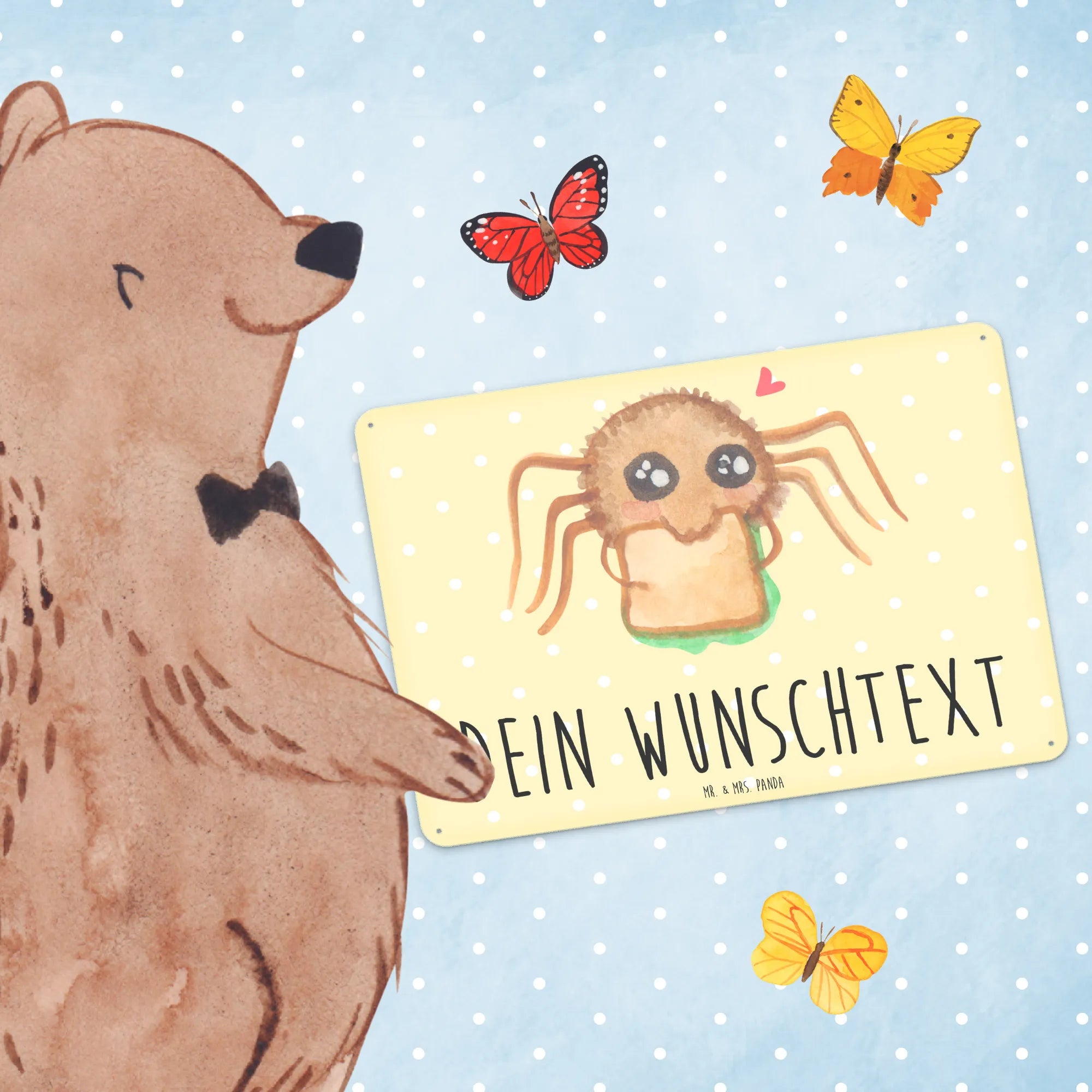 Spersonalizowana tabliczka z blachy Pająk Agata kanapka - DIN A6 - Pastelowy żółty