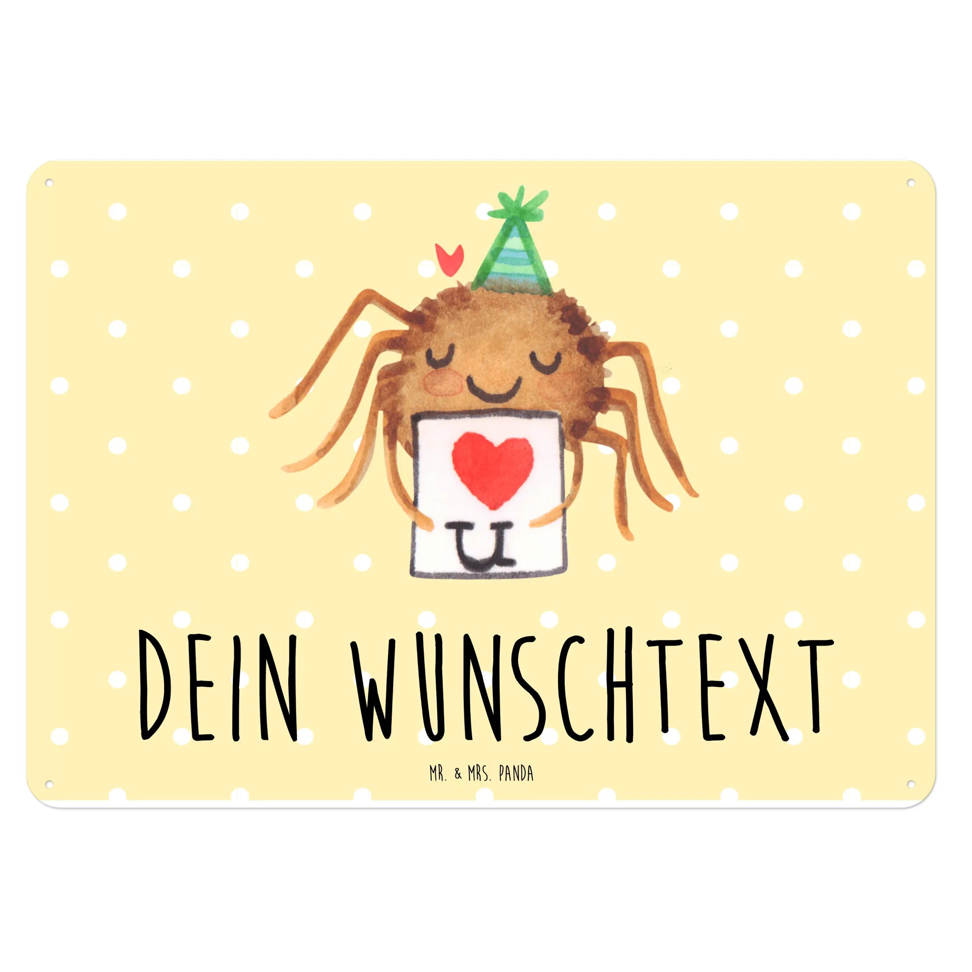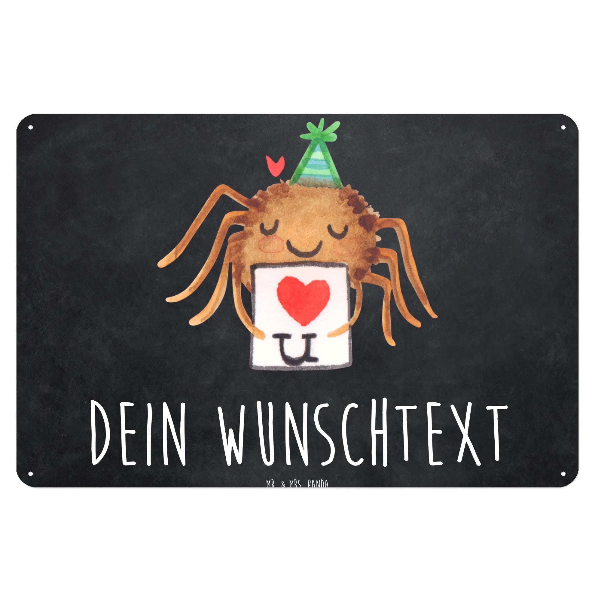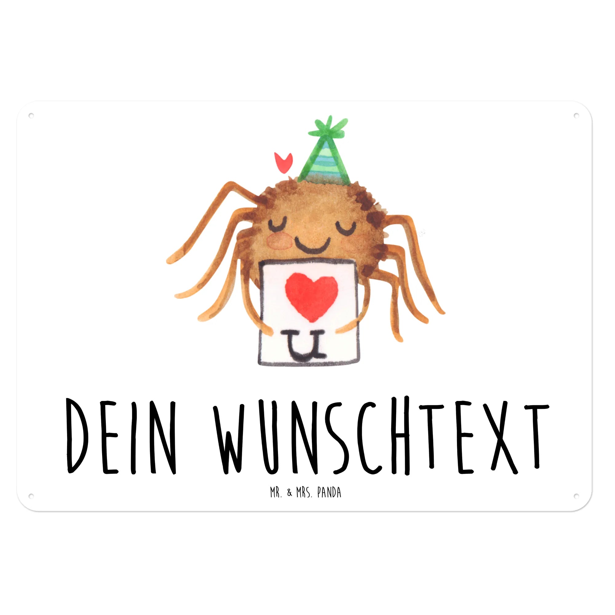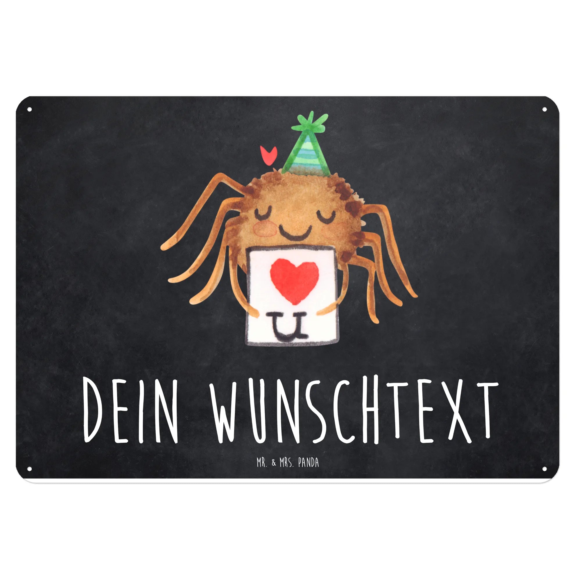 Erlebe ein Stückchen Liebe mit unserem personalisierten Blechschild aus der bezaubernden Spinne Agathe Kollektion von Mr. & Mrs. Panda! Dieses wunderbar gestaltete Schild zeigt die niedliche Spinne Agathe, die einen süßen Brief in ihren Ärmchen hält, verziert mit einem kleinen Herzchen – ein wahrer Liebesbeweis!