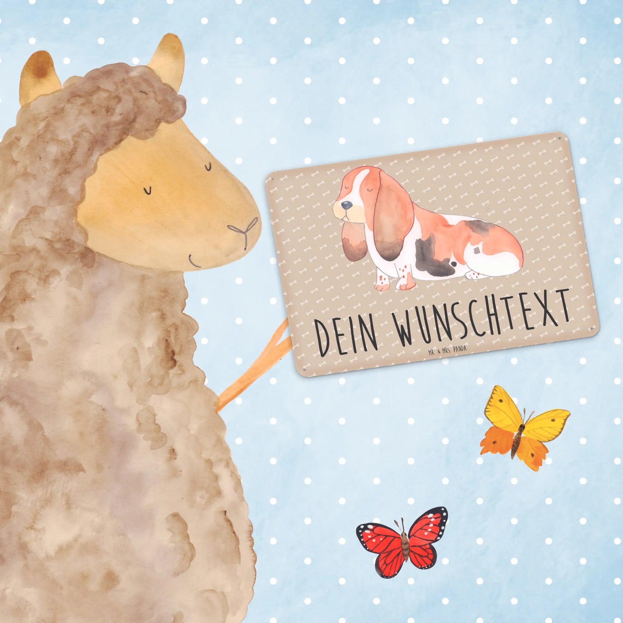 Spersonalizowana tabliczka z blachy pies Basset Hound - DIN A6 - biały