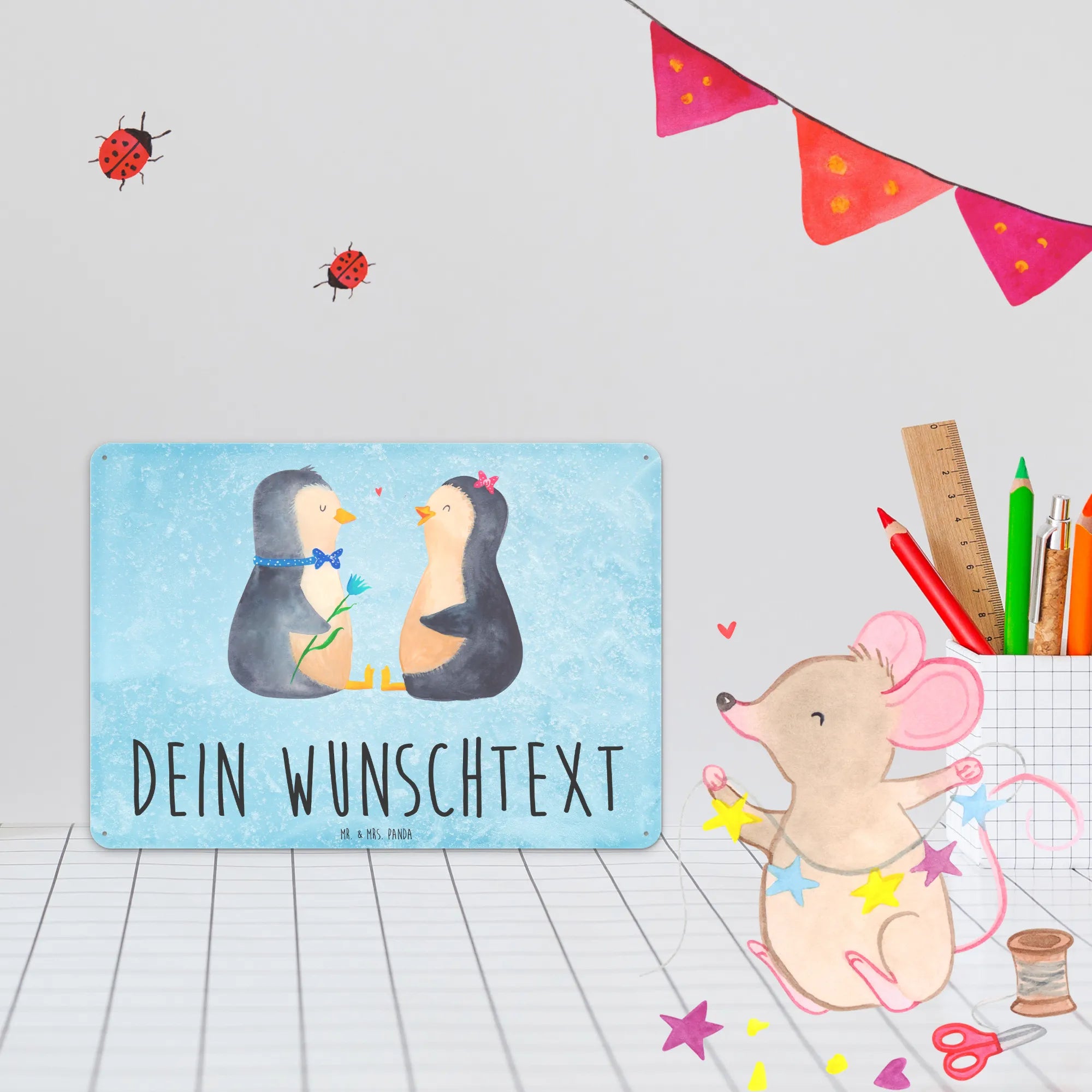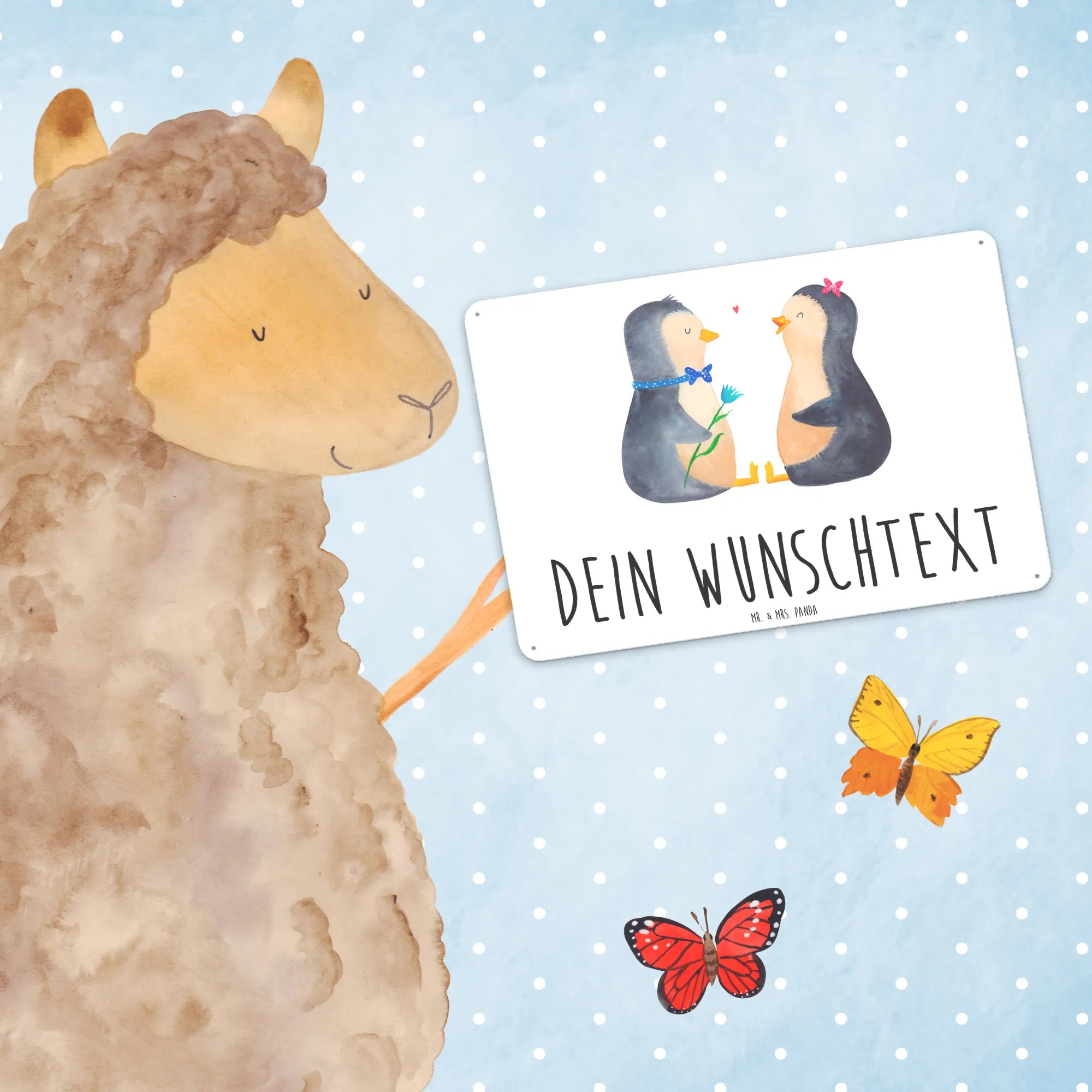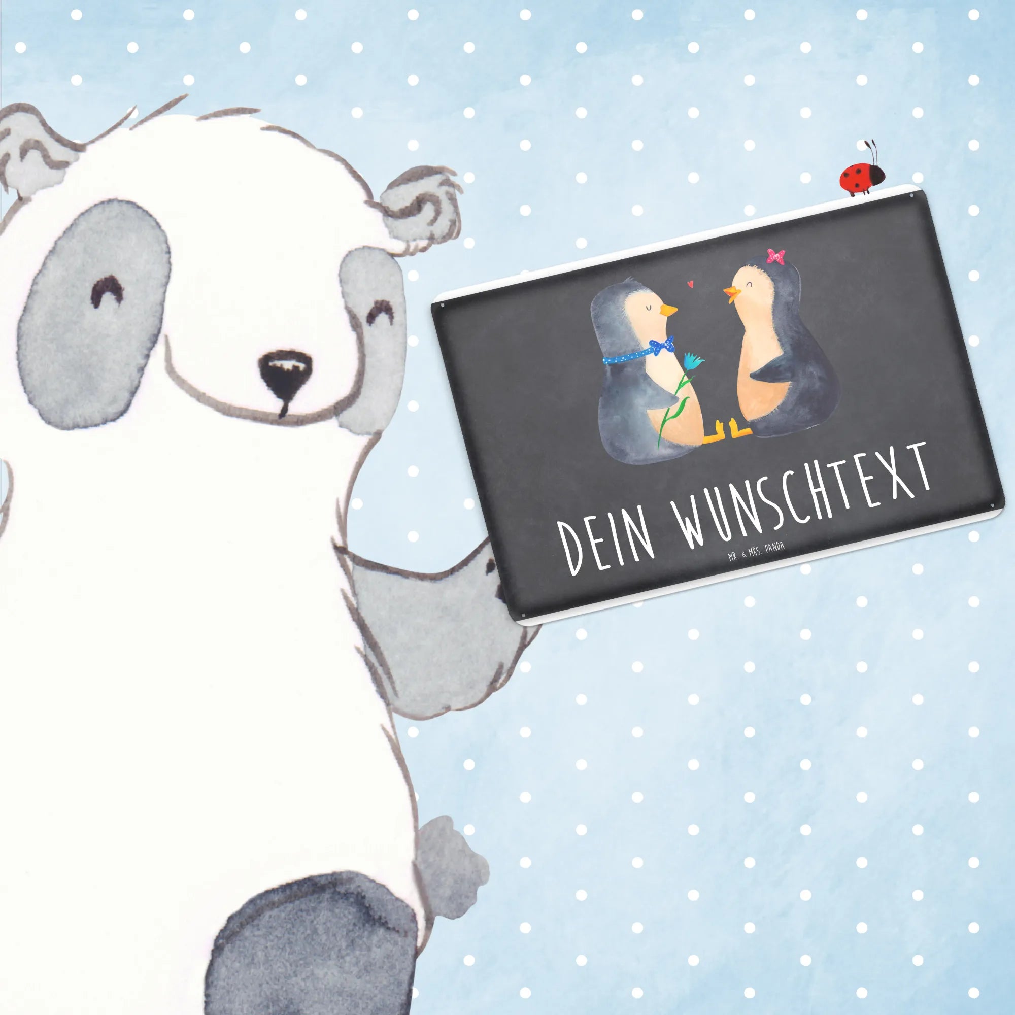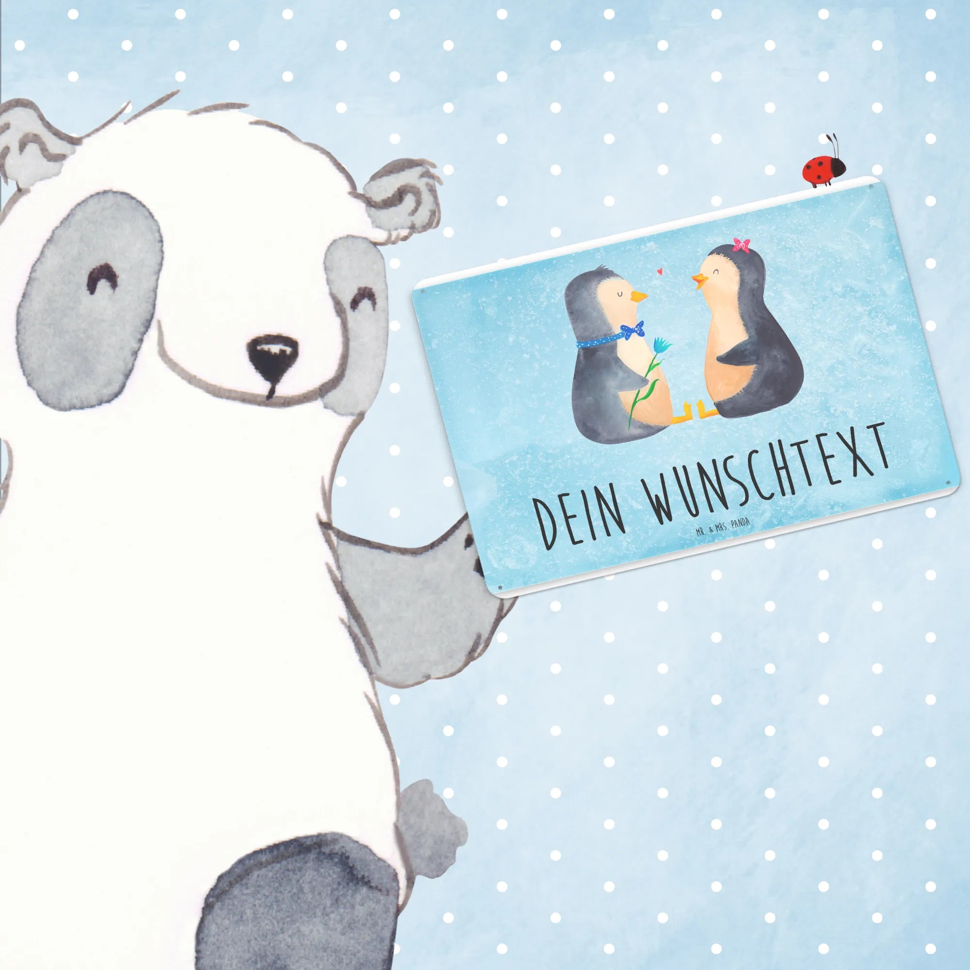 Spersonalizowana tabliczka z blachy Pingwin para - DIN A6 - biały