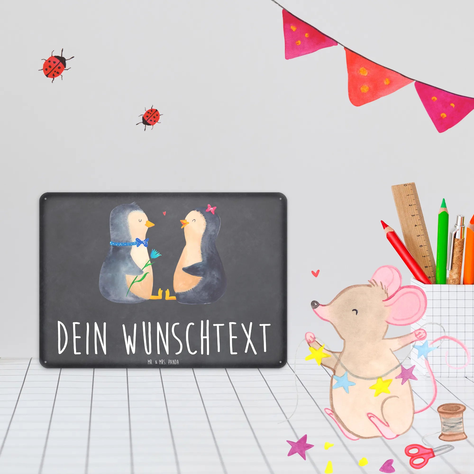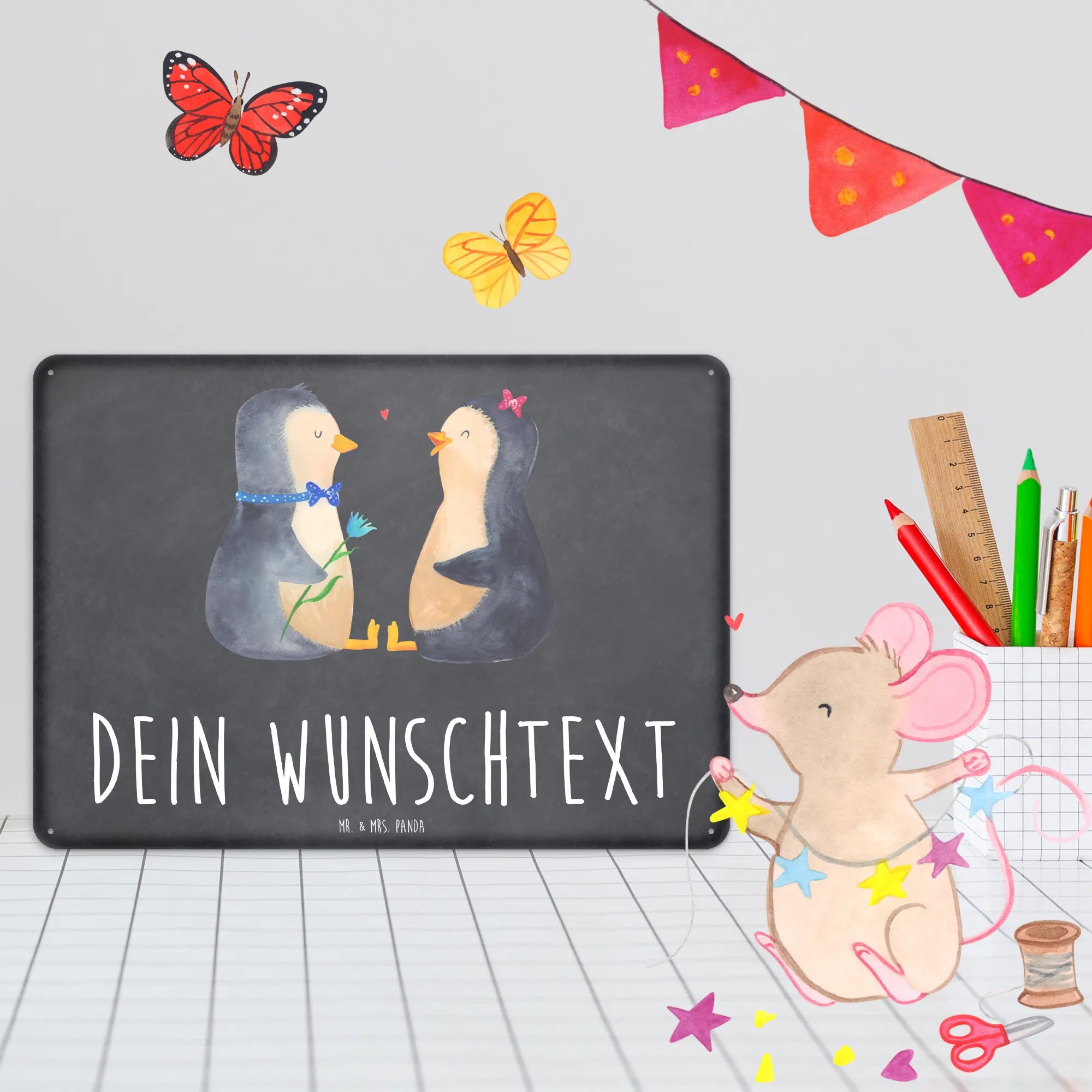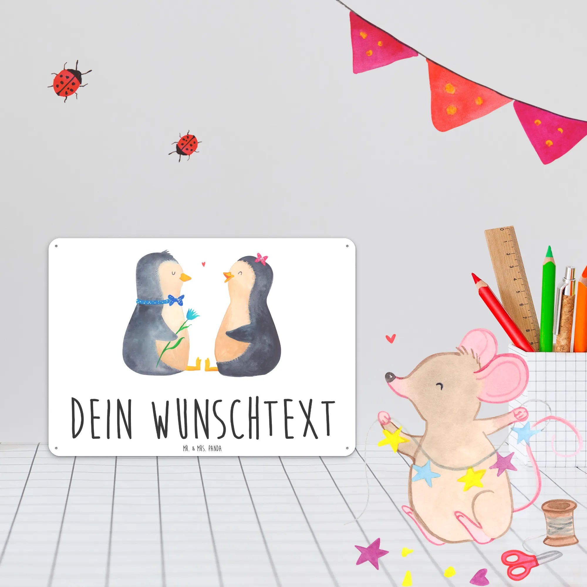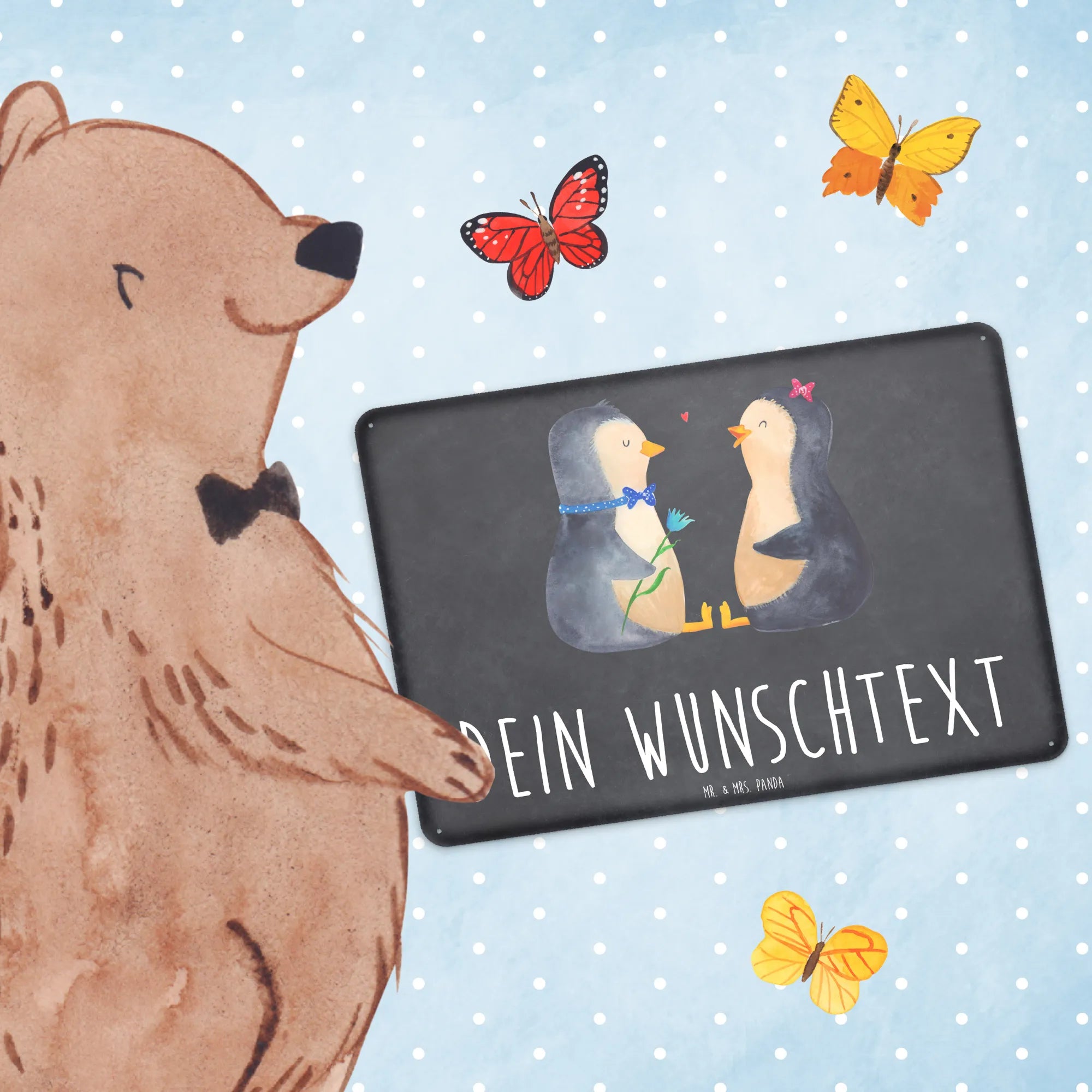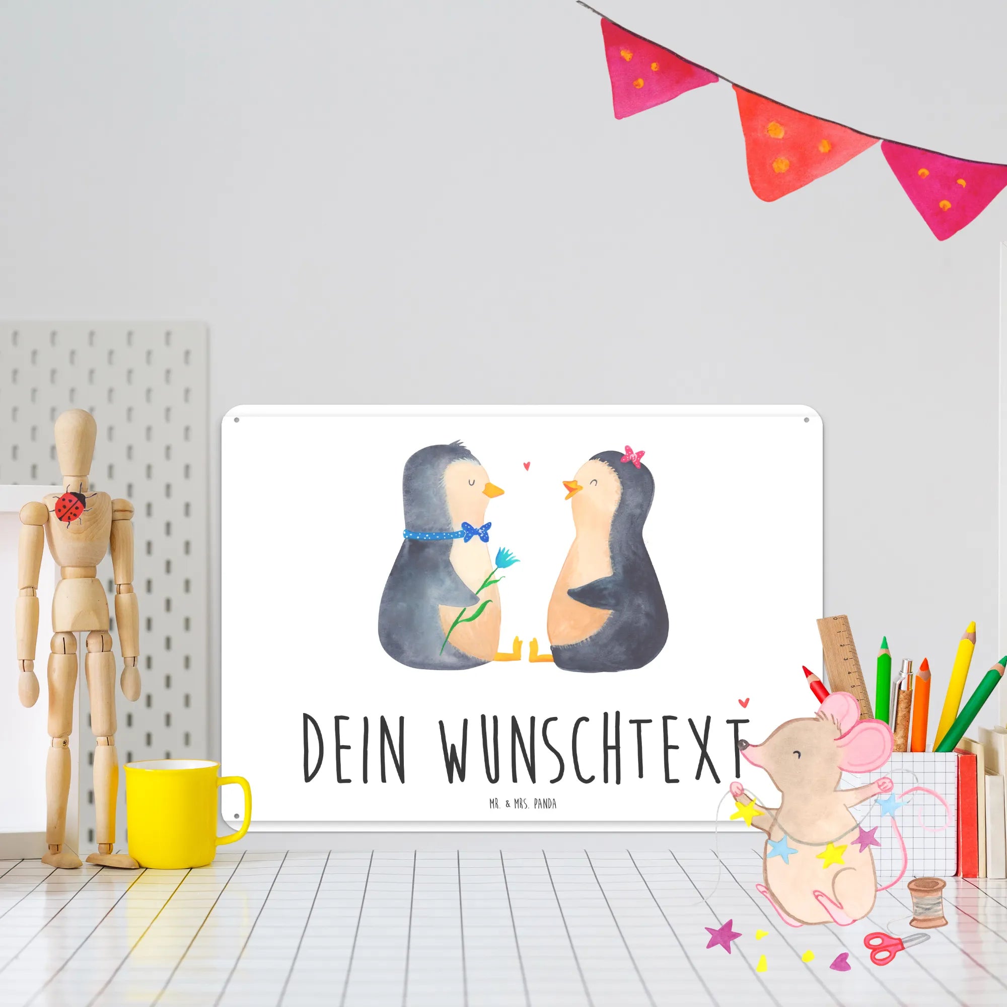 Spersonalizowana tabliczka z blachy Pingwin para - DIN A6 - biały