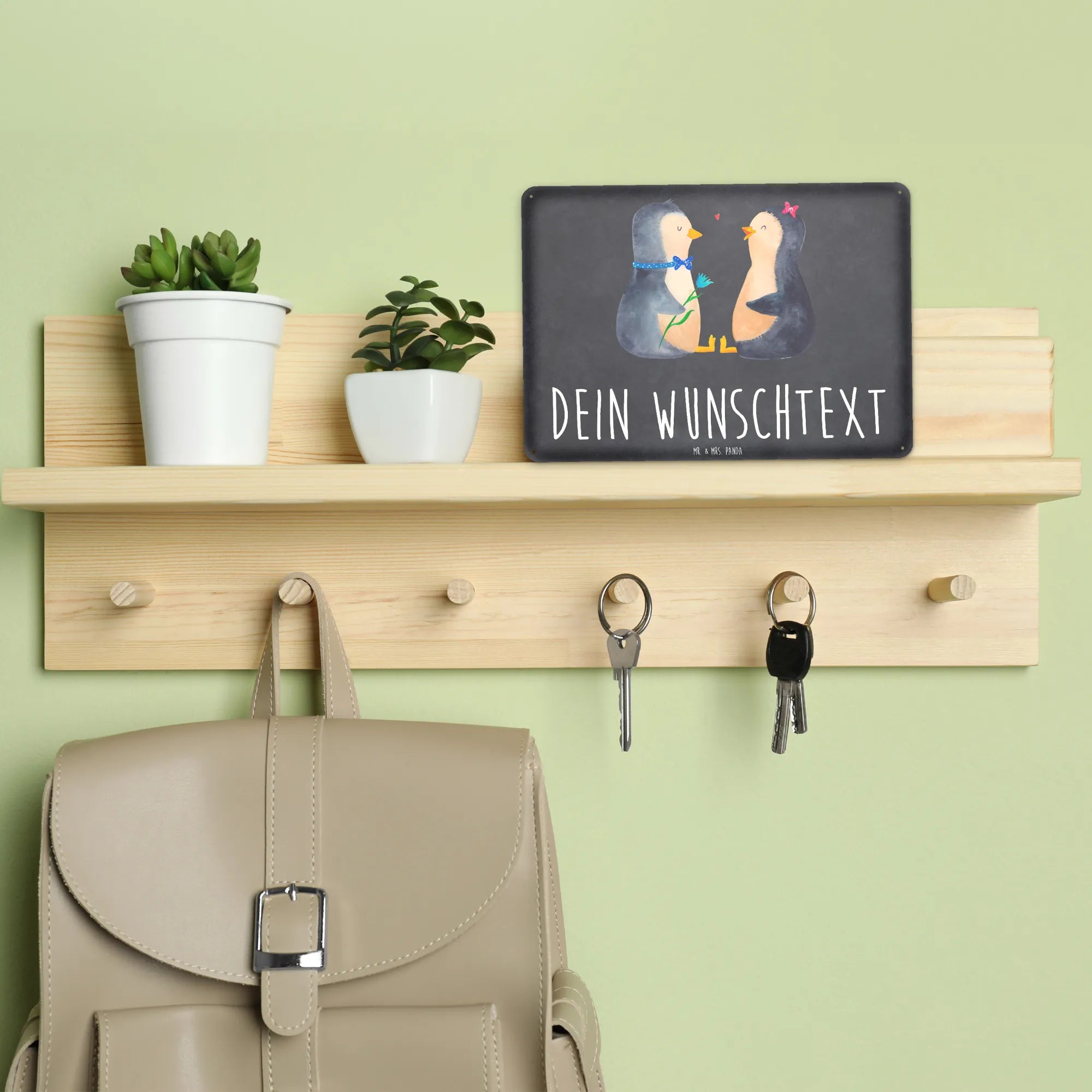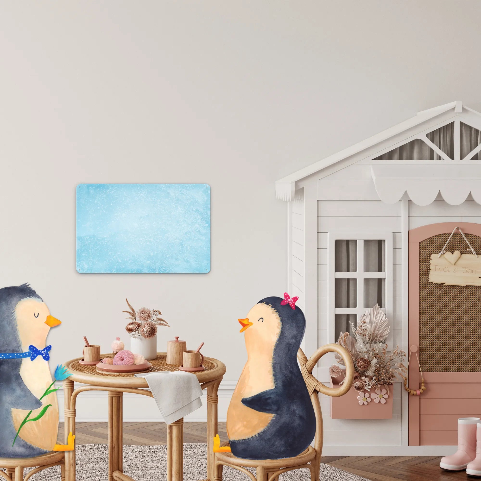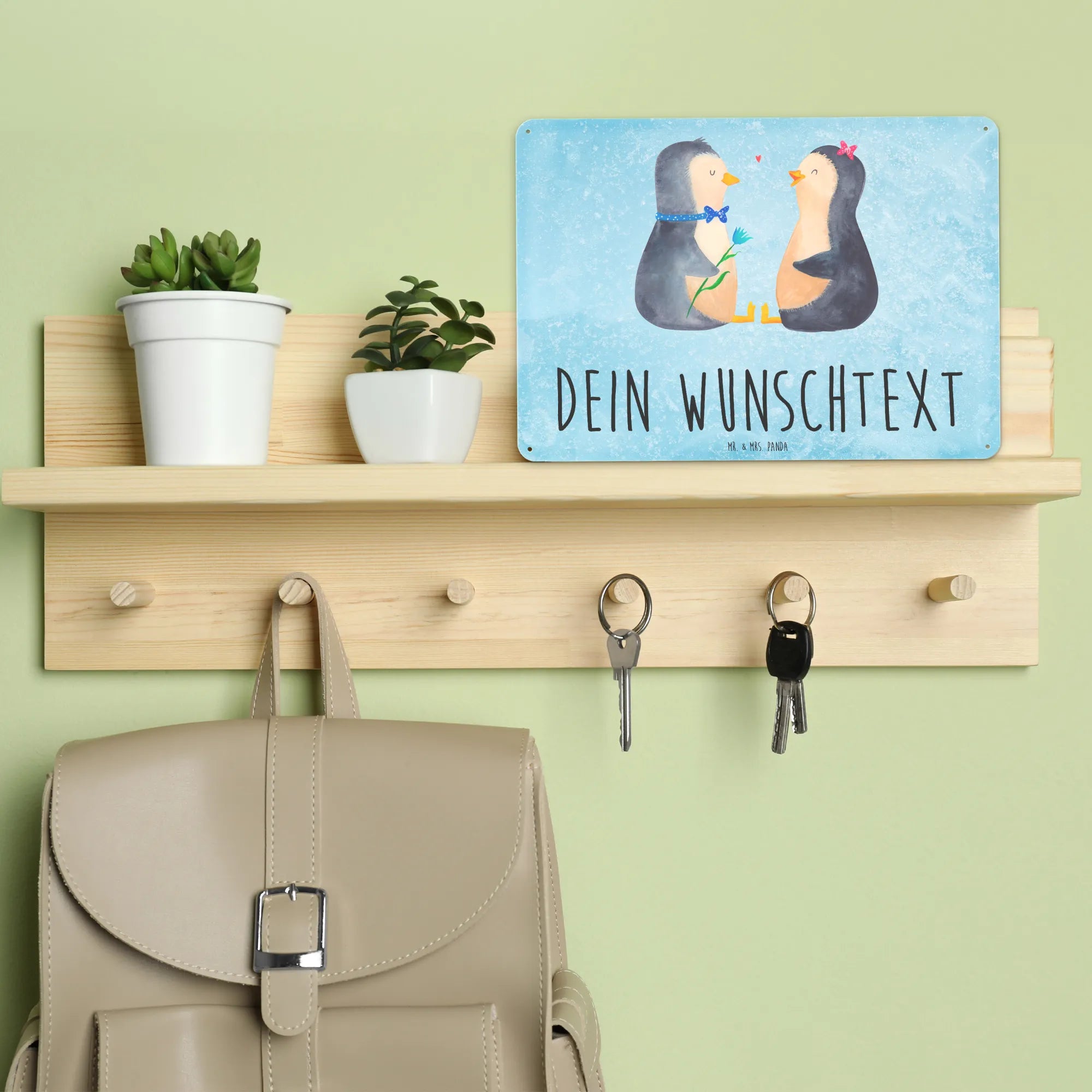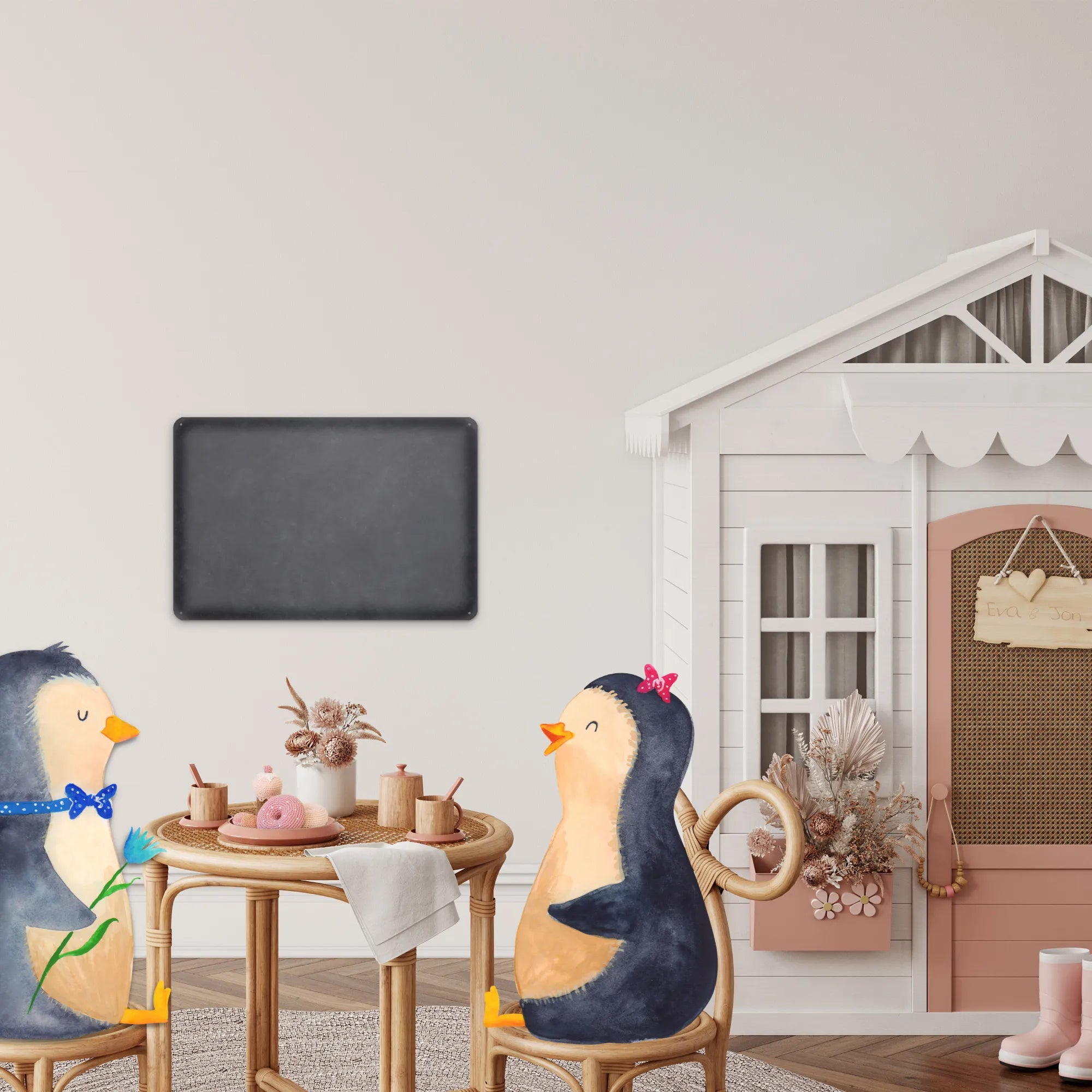 Spersonalizowana tabliczka z blachy Pingwin para - DIN A6 - biały