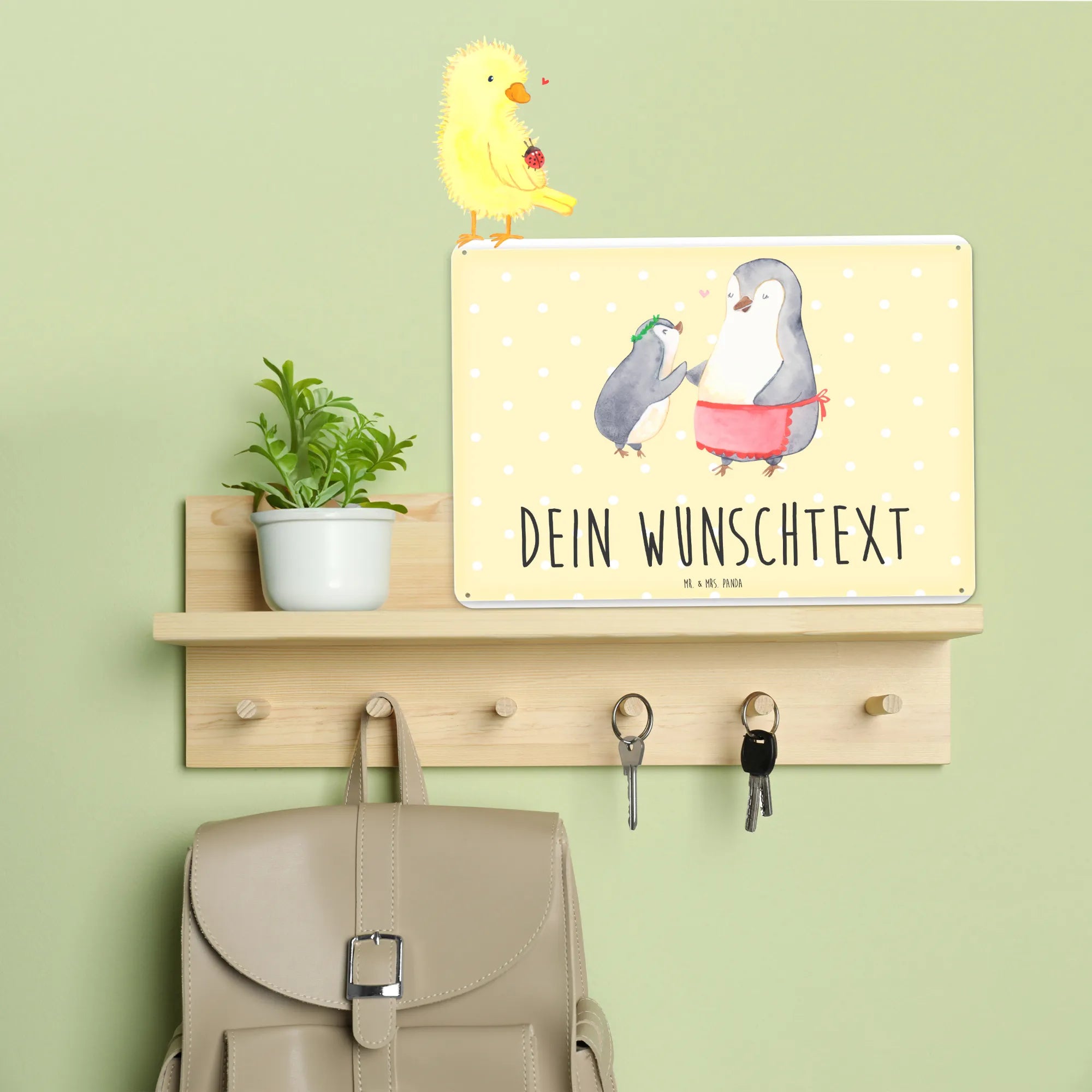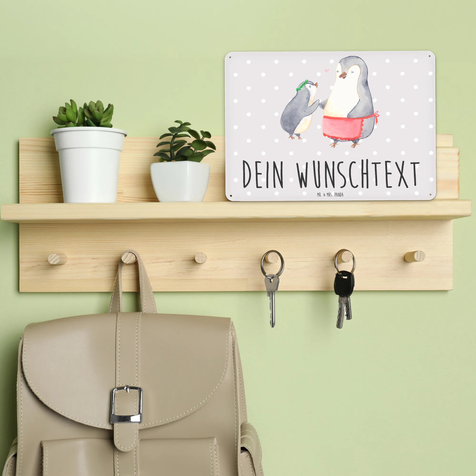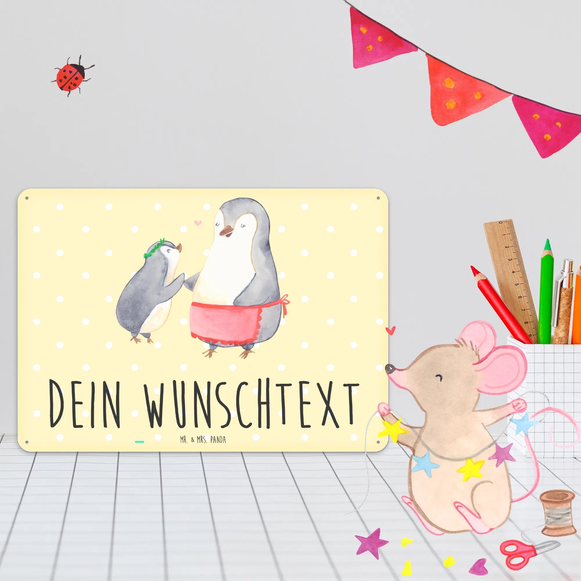 Spersonalizowana tabliczka z blachy Pingwin z dzieckiem - DIN A6 - biały