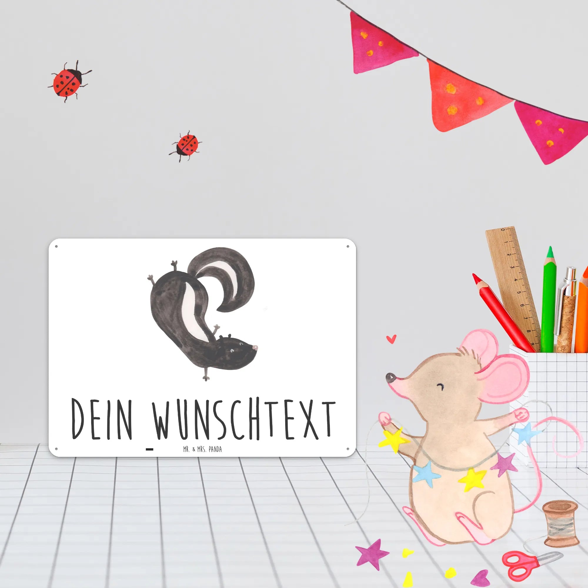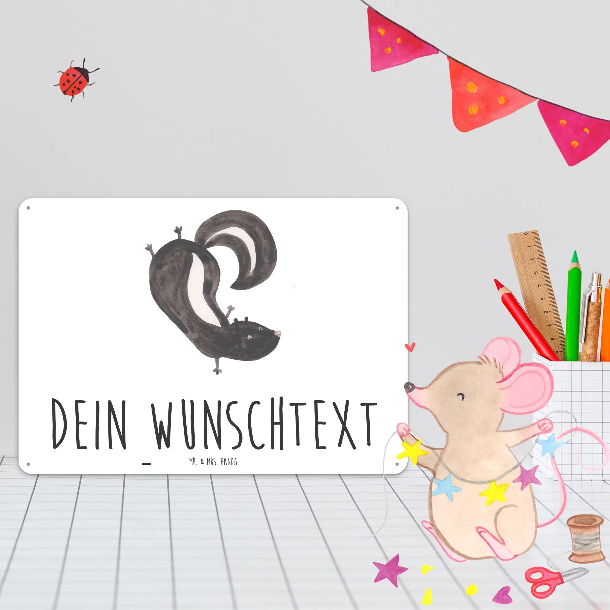 Spersonalizowana tabliczka z blachy skunks stojka - DIN A6 - biały