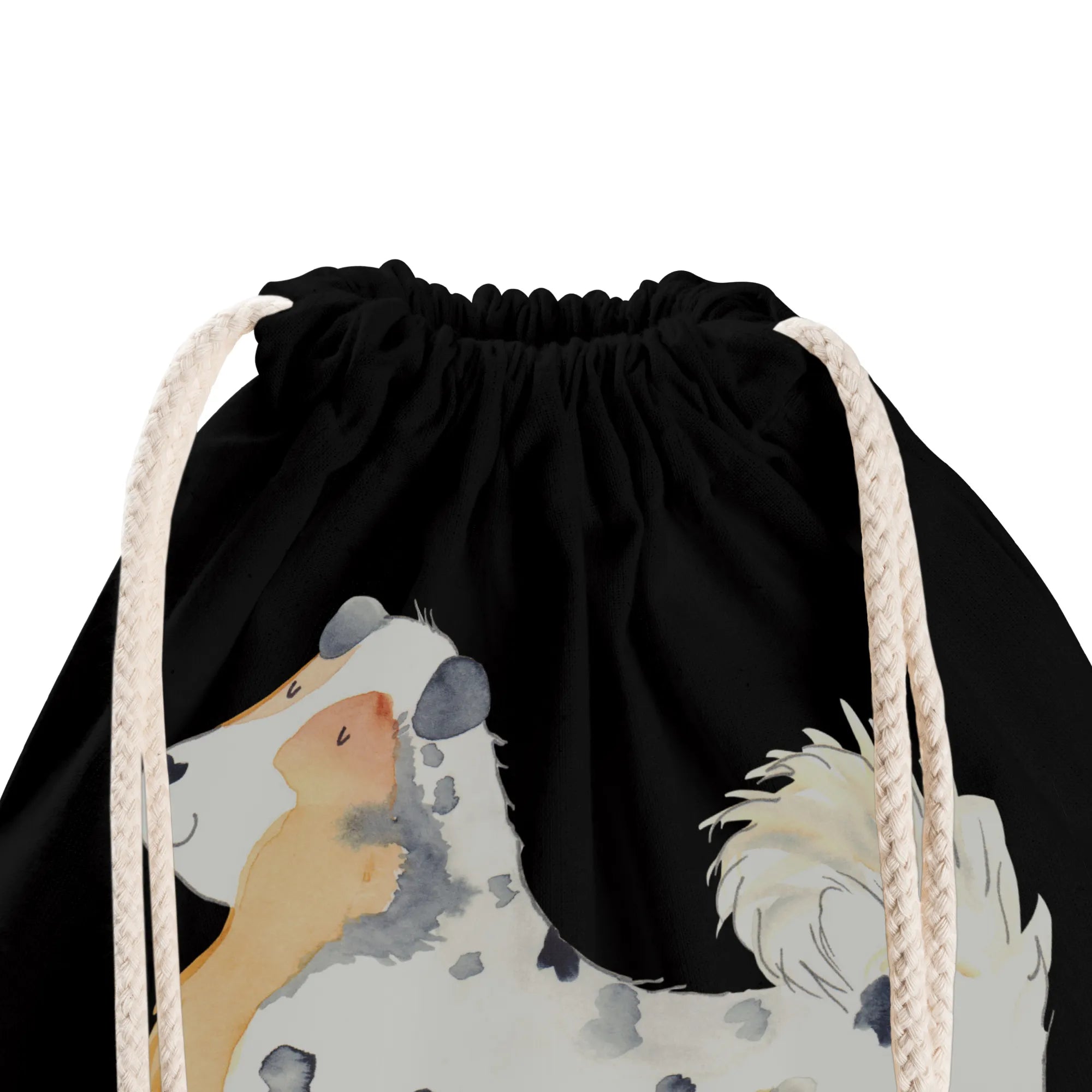 Und das Beste: Jeder Beutel ist ein Unikat, da die Designs von Mrs. Panda mit viel Liebe erstellt werden. Wenn du also auf der Suche nach einem süßen und personalisierten Geschenk bist, das Herzen erfreut und gleichzeitig praktisch ist, dann ist unser Sportbeutel mit dem Australien Shepherd Motiv aus der Hunde Kollektion von Mr. & Mrs. Panda genau das, was du brauchst!