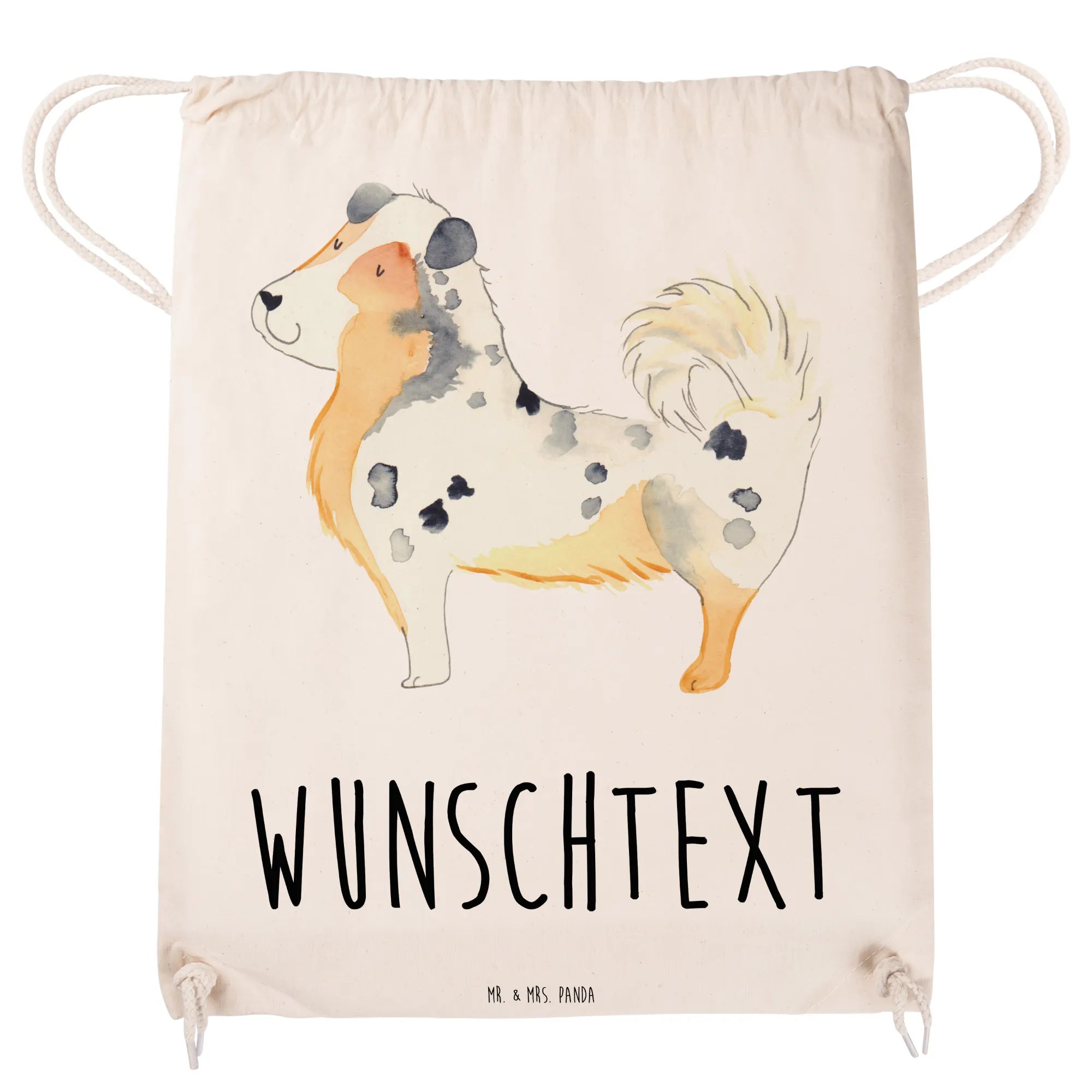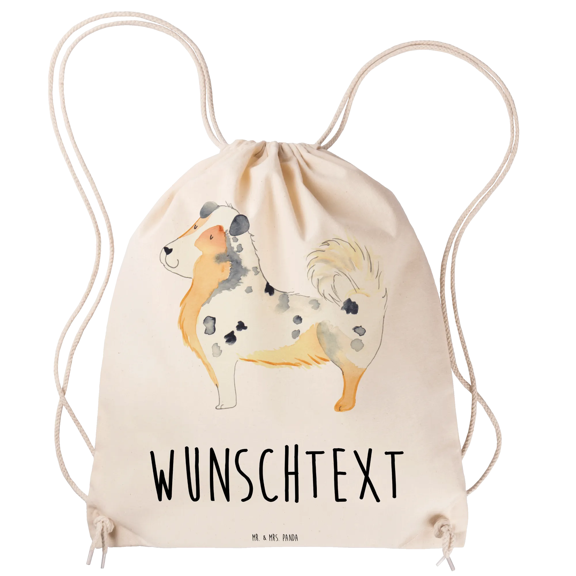 Wenn du auf der Suche nach einem besonderen Geschenk für einen Hundeliebhaber bist, dann ist unser personalisierter Sportbeutel mit dem süßen Australien Shepherd Motiv genau das Richtige!