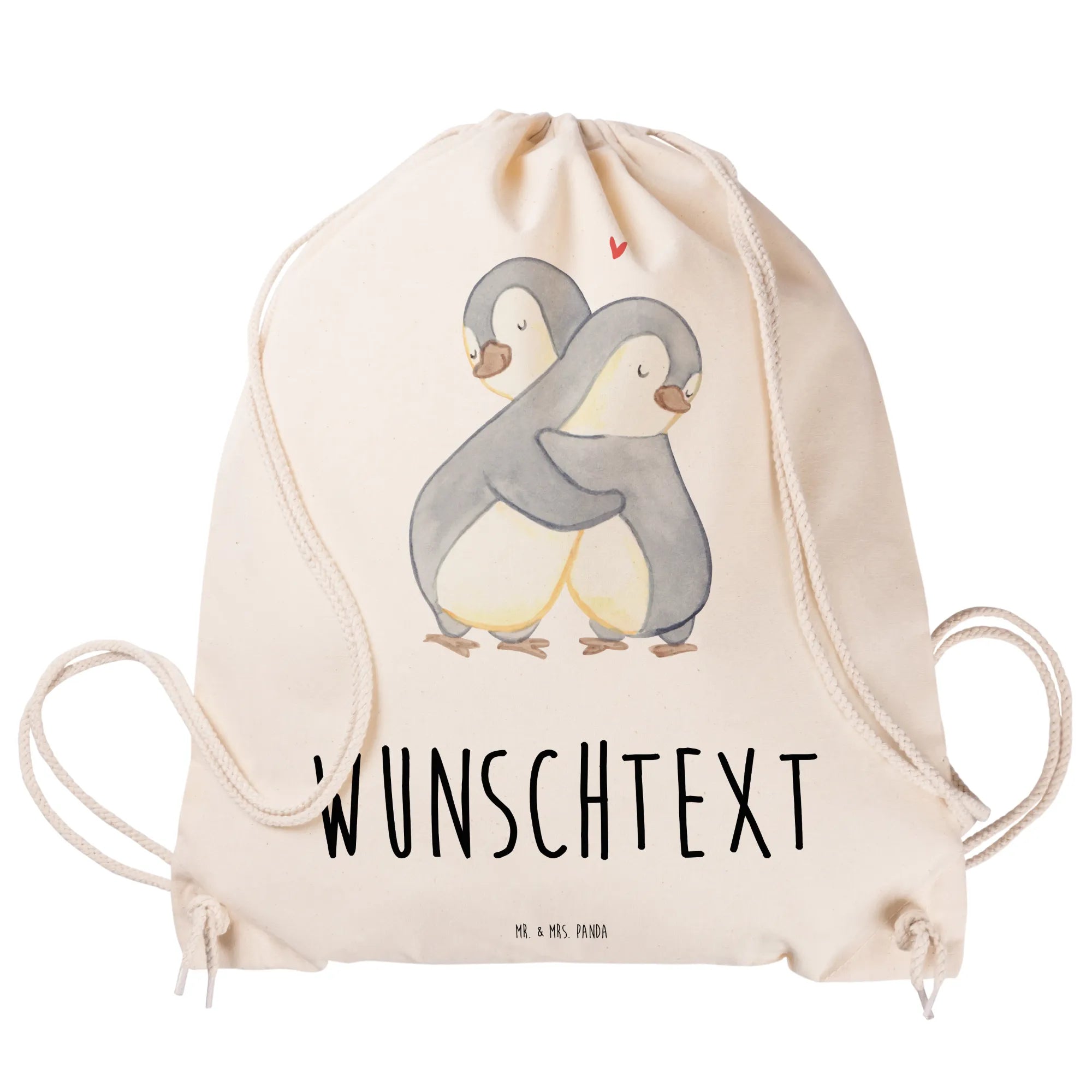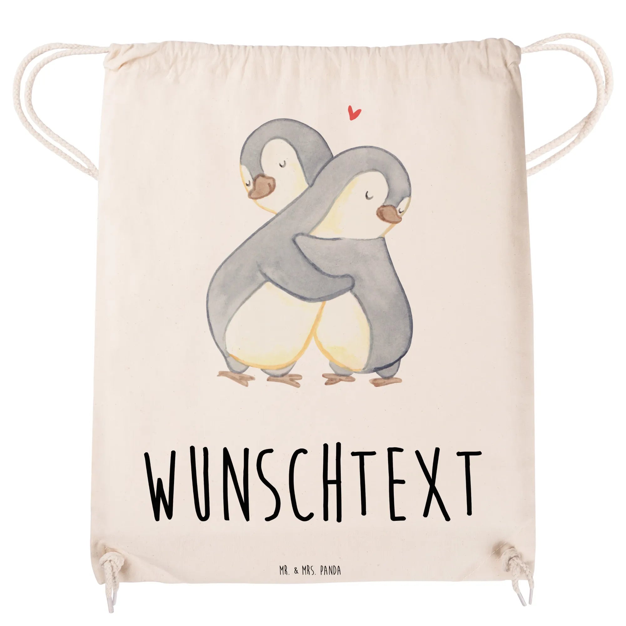 Der personalisierte Sportbeutel "Pinguine Kuscheln" aus der Liebe Kollektion von Mr. & Mrs. Panda ist das perfekte Geschenk für jeden Anlass, insbesondere für die Liebenden und Freundeskreise. Ob für den Valentinstag, den Hochzeitstag oder einfach als Liebesbeweis – dieser Sportbeutel bringt Herzen zum Schmelzen. Der hochwertige Stoffbeutel wird aus 100% weicher Baumwolle gefertigt und ist mit einem liebevoll handgedruckten Motiv versehen.